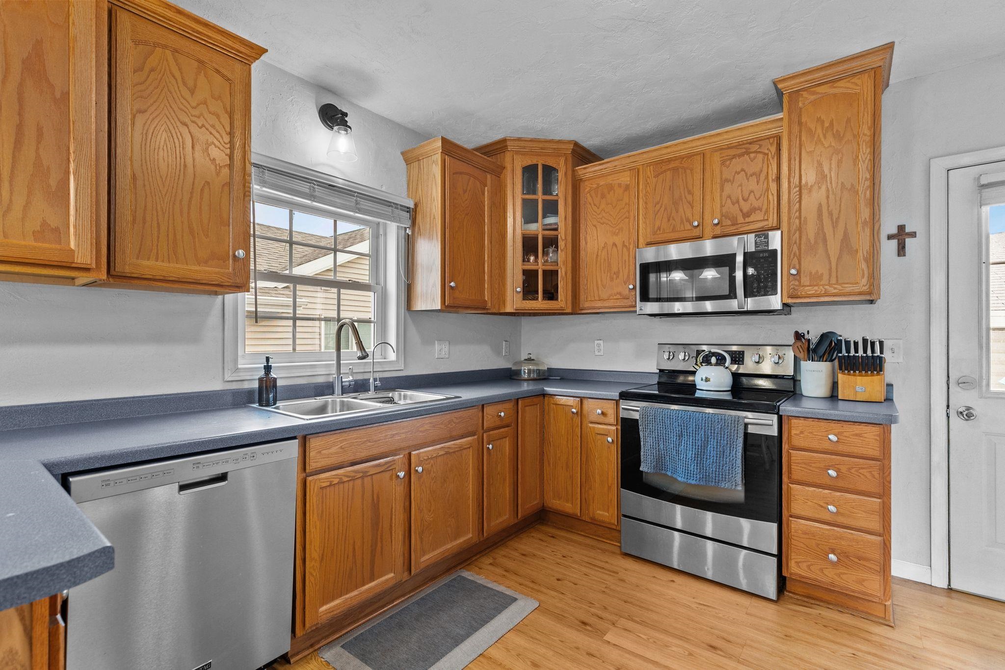 Stove, Microwave, Dishwasher, Refrigerator, Reverse Osmosis, 2 Window AC units, Upper Window Treatments