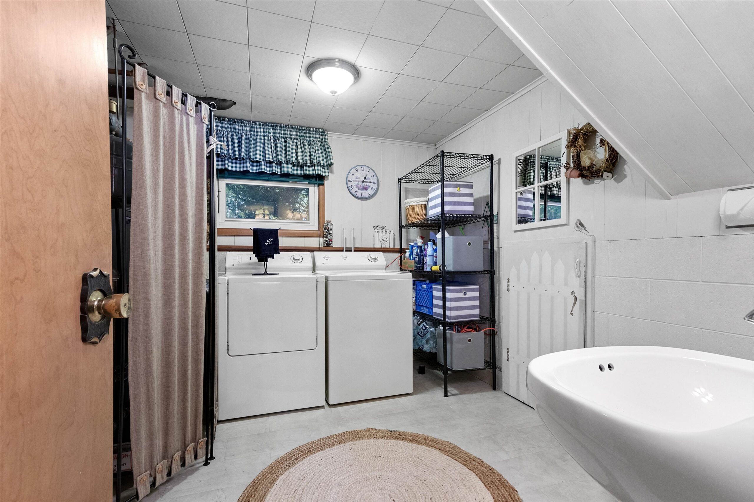 Range, refrigerator, microwave, washer, dryer, patio bench, metal landscape bench