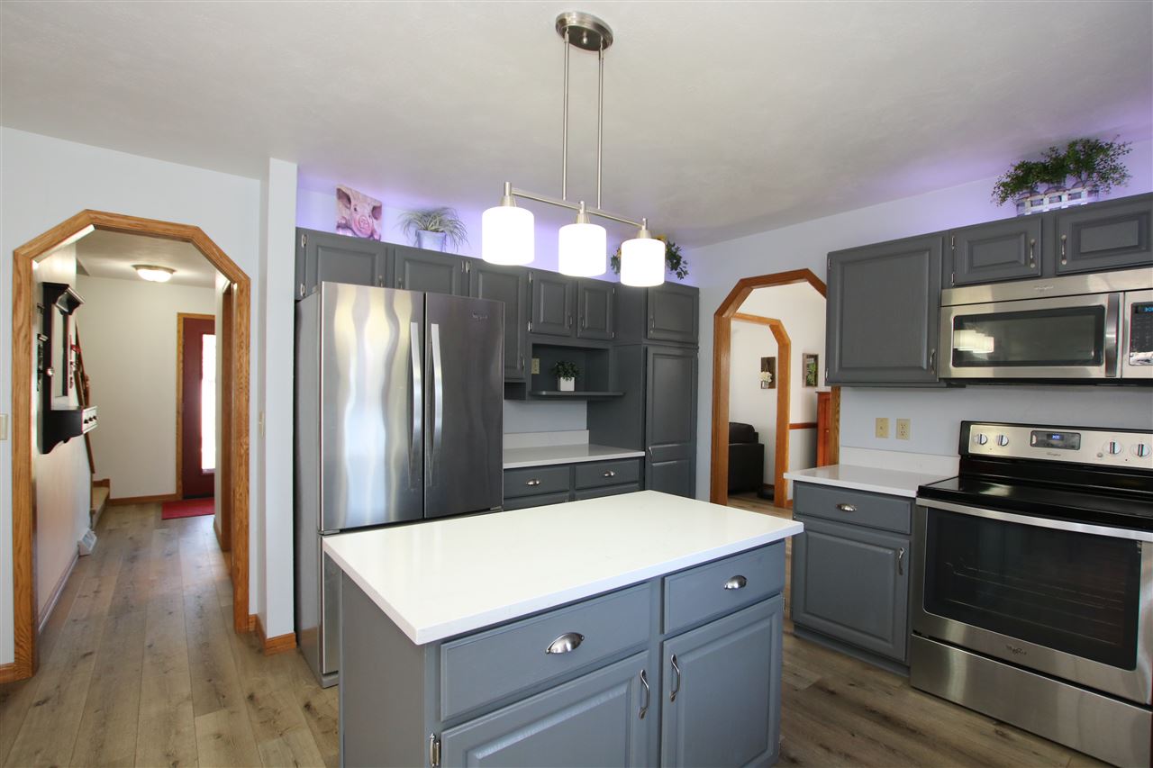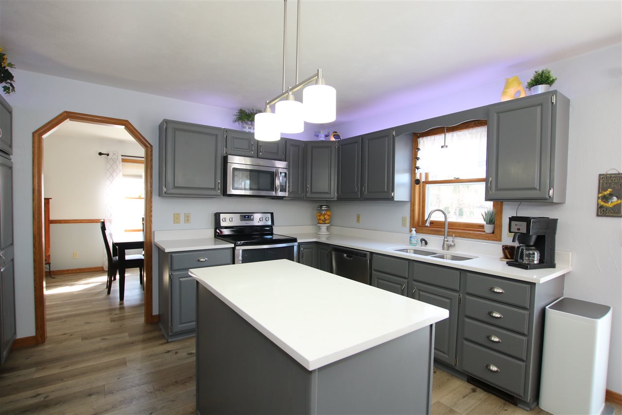 Look for the welcoming front porch with seating & open the door to a wonderful home! Super kitchen with gray painted cabinets, island & new countertops! Separate family rm w/fireplace & view of the huge fenced yard. Home features 3 bedrooms up, master w/remodeled master bath, new flooring on the entire main floor, many new fixtures and decorating touches. Finished lower level for media room & built-in office area. Attached garage, newer shed for additional storage. New patio out back. A total package. Move in ready! Offers must be received by Monday 4/12/21 at 1:00 pm.