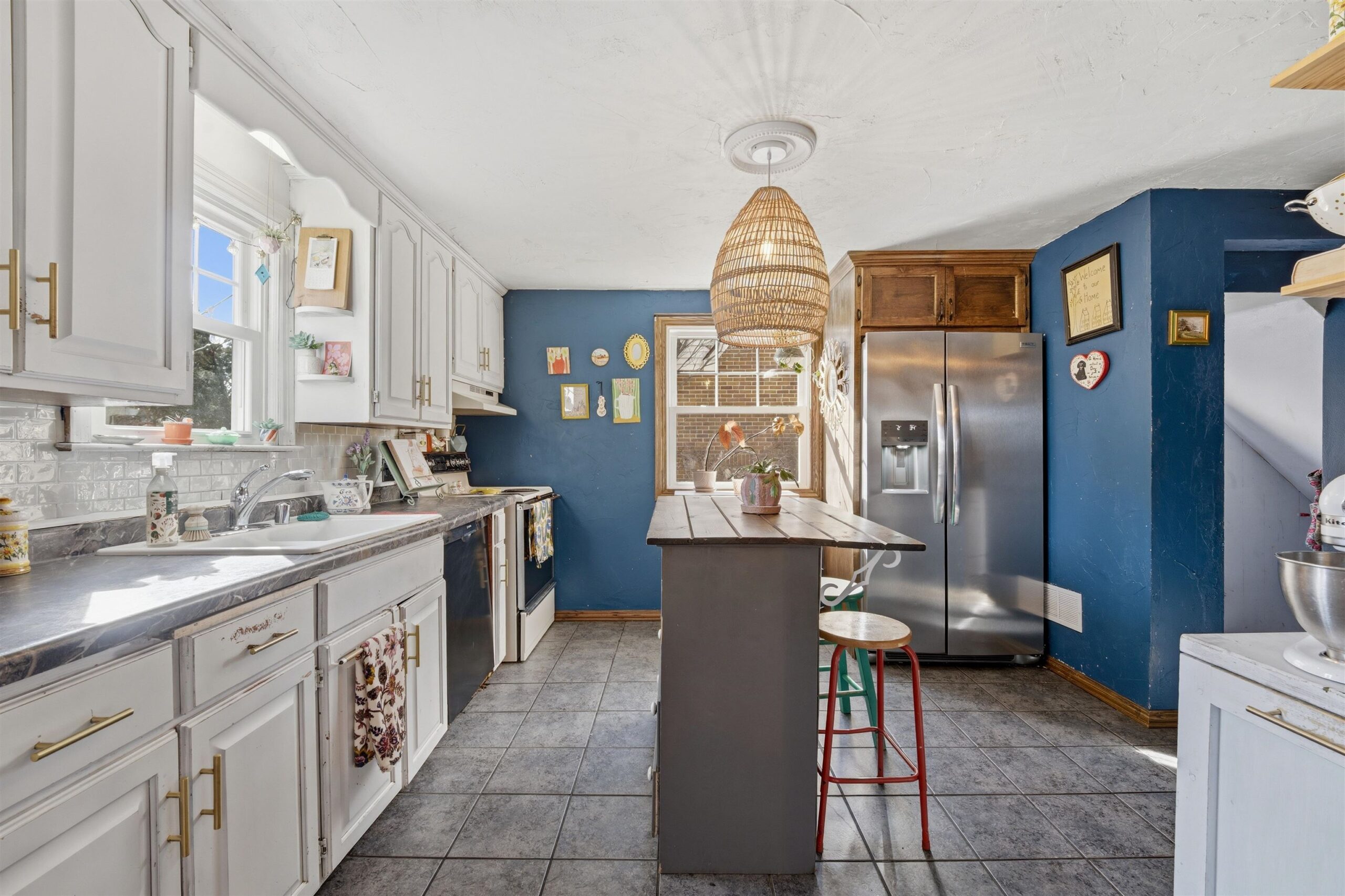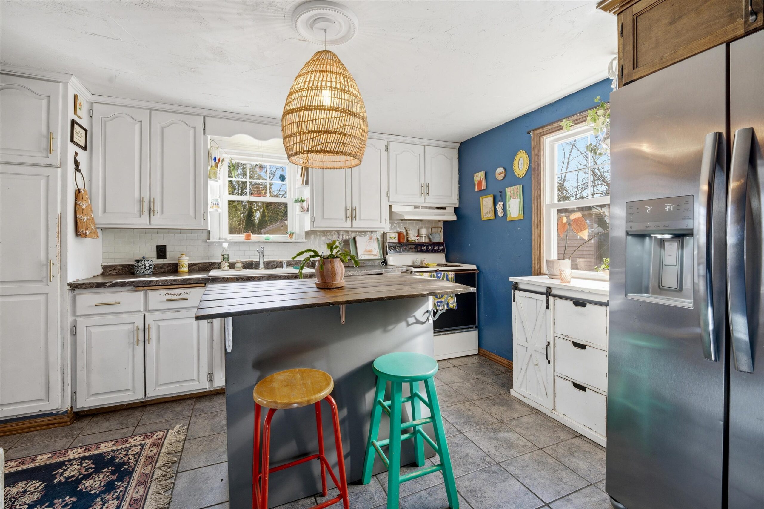 Appliances, kitchen island, trampoline, chiminea