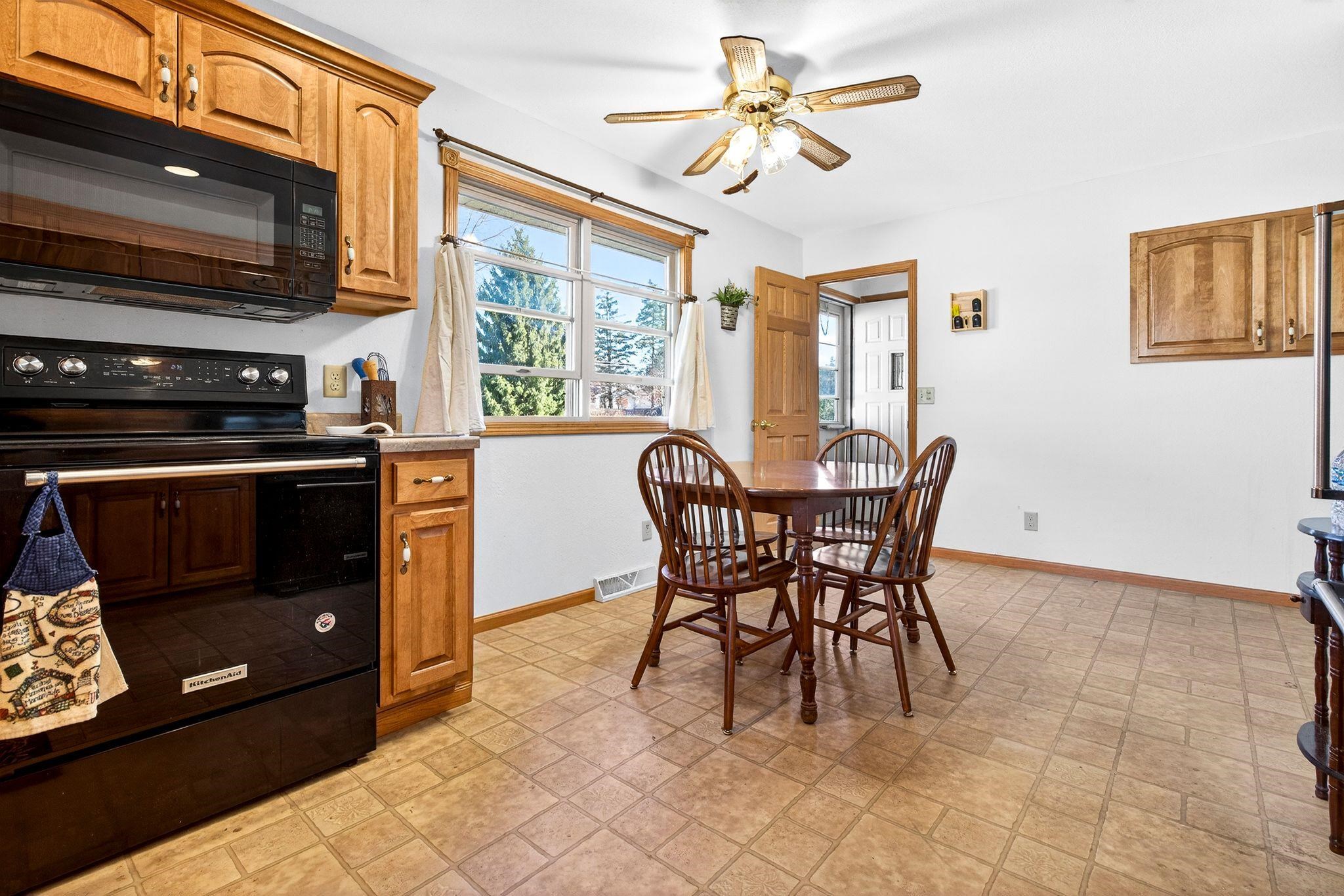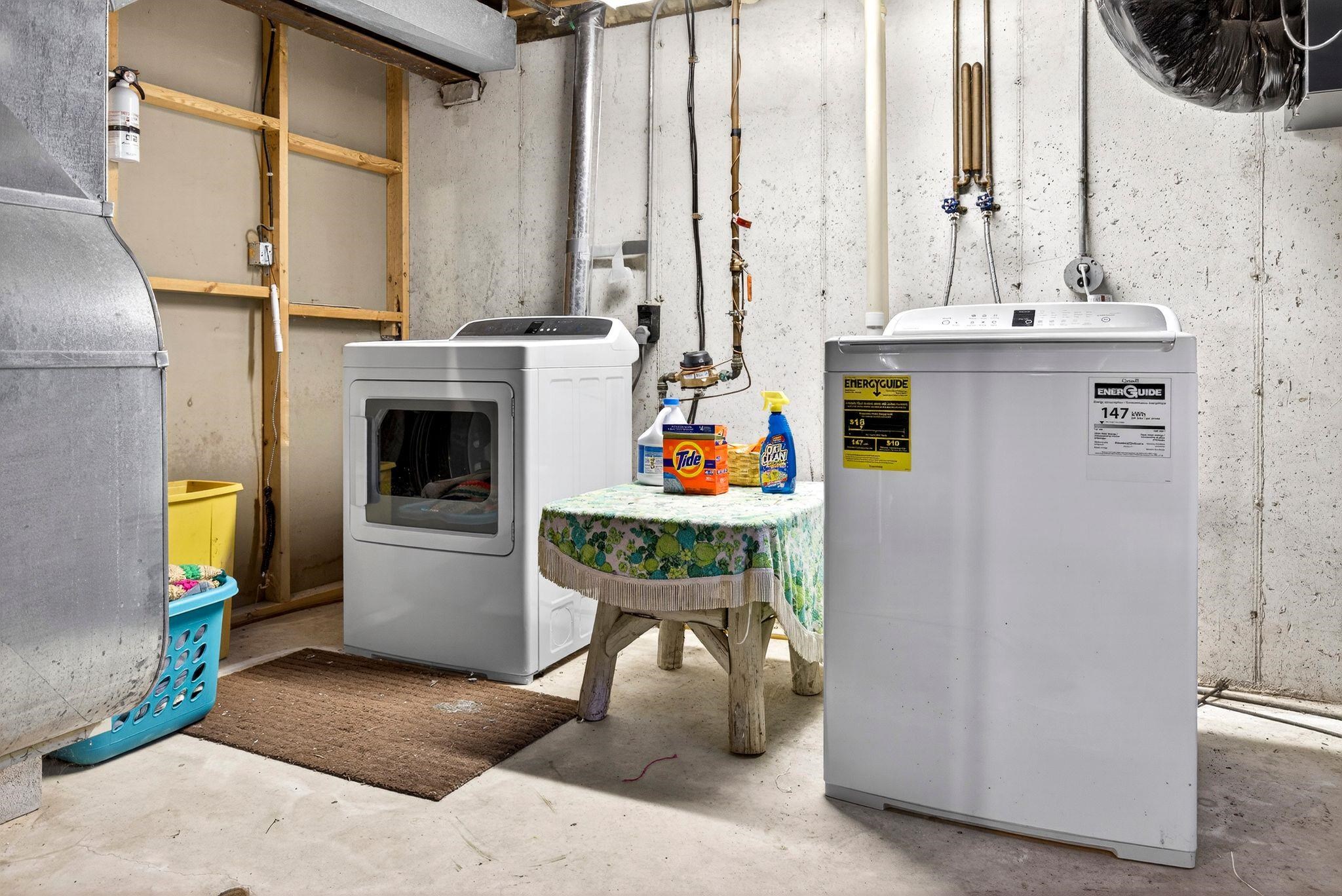 Kitchen and laundry appliances are included. Also, John Deere riding lawnmower.
