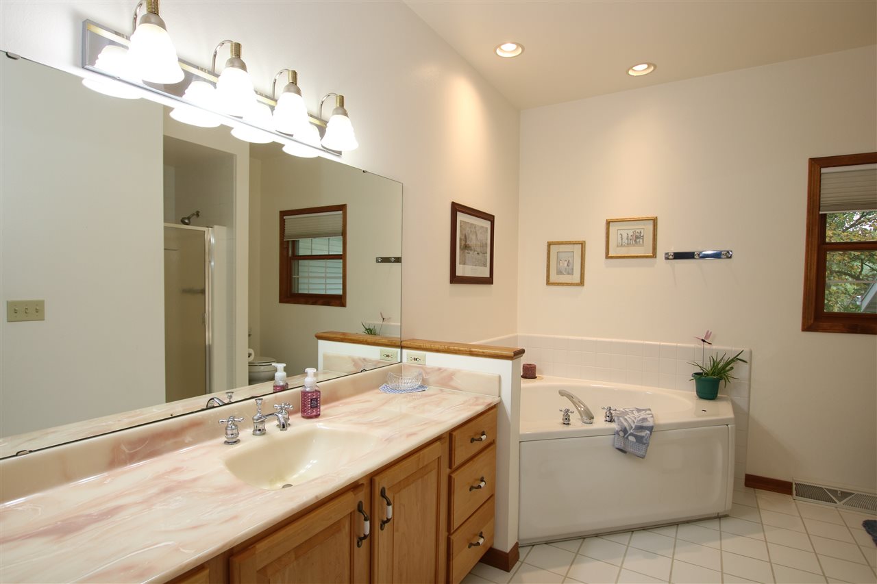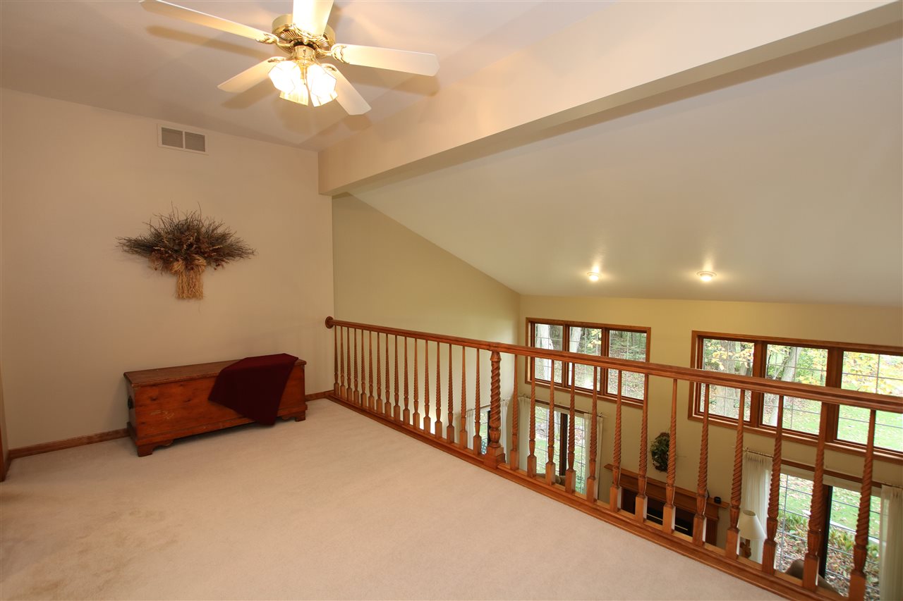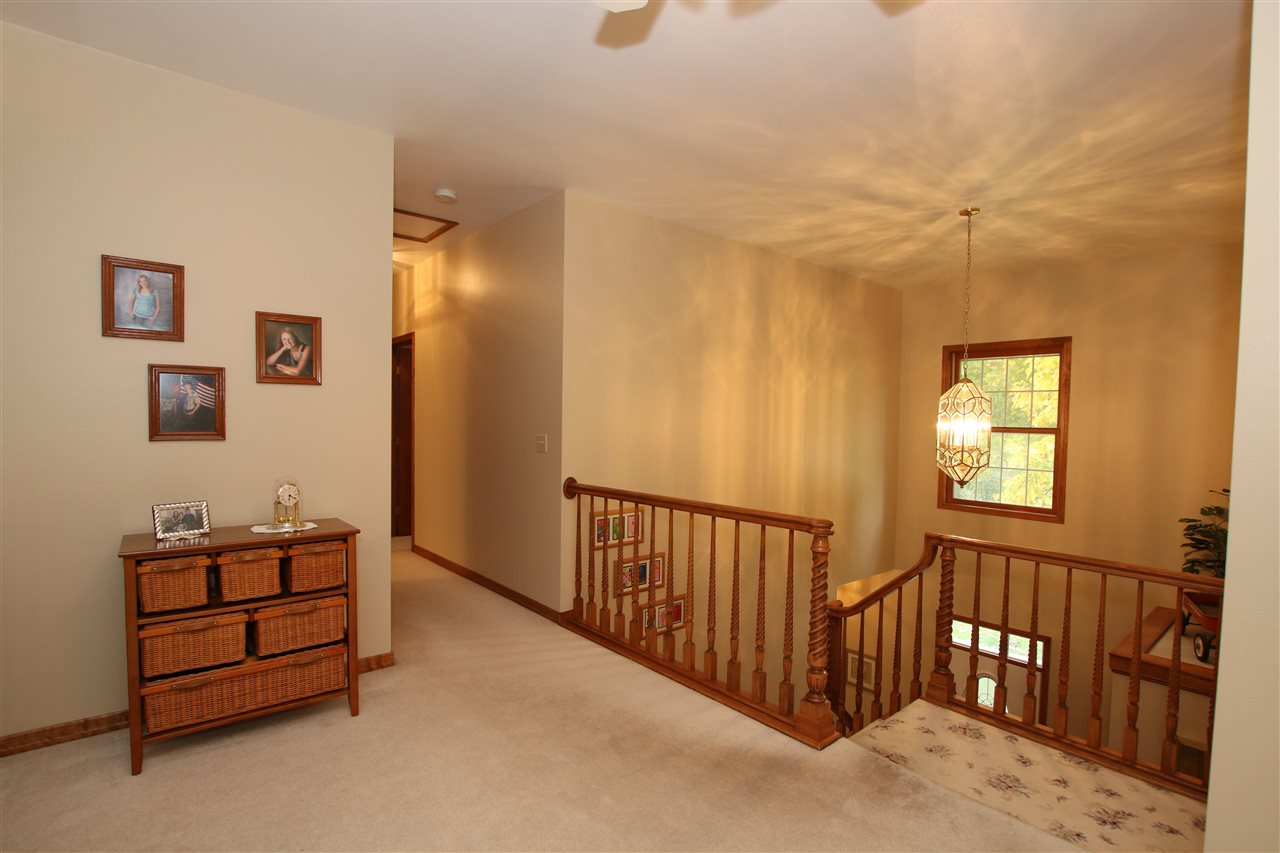 This lovely home boasts nearly 2800 SF, 4BR's, 2.5BA and a surprise 4 car garage! Formal dining, spacious eat in kitchen with recessed lighting. Loft overlooking the wall of windows in living room with gas FP and new carpet. Maple HW floors have been cared for over the years and it shows! Upper level has split design with private master BR along with master bath w/shower & soak tub, WI closet. Tons of storage! High ceilings in the basement are perfect for future finish space.