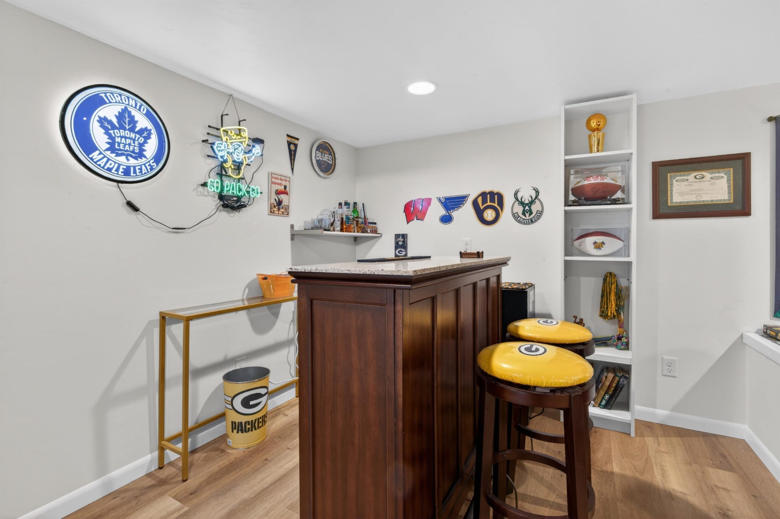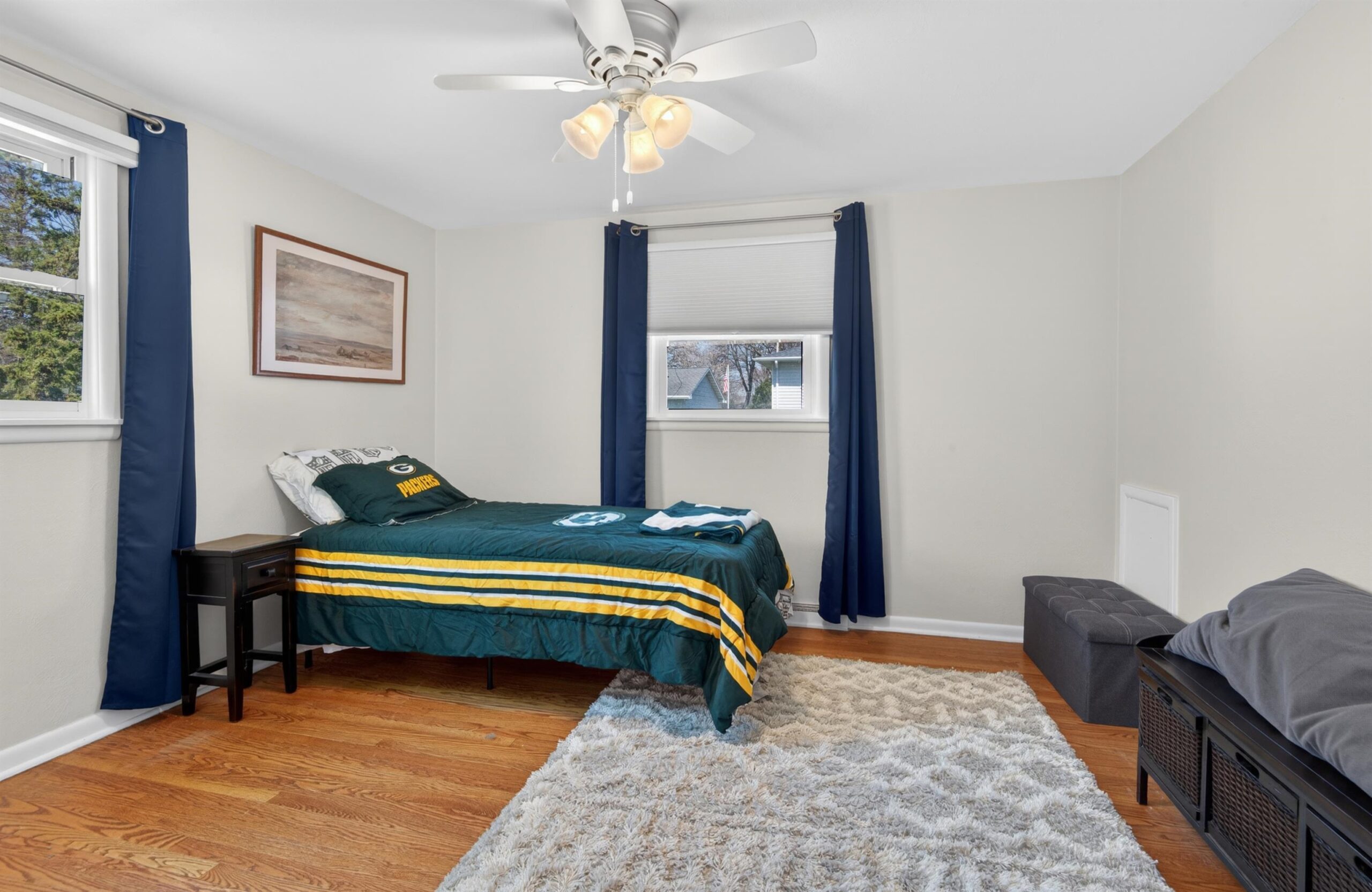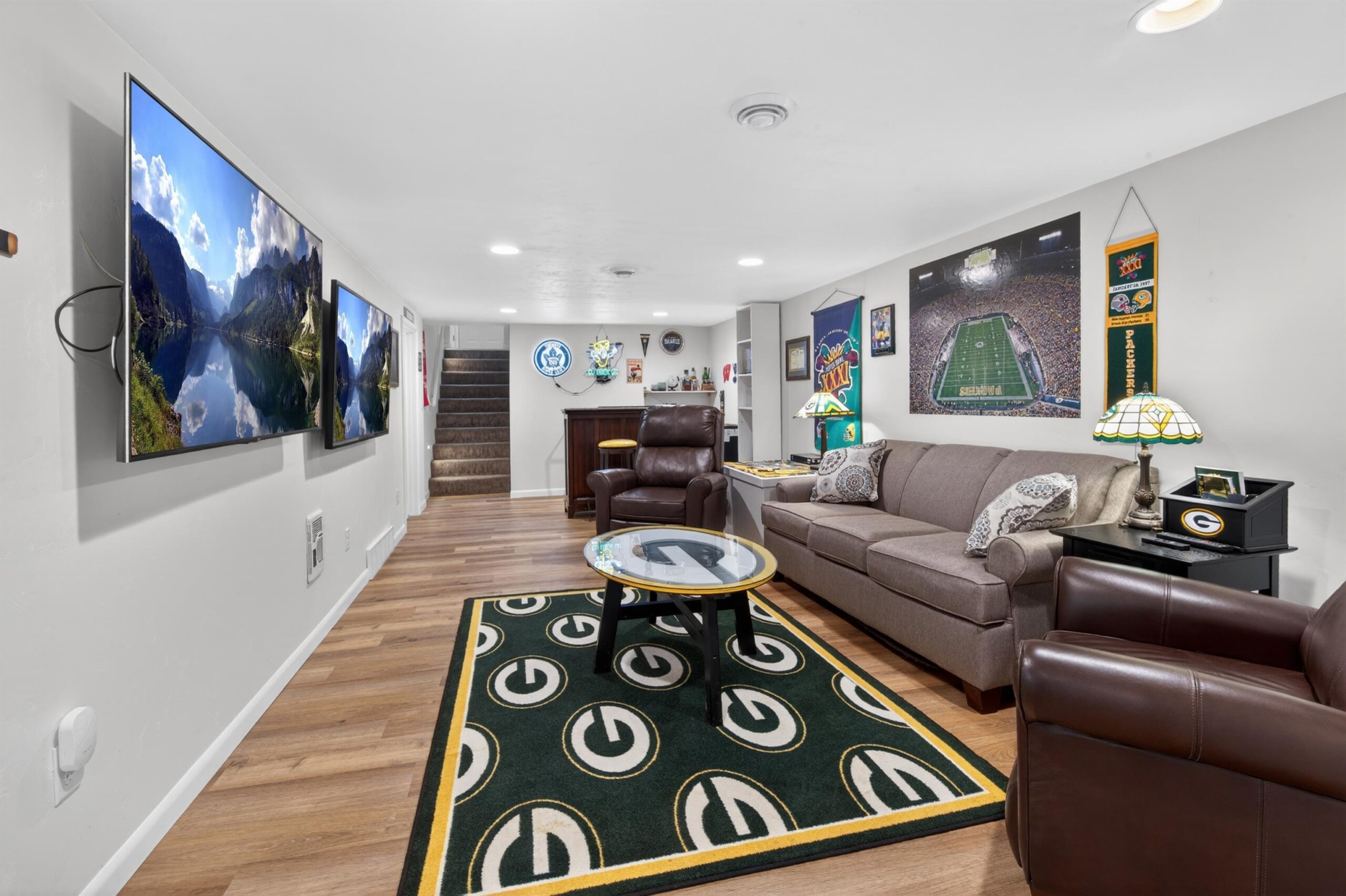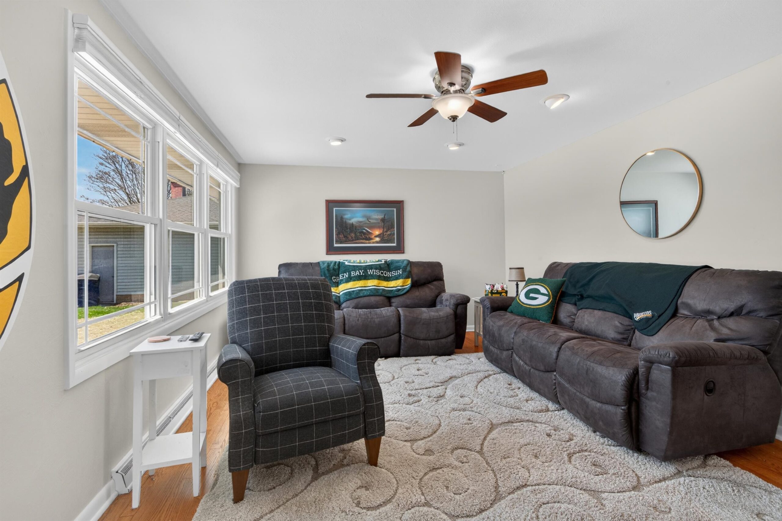 Updated ranch walking distance to Lambeau & Resch Center. So close you can smell the brats on game day—plus, it’s only a "one-beer walk" to the stadium. This 4-bed, 2-bath home features a main level with hardwood floors, stainless appliances, and quartz counters. Finished lower level adds a rec room, 4th bedroom, and full bath. The backyard is an entertainer’s dream with a newer fence, patio, and pergola. Large driveway fits 4 vehicles, plus extra space for parking in the yard—a prime opportunity for game day income! Includes custom exterior LED lighting and 2021 roof. Schedule your showing today. Pack your jersey and move right in.