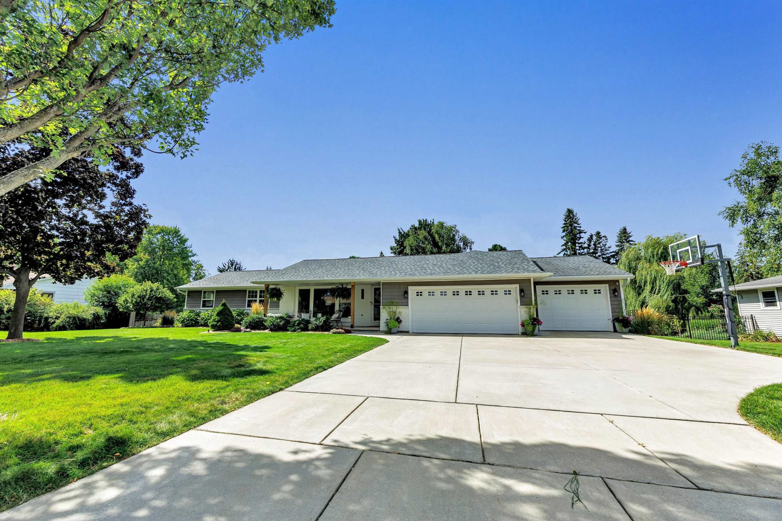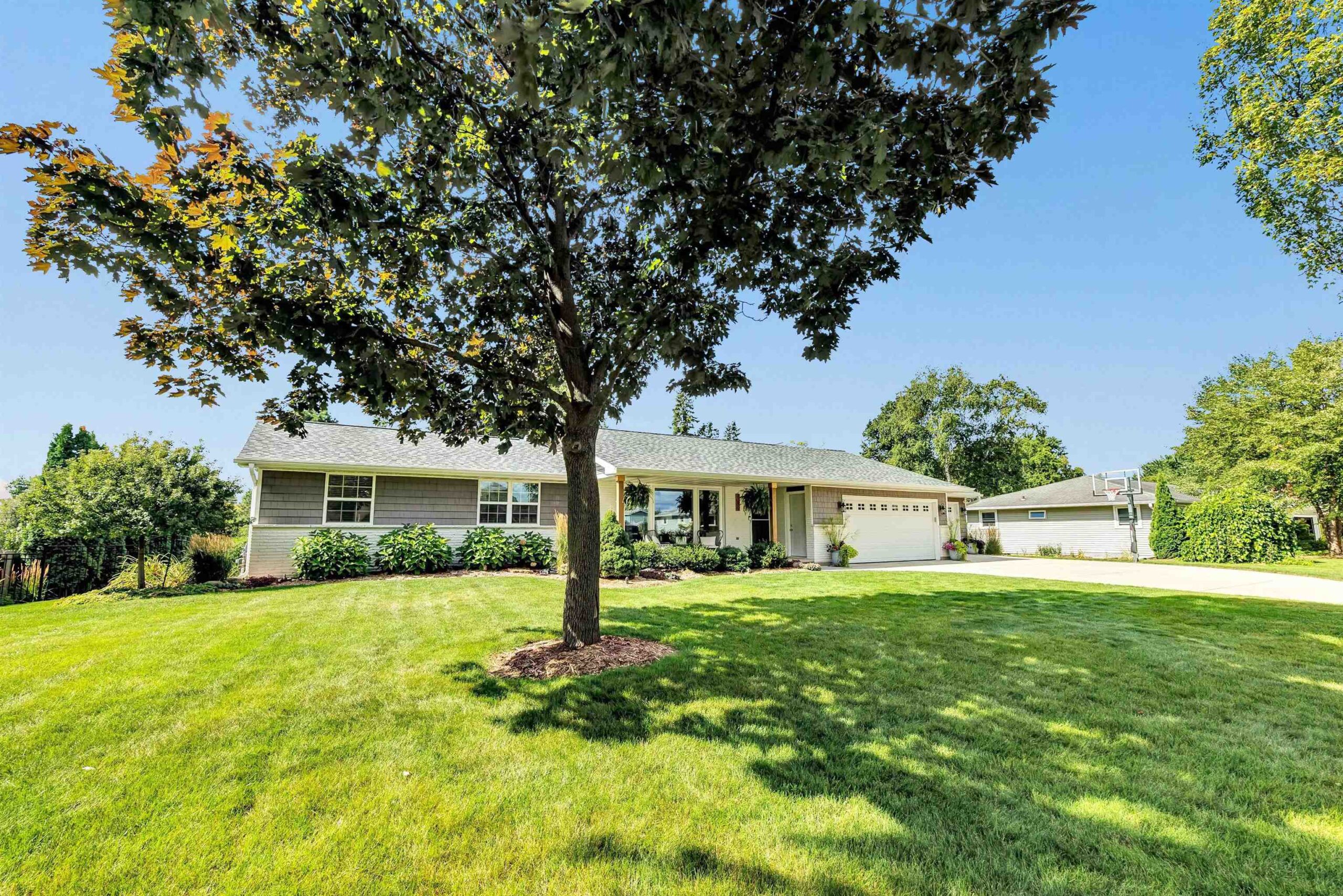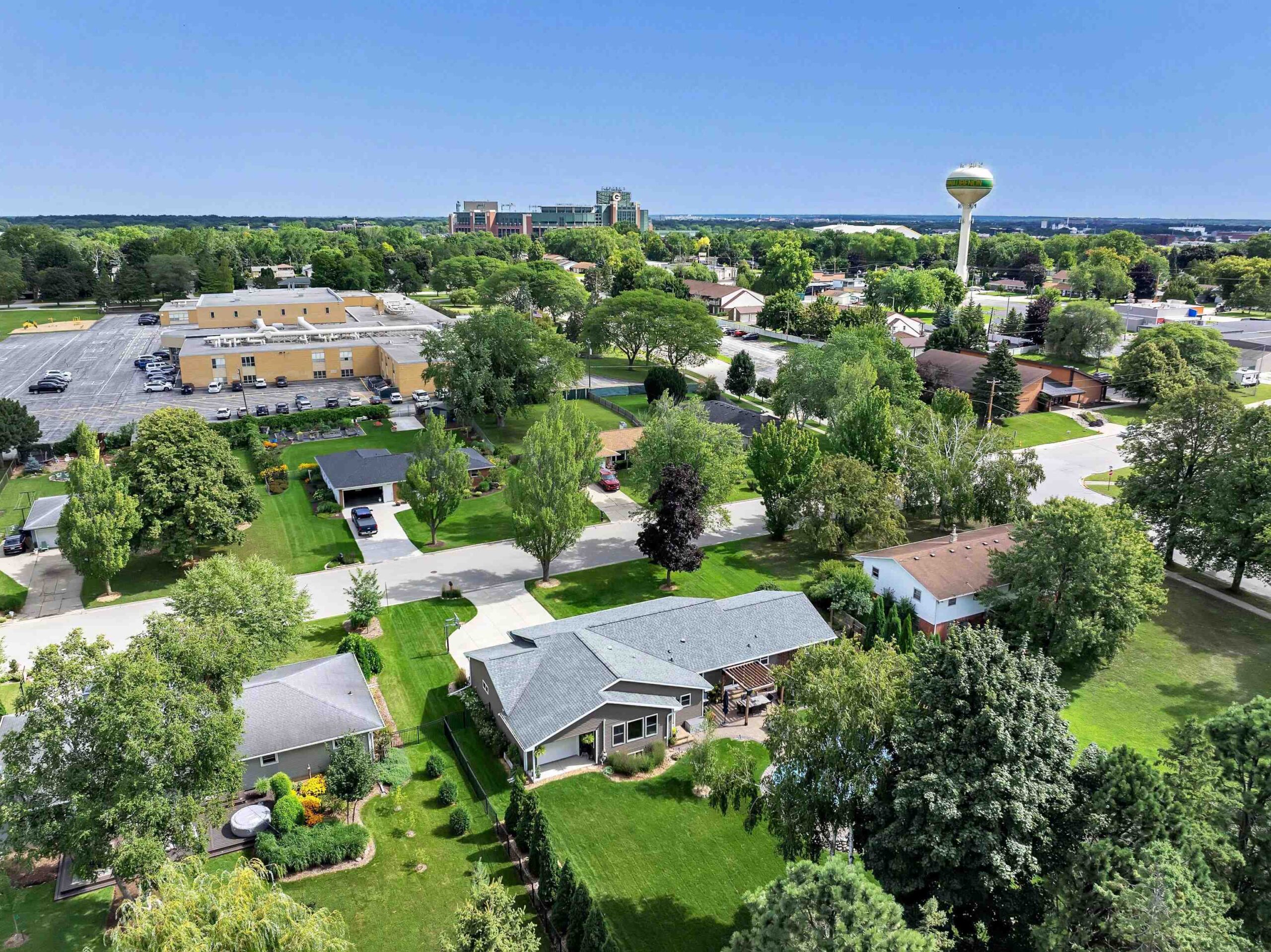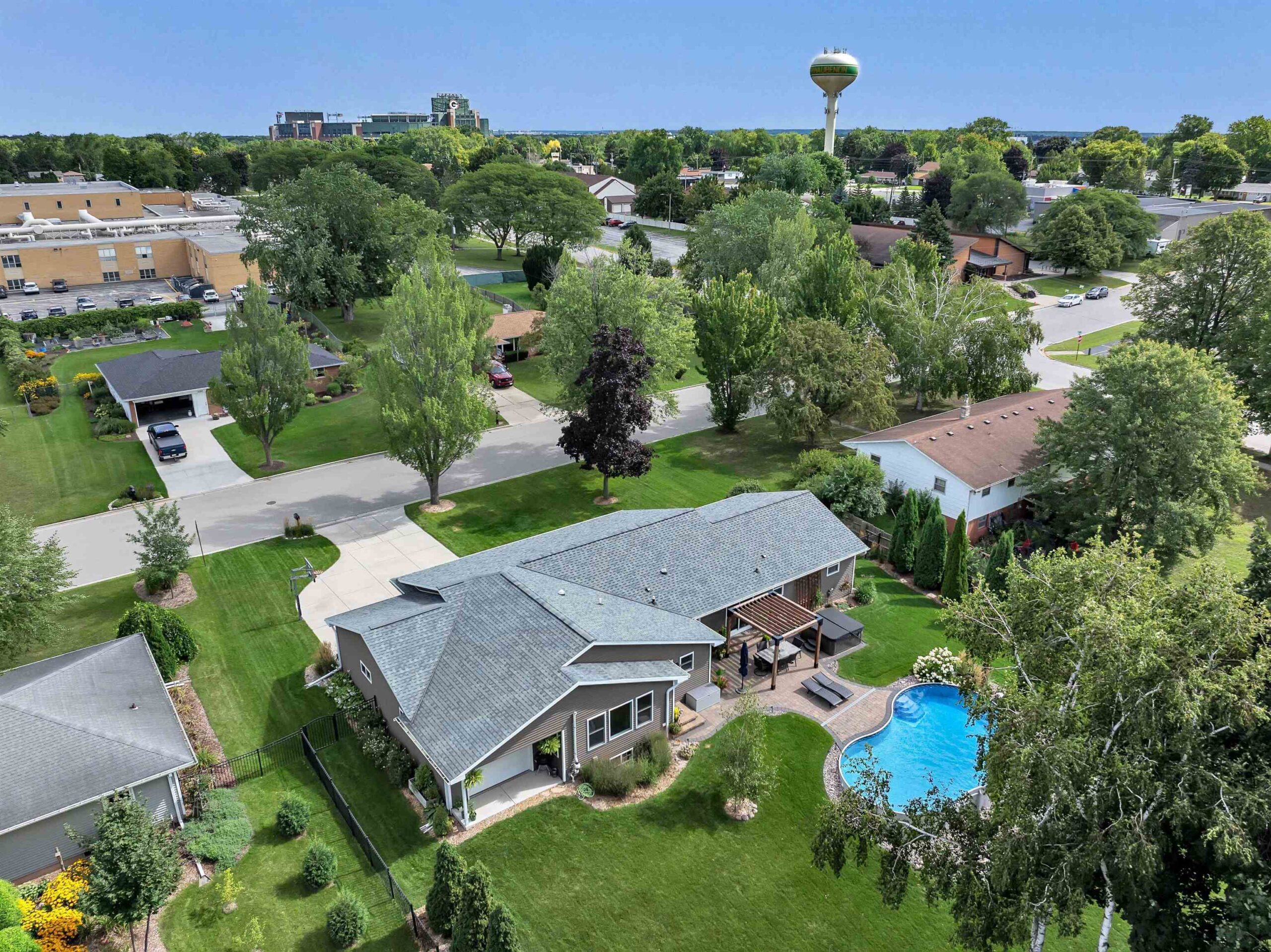 Completely remodeled in 2018, this stunning 4-bed, 2 full/1 half bath home features an open-concept living room and kitchen with hardwood floors, electric fireplace, quartz countertops, island seating, and patio doors off the dining area. The spacious primary suite offers a walk-in closet and tiled shower. Main level includes 3 more large bedrooms, full bath, laundry, and mudroom. Finished lower level boasts a family room with wet bar, playroom, and workout area with natural light. Enjoy a heated pool, brick patio, large yard, shed, and oversized garage. Hear the roars from Lambeau Field! Please allow 48 hrs for binding acceptance. Sellers can be flexible with the closing date but would prefer a week of post occupancy. Showings begin 10/3.