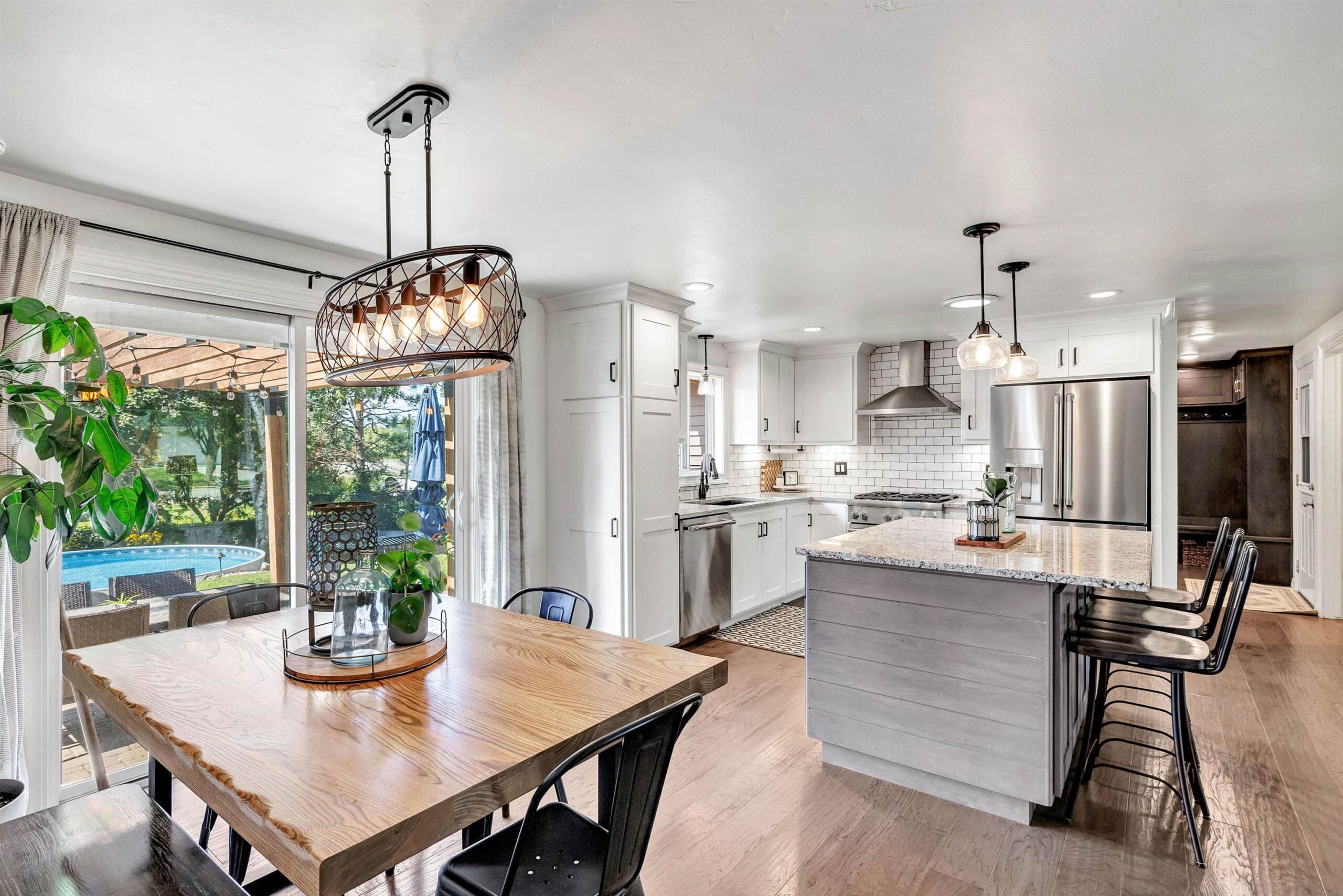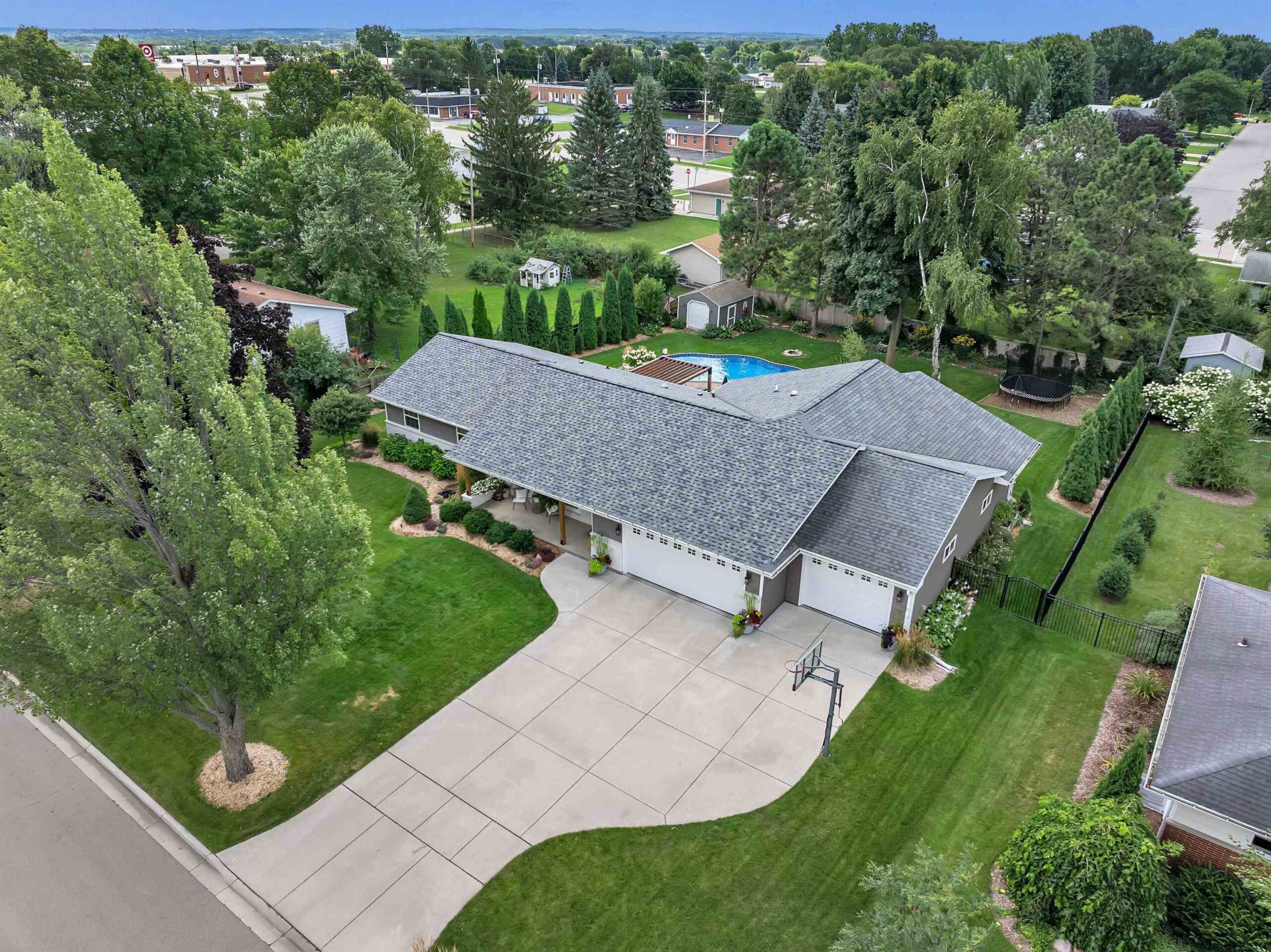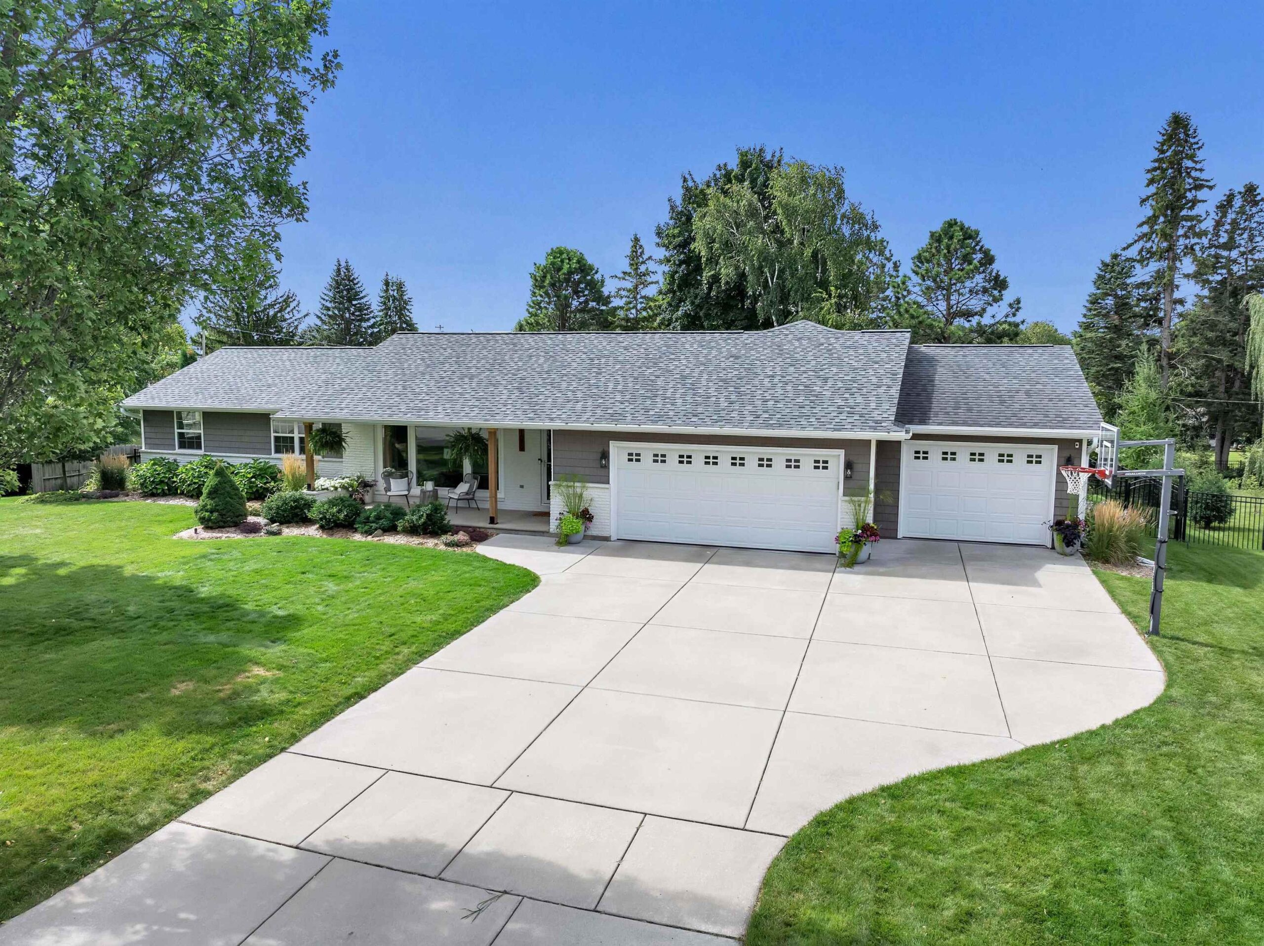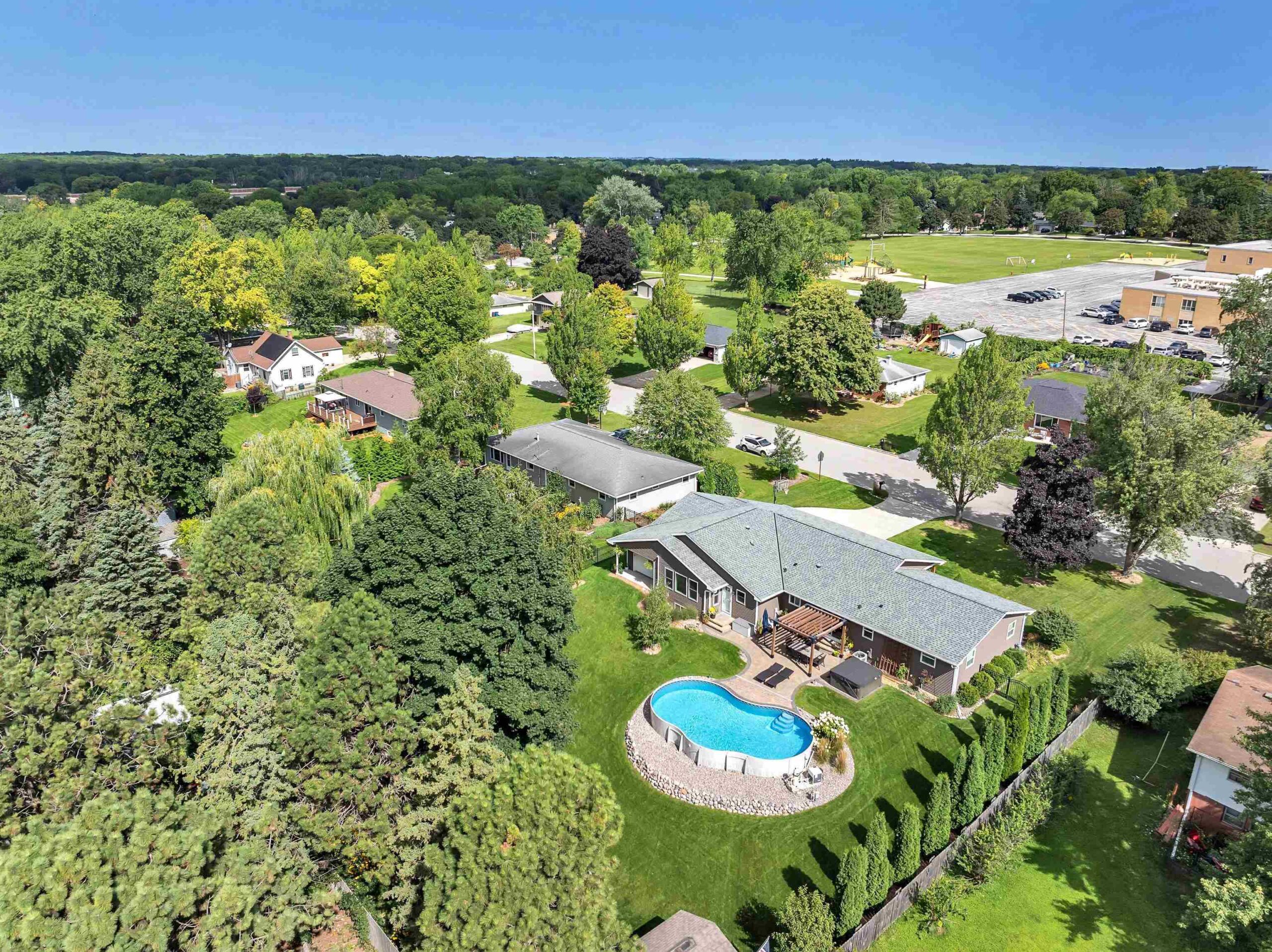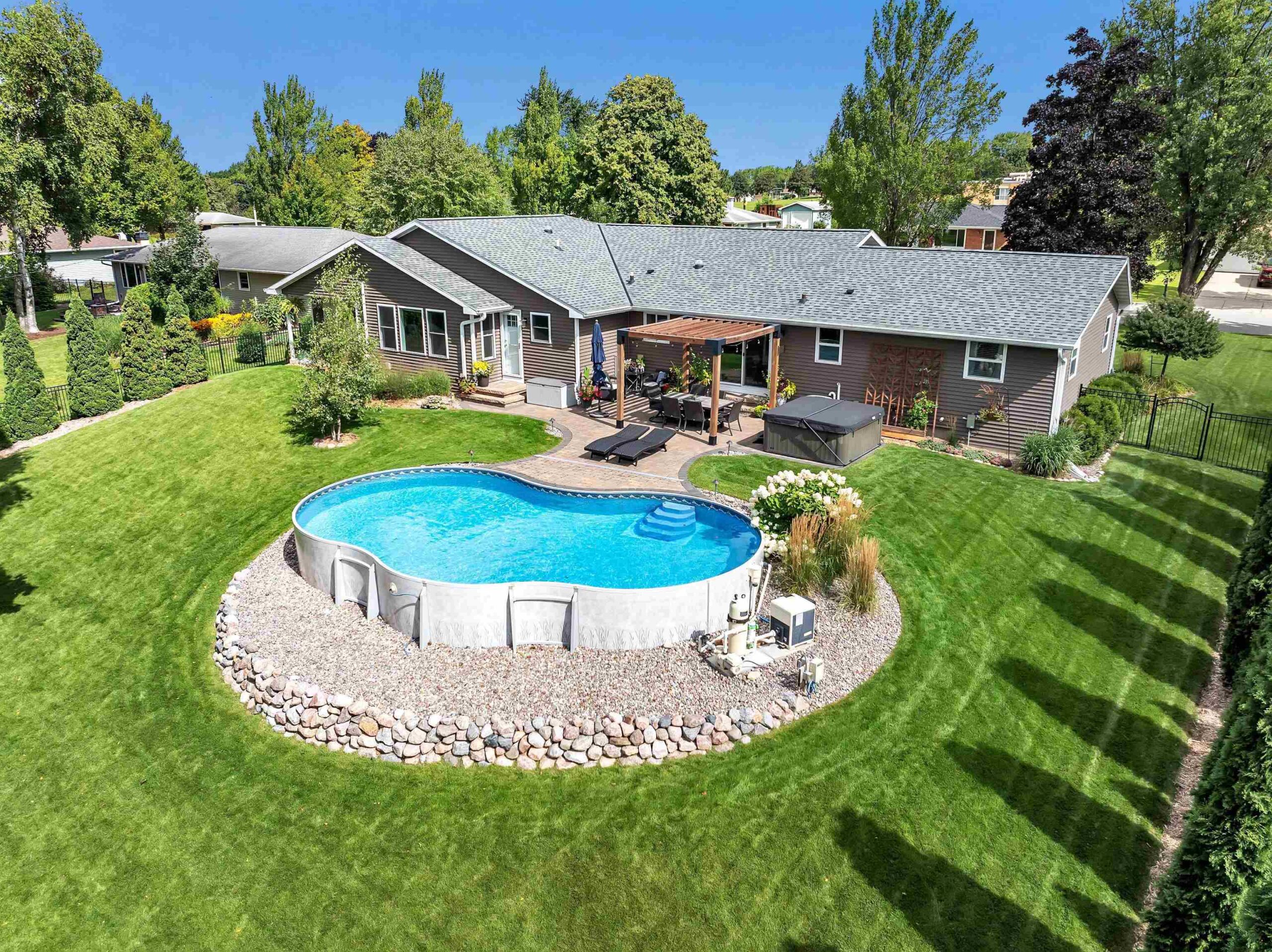 Completely remodeled in 2018, this stunning 4-bed, 2 full/1 half bath home features an open-concept living room and kitchen with hardwood floors, electric fireplace, quartz countertops, island seating, and patio doors off the dining area. The spacious primary suite offers a walk-in closet and tiled shower. Main level includes 3 more large bedrooms, full bath, laundry, and mudroom. Finished lower level boasts a family room with wet bar, playroom, and workout area with natural light. Enjoy a heated pool, brick patio, large yard, shed, and oversized garage. Hear the roars from Lambeau Field! Please allow 48 hrs for binding acceptance. Sellers can be flexible with the closing date but would prefer a week of post occupancy. Showings begin 10/3.