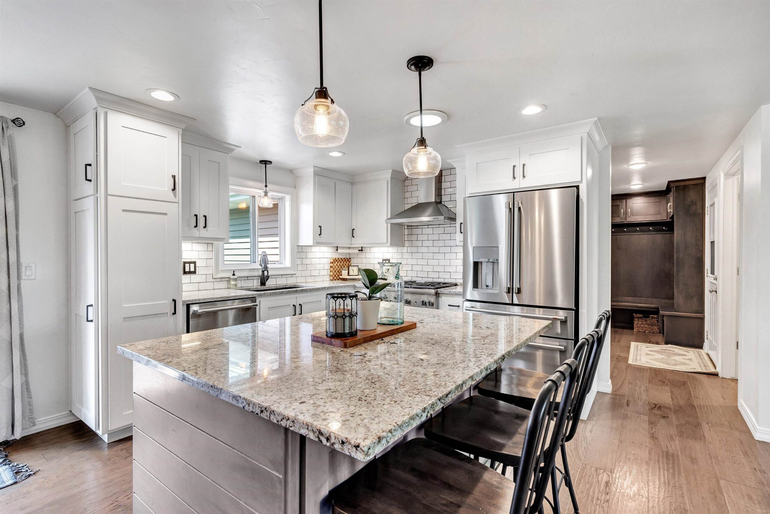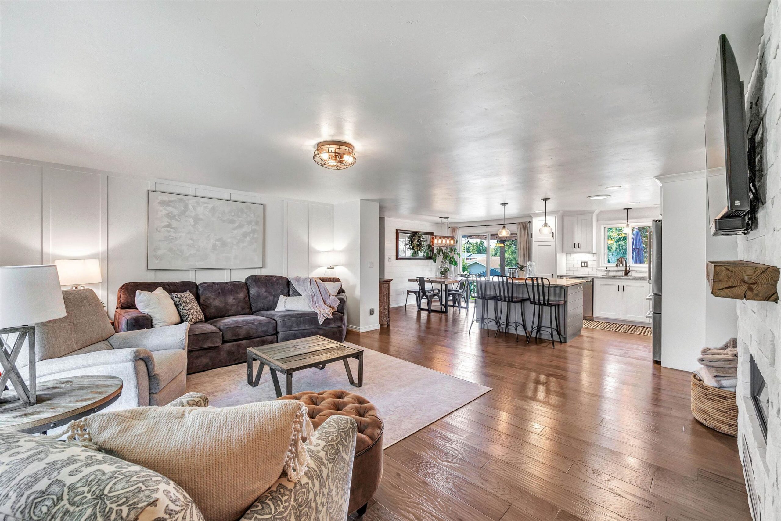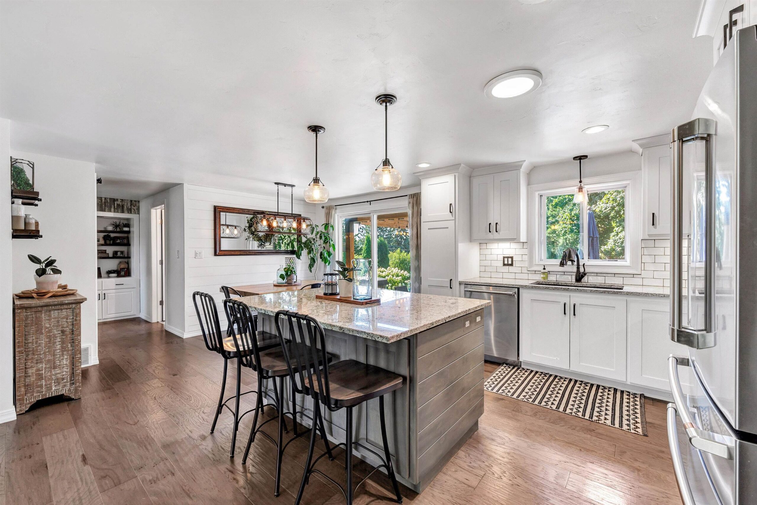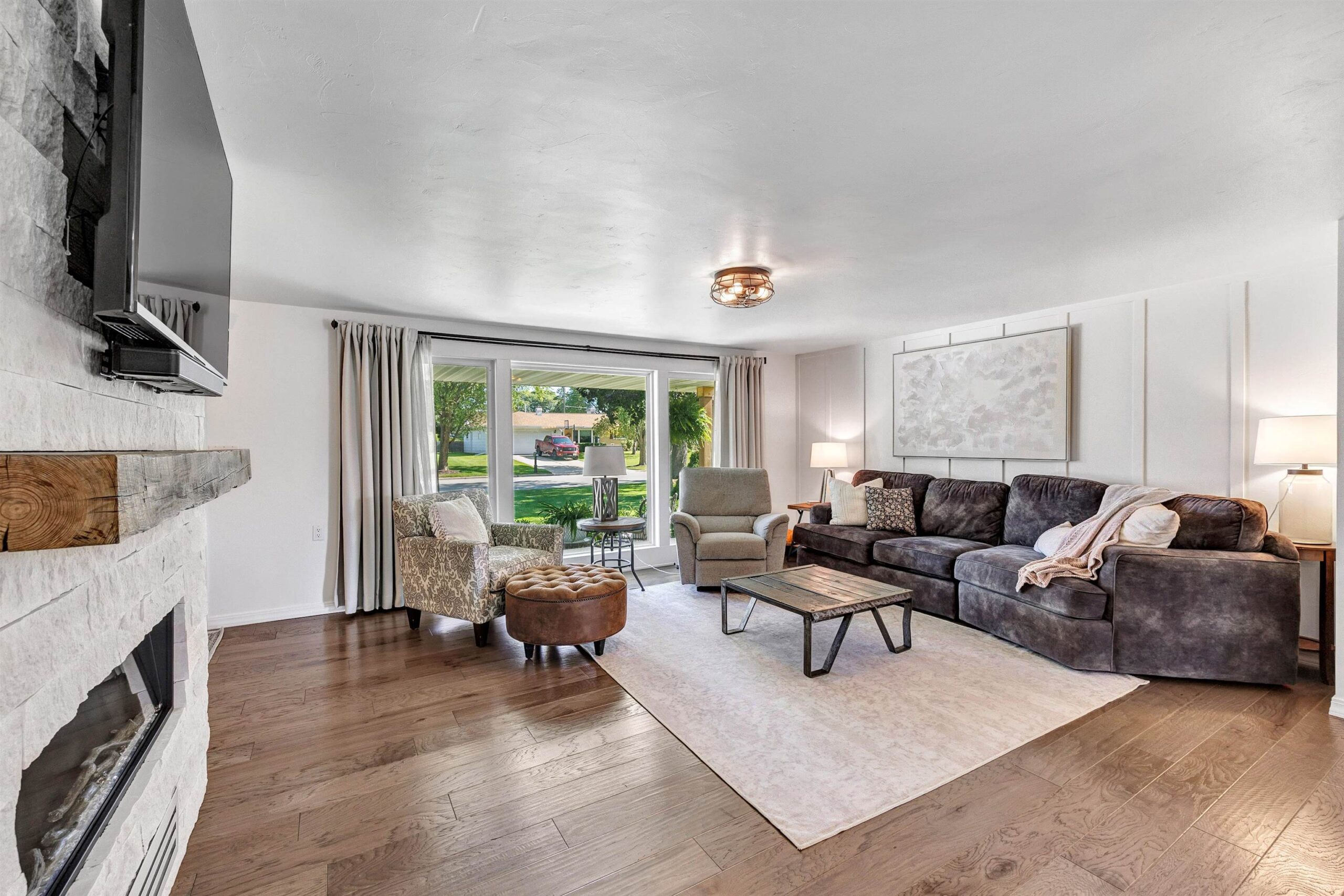 Completely remodeled in 2018, this stunning 4-bed, 2 full/1 half bath home features an open-concept living room and kitchen with hardwood floors, electric fireplace, quartz countertops, island seating, and patio doors off the dining area. The spacious primary suite offers a walk-in closet and tiled shower. Main level includes 3 more large bedrooms, full bath, laundry, and mudroom. Finished lower level boasts a family room with wet bar, playroom, and workout area with natural light. Enjoy a heated pool, brick patio, large yard, shed, and oversized garage. Hear the roars from Lambeau Field! Please allow 48 hrs for binding acceptance. Sellers can be flexible with the closing date but would prefer a week of post occupancy. Showings begin 10/3.