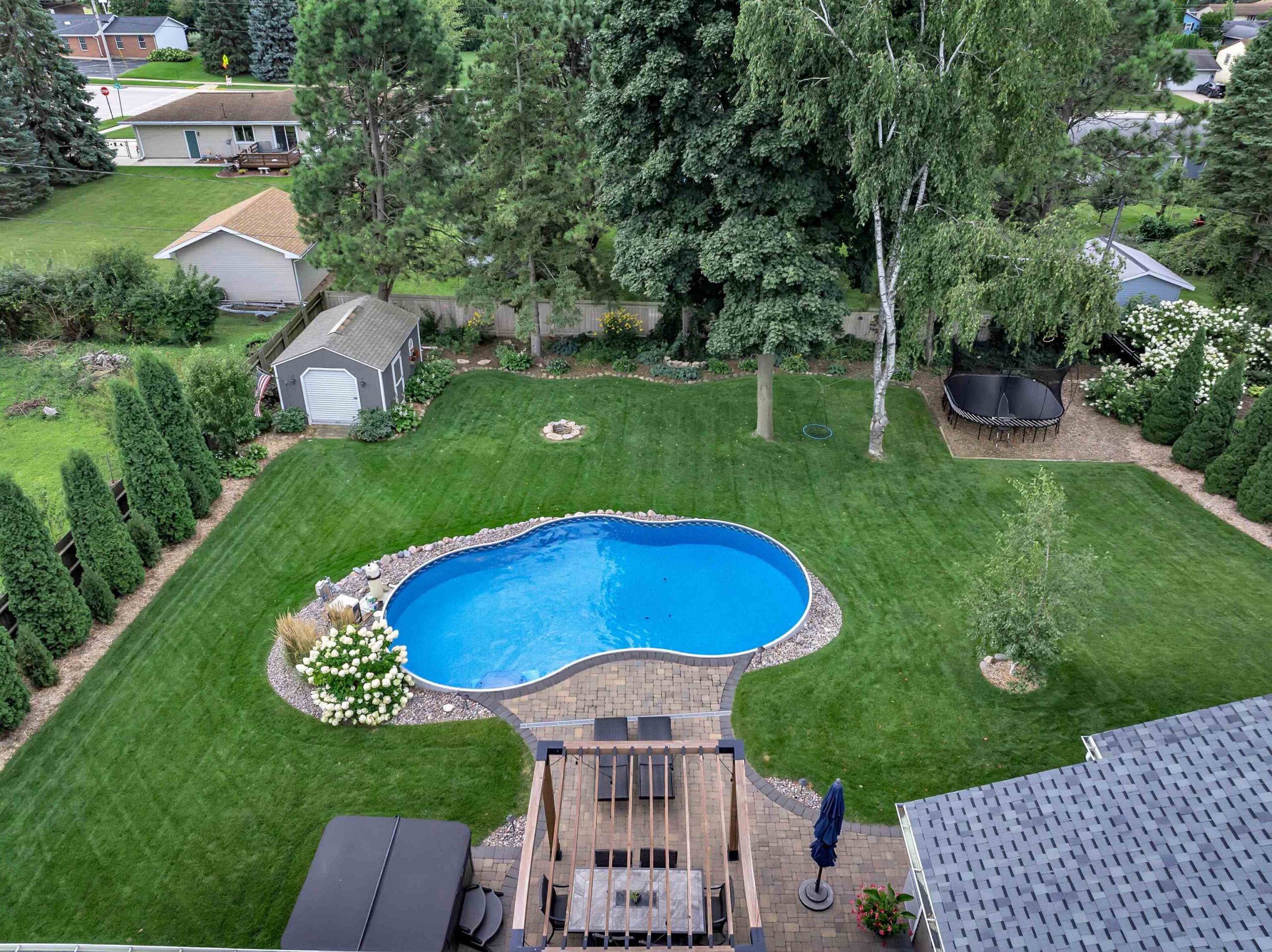 Seller's personal property, hot tub, trampoline, refrigerator in garage and lower level.