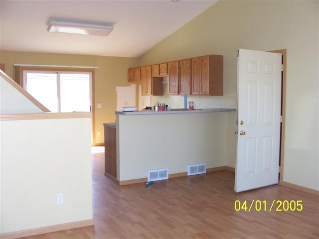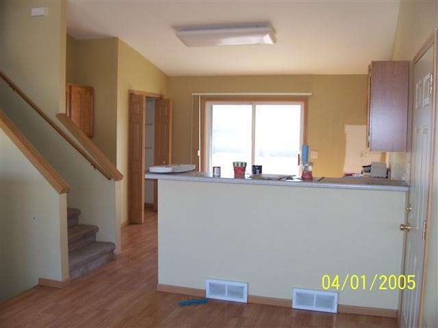 Maintained 1/2 duplex/condo with private driveway and large 2 car garage. Affordable 10 year old home includes many desirable features like vaulted ceilings, large kitchen with breakfast bar, main level laundry, laminate wood flooring, 2 full bathrooms, double closets in both bedrooms, basement storage, lower level family room/office and private deck. As-is sale.