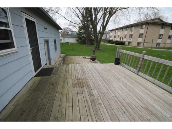 Enjoy small town living! 4 bedroom 1.5 bath home. Large enclosed front porch. Spacious, open concept eat-in kitchen. Appliances included. Main floor master bedroom. Basement has a lot of potential. Relax on the spacious deck or picnic on your brick patio. Nice attatched garage!