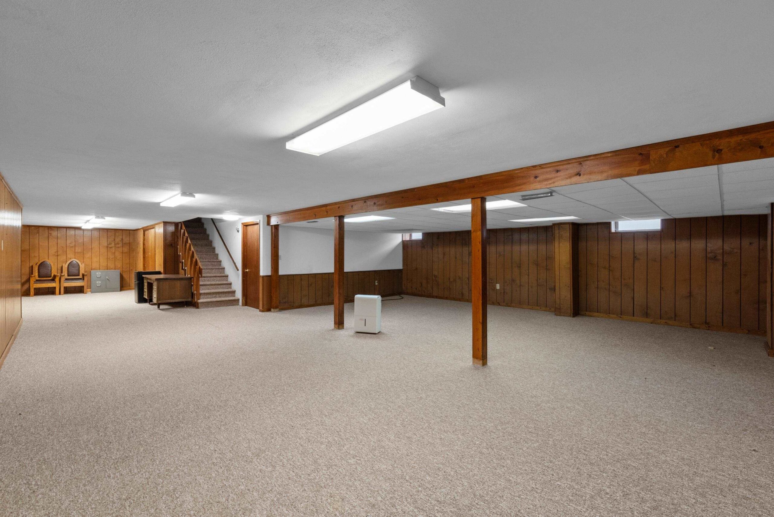 Refrigerator, range, dishwasher, microwave, washer, dryer, safe below stairs, water softener