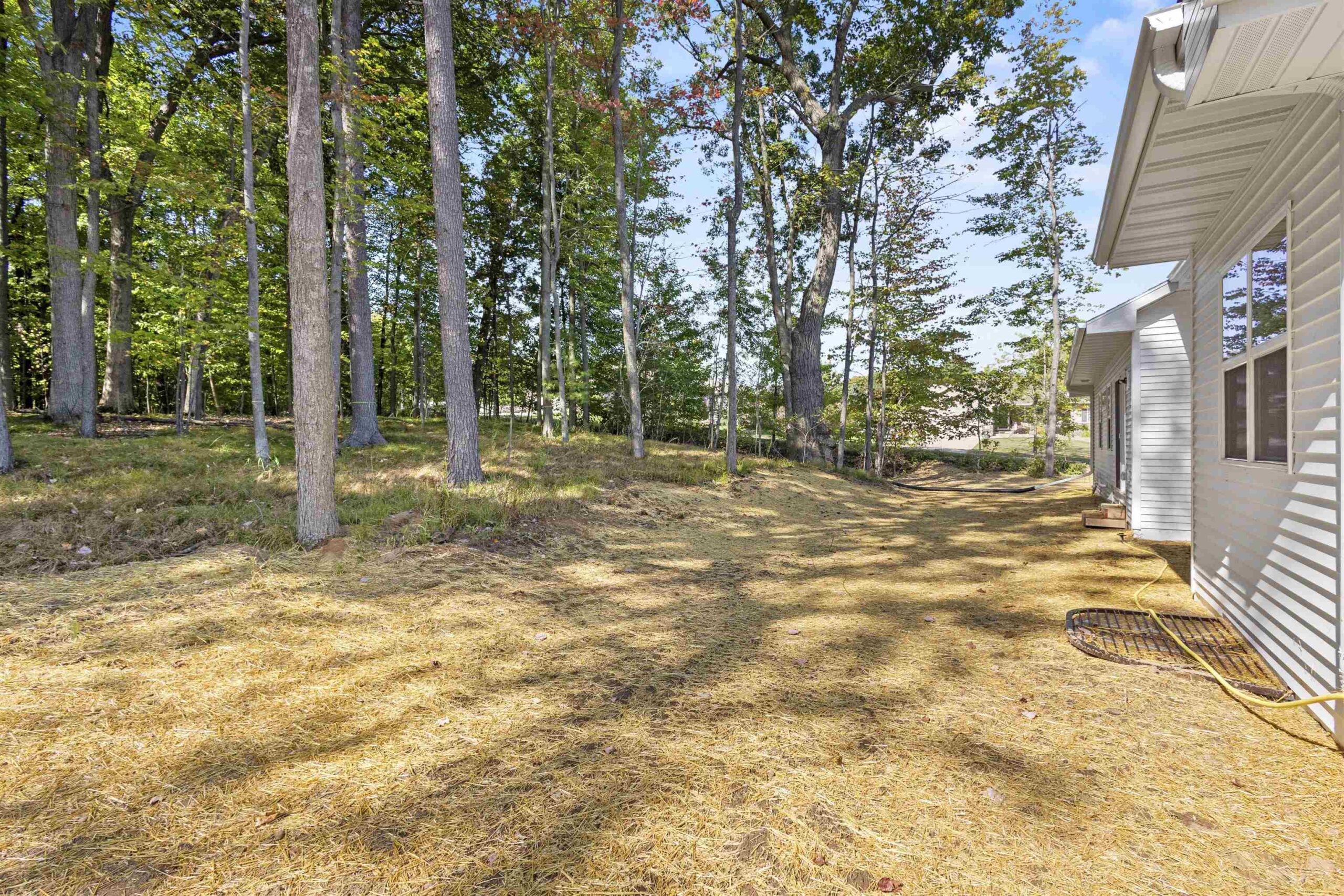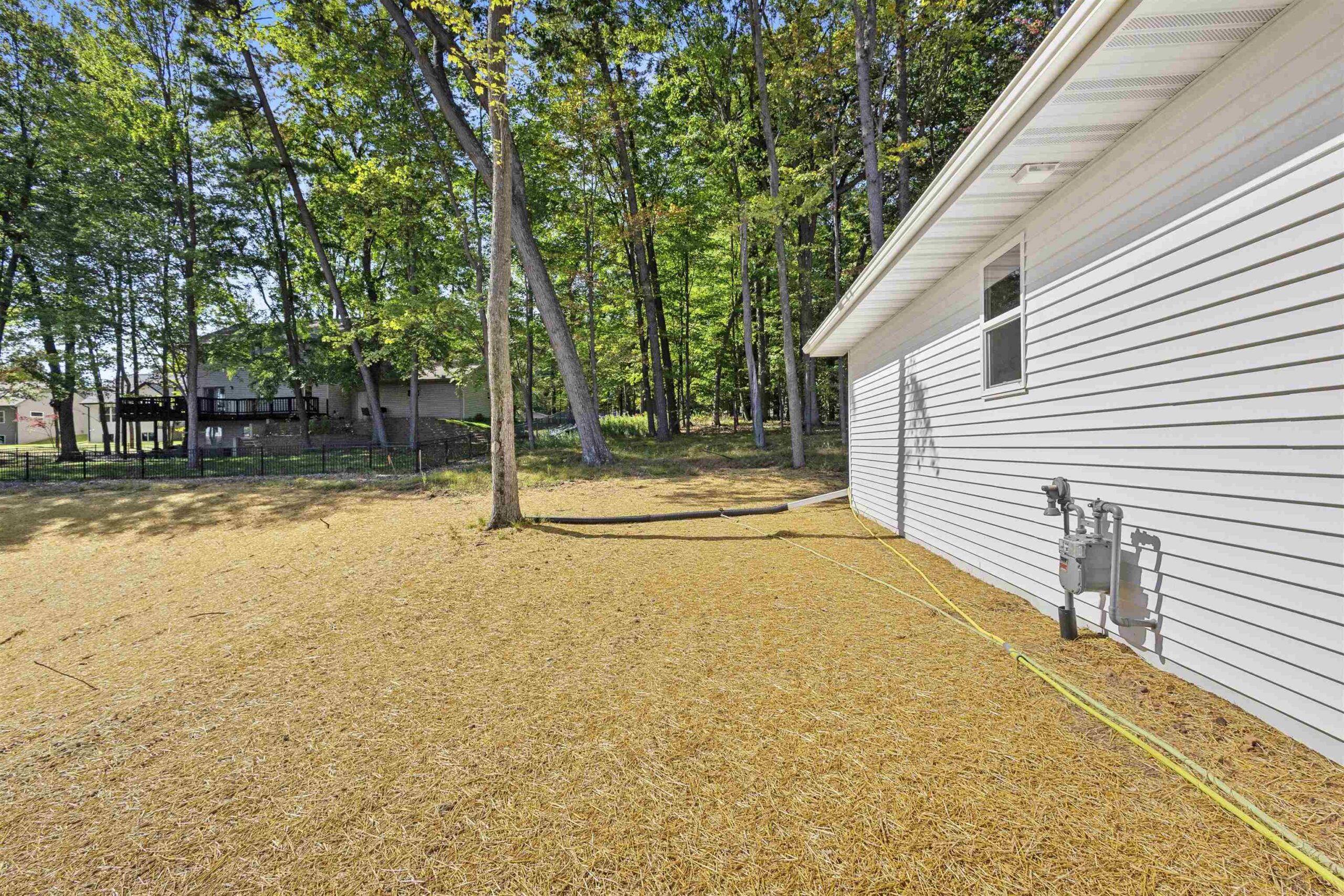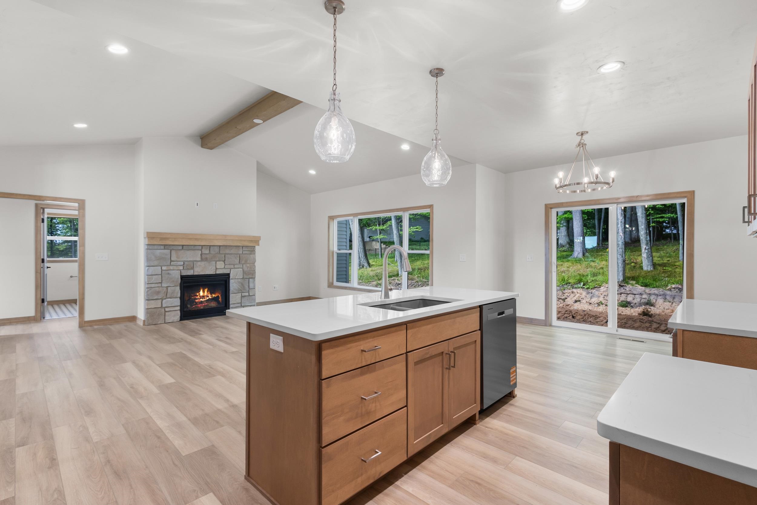 SEEDED YARD INCLUDED! This beautiful home is the definition of class & comfort, located in a quiet neighborhood with views of well established trees. In the kitchen, custom built maple cabinets, stained Treasure, Quartz Trigato countertops, Glace Deco Bianco backsplash & walk-in pantry create a stunning space that flows into an open & airy great room. Relax next to the HTL Novus 33" gas fireplace, beautifully accented by Casa Di Sassi Volterra Genoa stone. A custom beam accents the cathedral ceiling. In addition, you can sit on your front porch & enjoy the sunrise each morning as you overlook the subdivision. Lower level is stubbed for a bathroom & has an egress window for future expansion. ORANGE STAKES AT REAR OF PROPERTY NEAR TREES MARK LOT LINE.