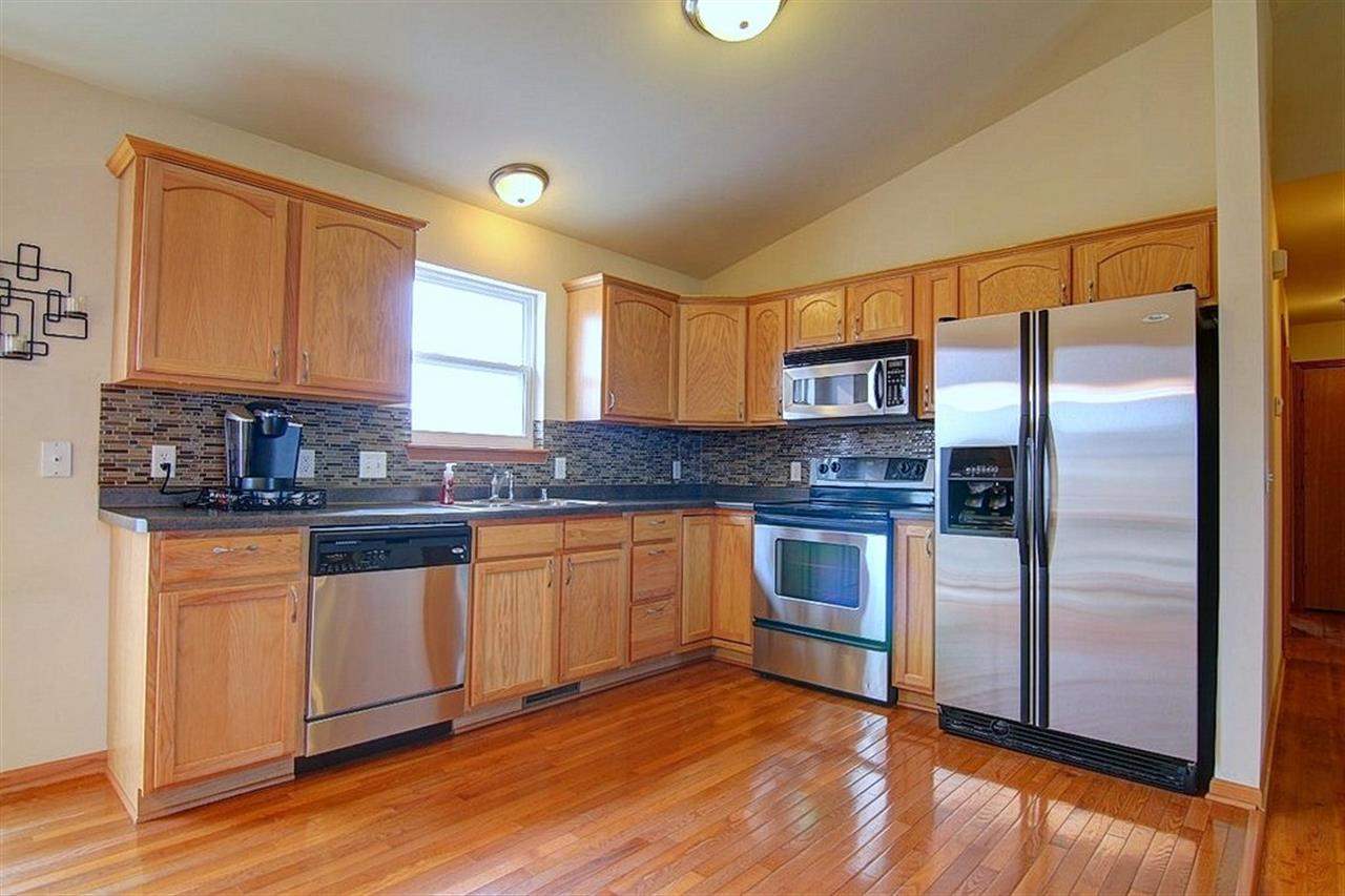 4 bdrms, 3 full bathrooms, 2,200 finished sqft Ranch on huge corner lot. Sunny & spacious great rm has laminate floors, vaulted ceiling & neutral colors. Kitchen features stainless appliances, back splash, new hardware & room to add a island. Patio doors off dining lead to fenced yard, composite 20x20 deck, patio, garden area & nice landscaping. Main level laundry. Lower level has a enormous family room w/recessed lighting, 4th bdrm, full bath & rec room. VPR: $222,500-232,500.