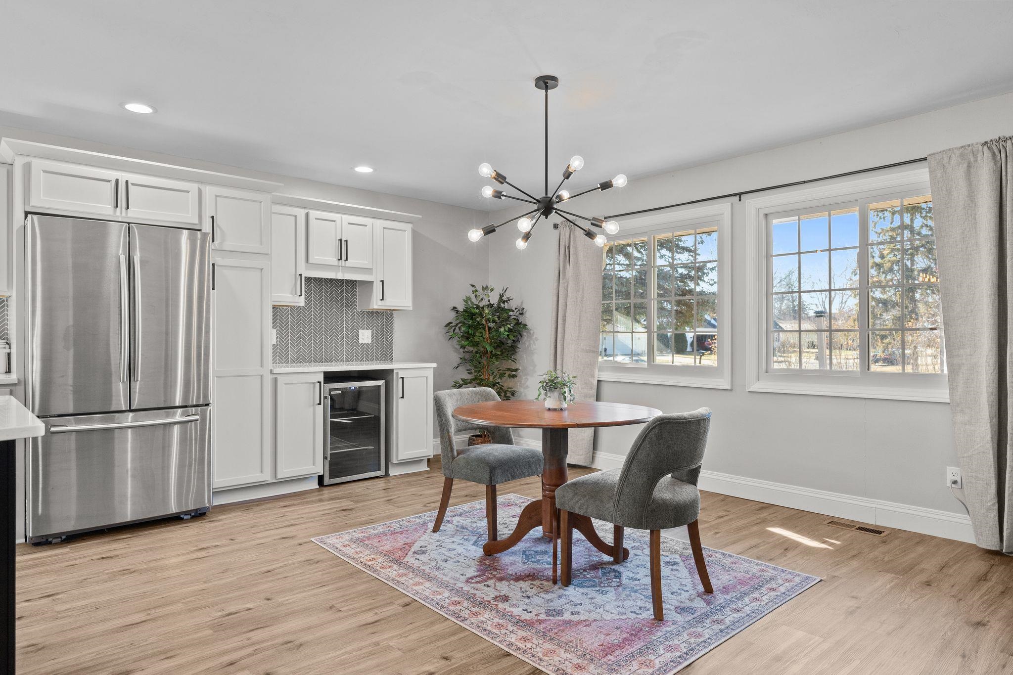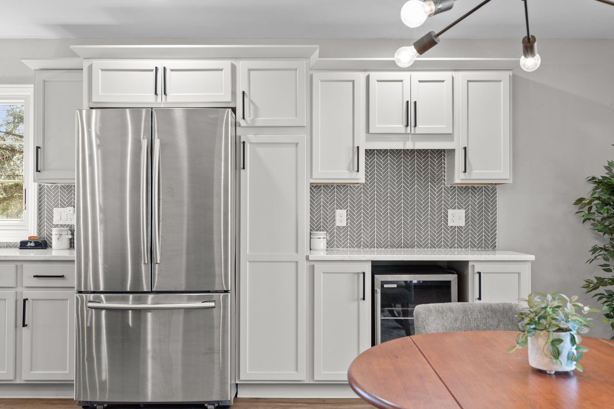Refrigerator, Washer, Dryer, Beverage Fridge in Dining Room, Oven/Range, Microwave, Workbench in LL, Storage Cabinets in Garage