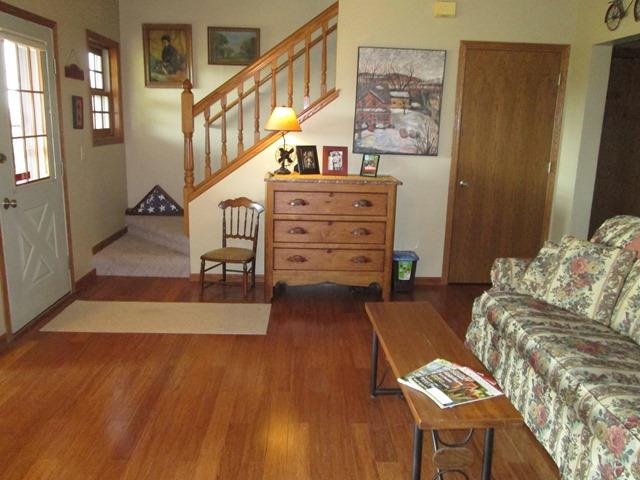 HORSES WELCOME! 4.3 Acres zoned for animals. Many upgrades to this 19 year new 3 BR w/ office 2 full baths and finished basement home. 09’ new roof 07 new oversized 2 car garage, Includes stove, DW, Micro new 2013. New corin counters, wood stove, heats entire home. Beautiful pond/ waterfall stocked with fish. Addition to deck 2012, Maintained 1879 barn w/ new metal roof and siding. MECHANICS DREAM 60x105 metal building, h/c water, heater, overhead doors w/ openers, 220 electric, sliding doors, loft