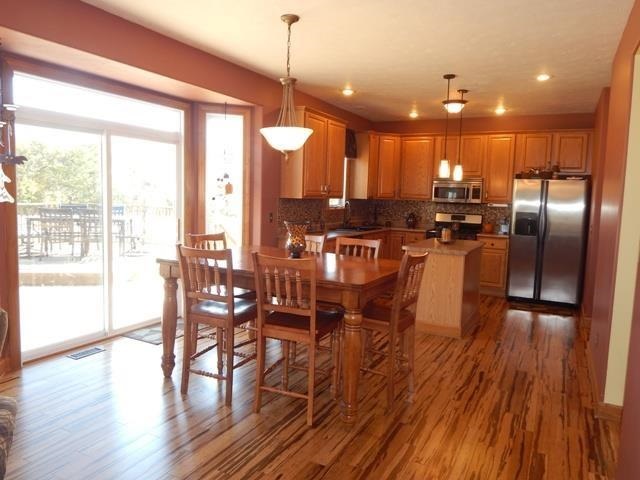 Spotlessly Clean! Upscale Design & Finish. Stunning Bamboo Flooring Stretches thru-out entire Main Floor. HGTV Décor offers move-in ready condition. Eat-in Kitchen with 42" Cabinets. Stainless Steel Appliance Package. Tile Backsplash. Pendant & Recessed Lighting. Island. Satin Nickel Hardware. Whirlpool Bath. Double Sinks. Walk-in Closet. Partially Exposed Knotty Pine Media Room & Gaming/LL with Upgraded Carpet, Buffet & Bar Refrigerator. 6 Panel, 8-foot Doors. Radius Corner Finish.