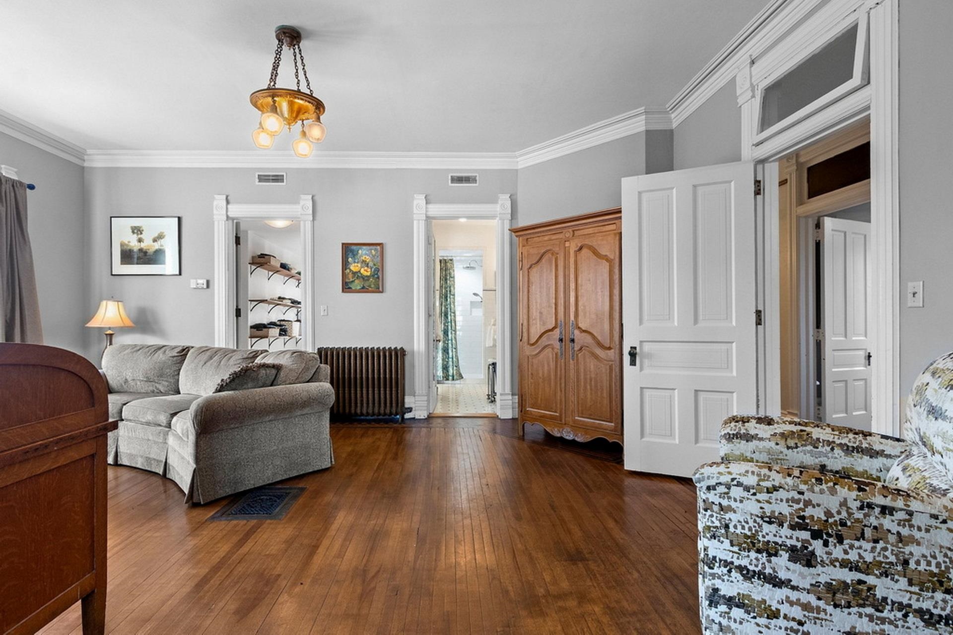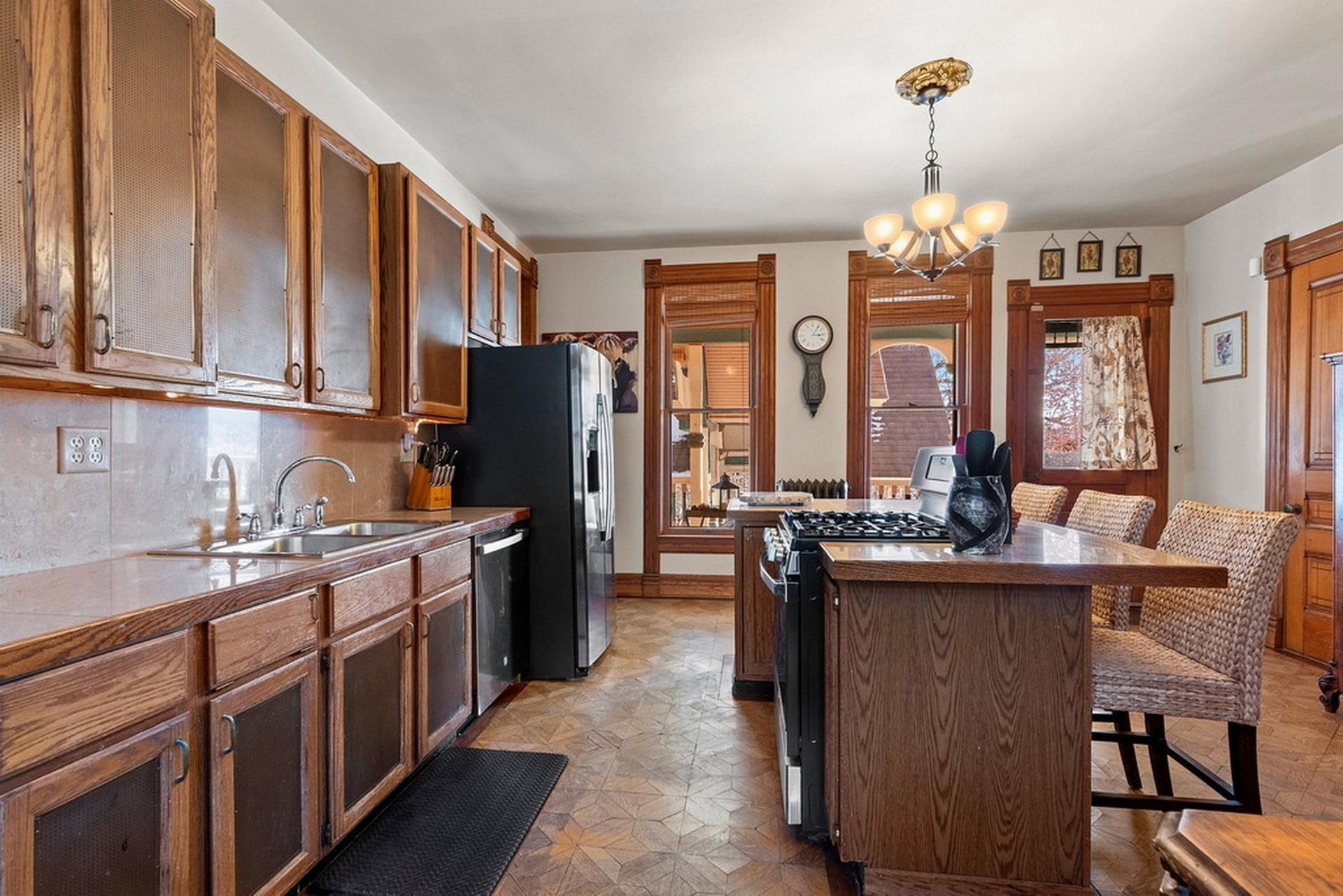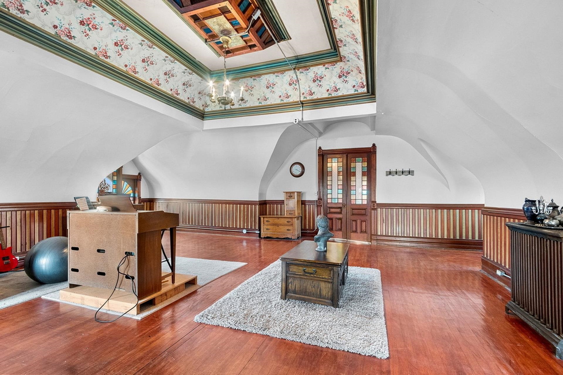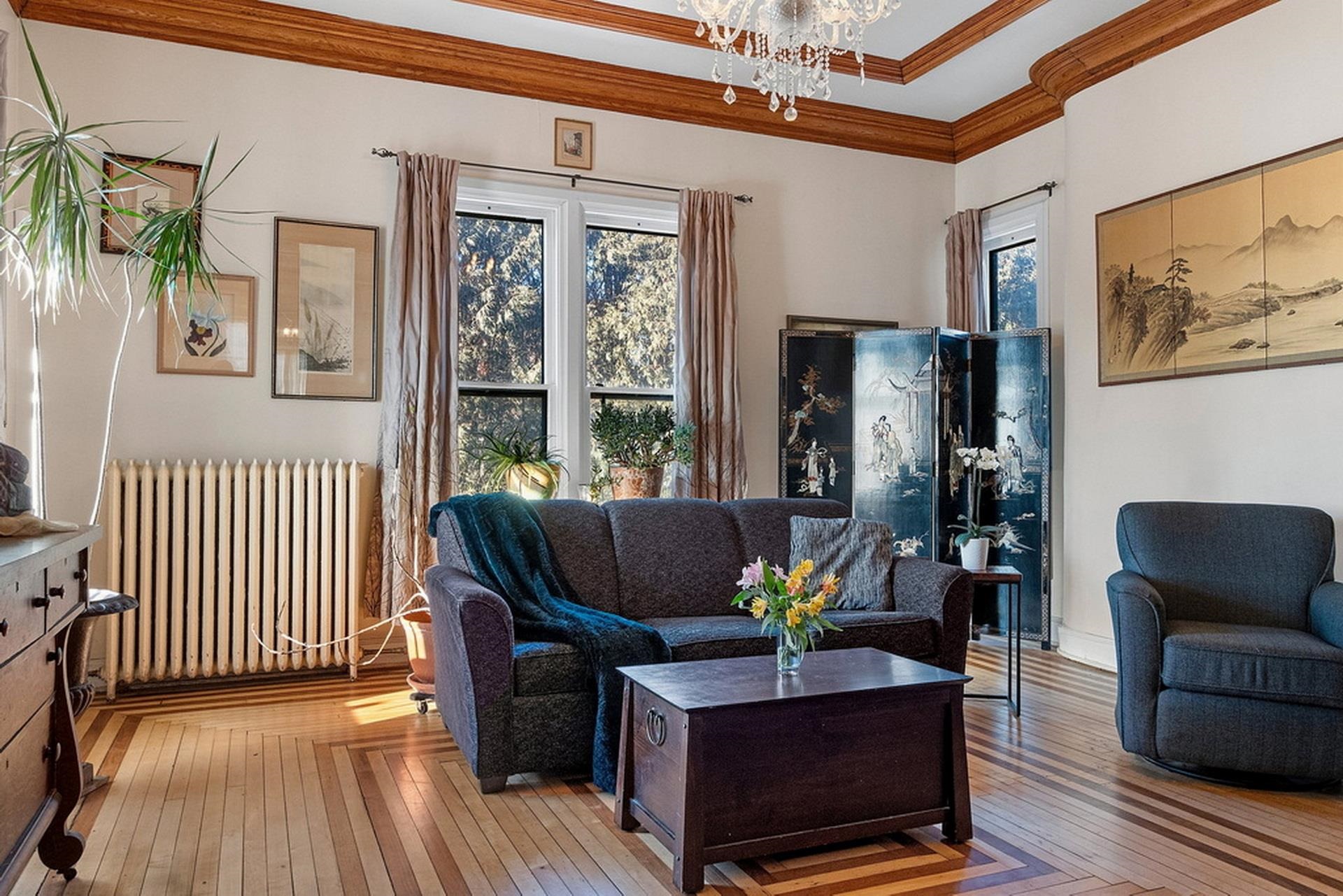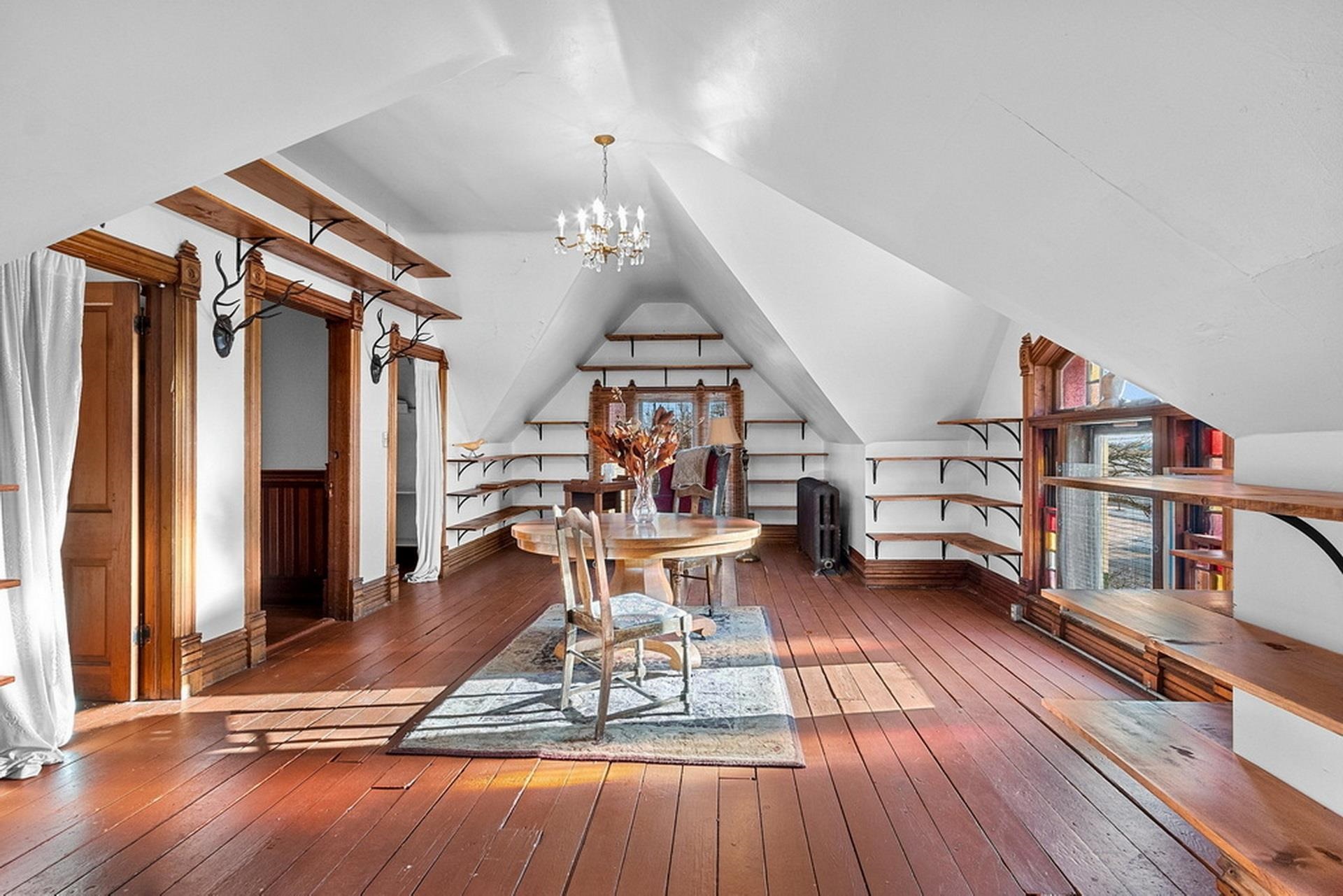 This ornate Queen Anne-style 3-story home is truly unbelievable! Built by a true lumbar baron. Many types of wood throughout include flooring, spindles & layers of crown molding. Extravagant in style, this home offers 4-5 bdrms and 3.5 baths. 1st floor family rm/in-law suite w/own entry, newer tiled walk-in shower. 3rd floor wood-burning pellet stove adds not only warmth but ambiance. Updates on every level and stained glass throughout. Fenced in yd, garden and garden shed for additional storage. Beautiful updates and stained glass on every level! Attached port cochere allows additional covered parking along with 2-car garage. Additional zoning allows for a Bed & Breakfast & many other uses. Call for your private showing today!