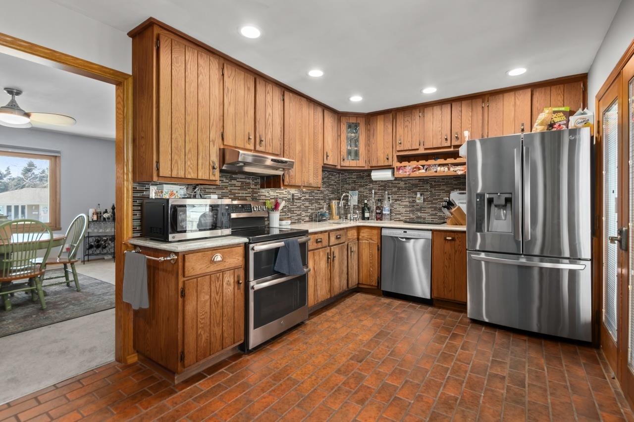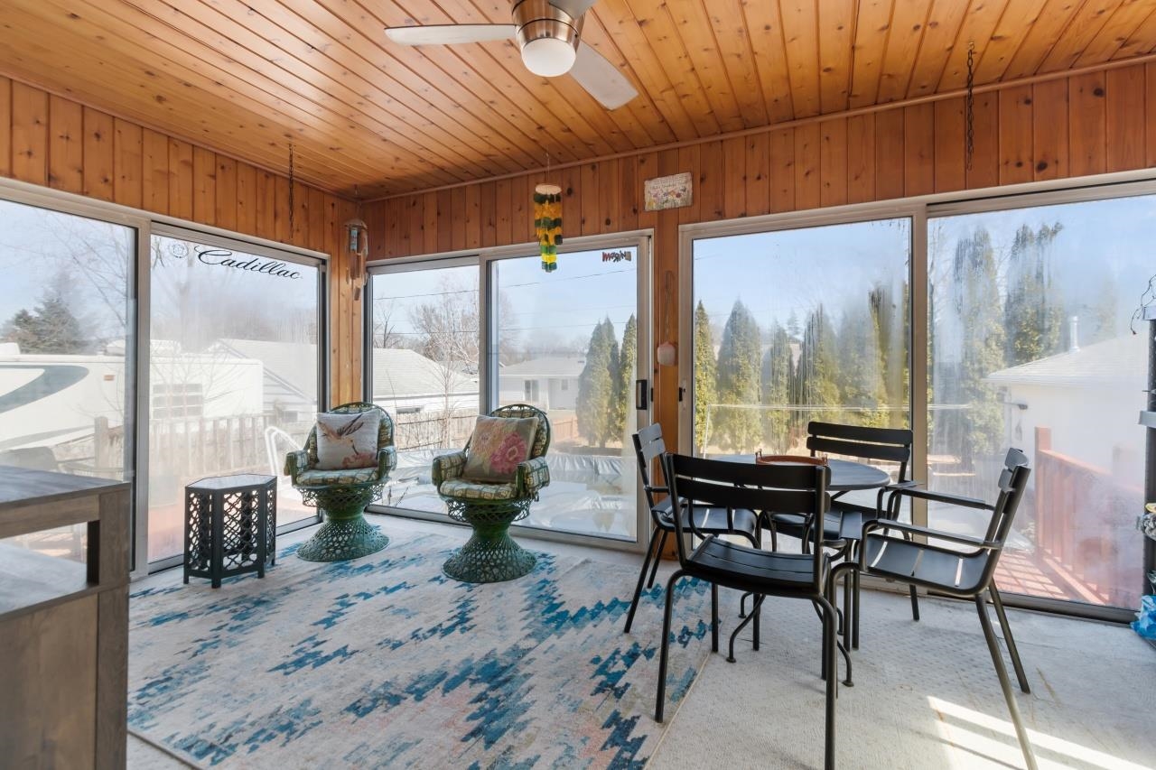 This bi-level home is built for relaxation and fun! Featuring a spacious three-season room that opens to a sunny deck with an above-ground pool. Additional highlights include six-panel doors, a four-car heated garage, a jetted tub upstairs, and a steam shower downstairs. Recent updates include a new roof (2021), a remodeled kitchen with quartz countertops and beautiful oak cabinets, as well as a new water heater and furnace (2020). The home also has oak doors throughout and a radon system. Conveniently located near shopping and Hwy 41. Fireplace is decorative. No showings before Saturday 4/12/25.
