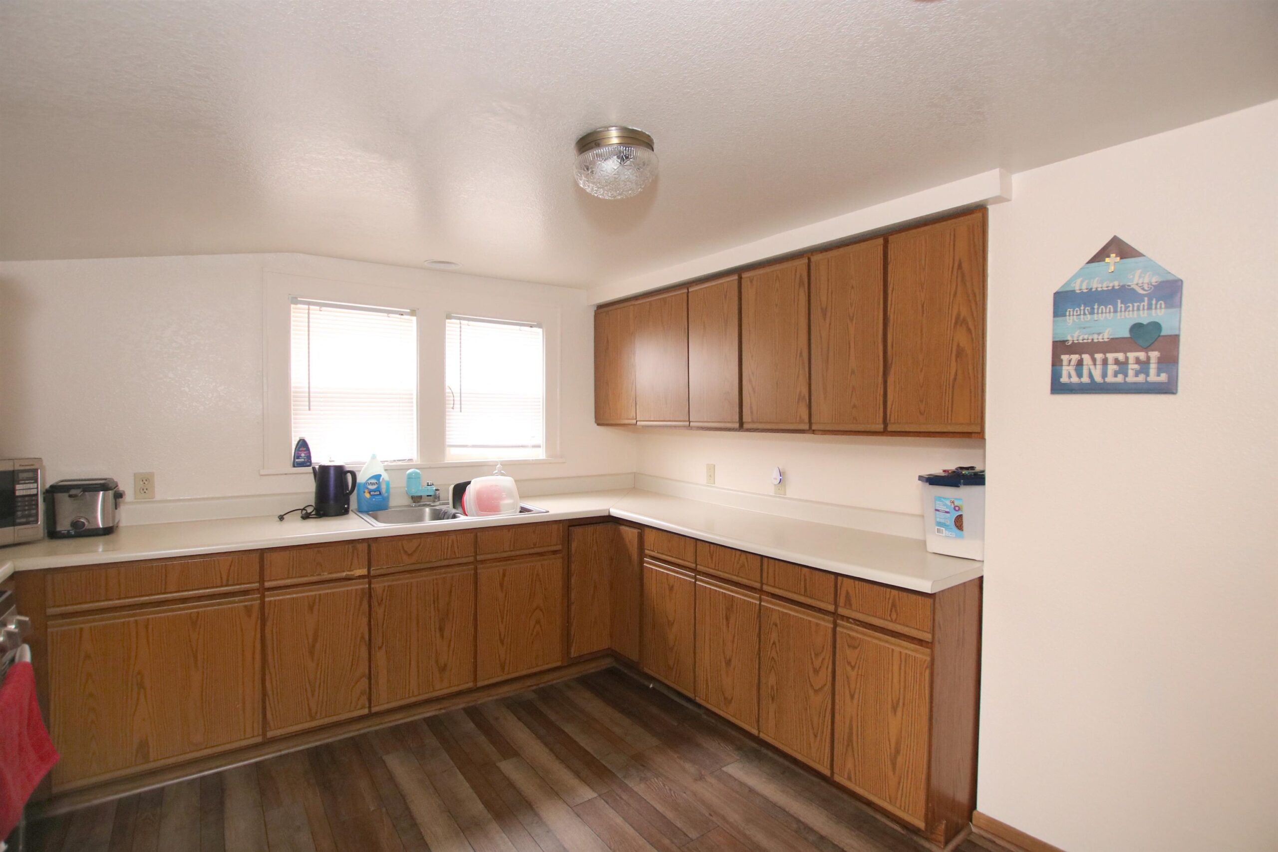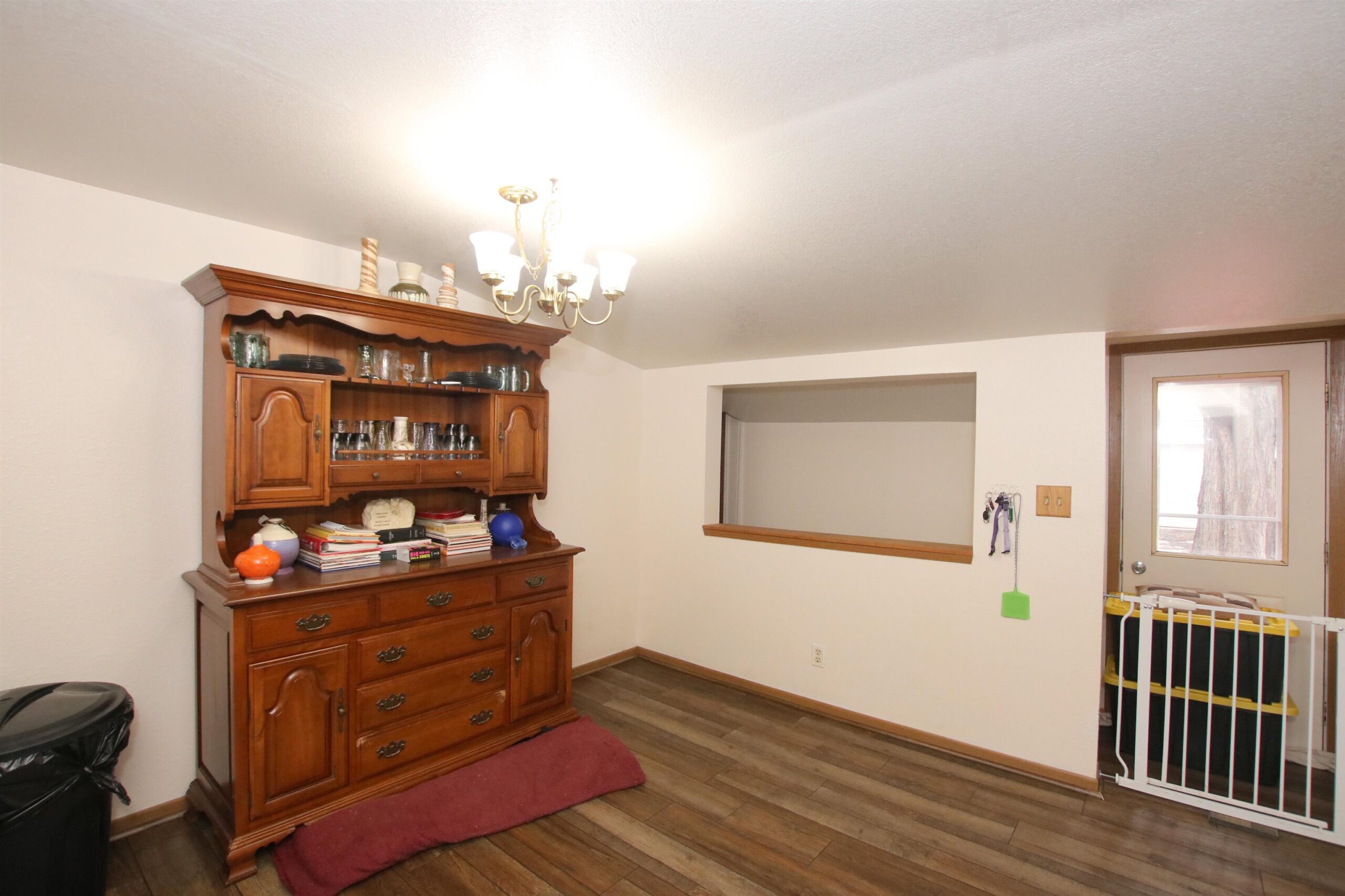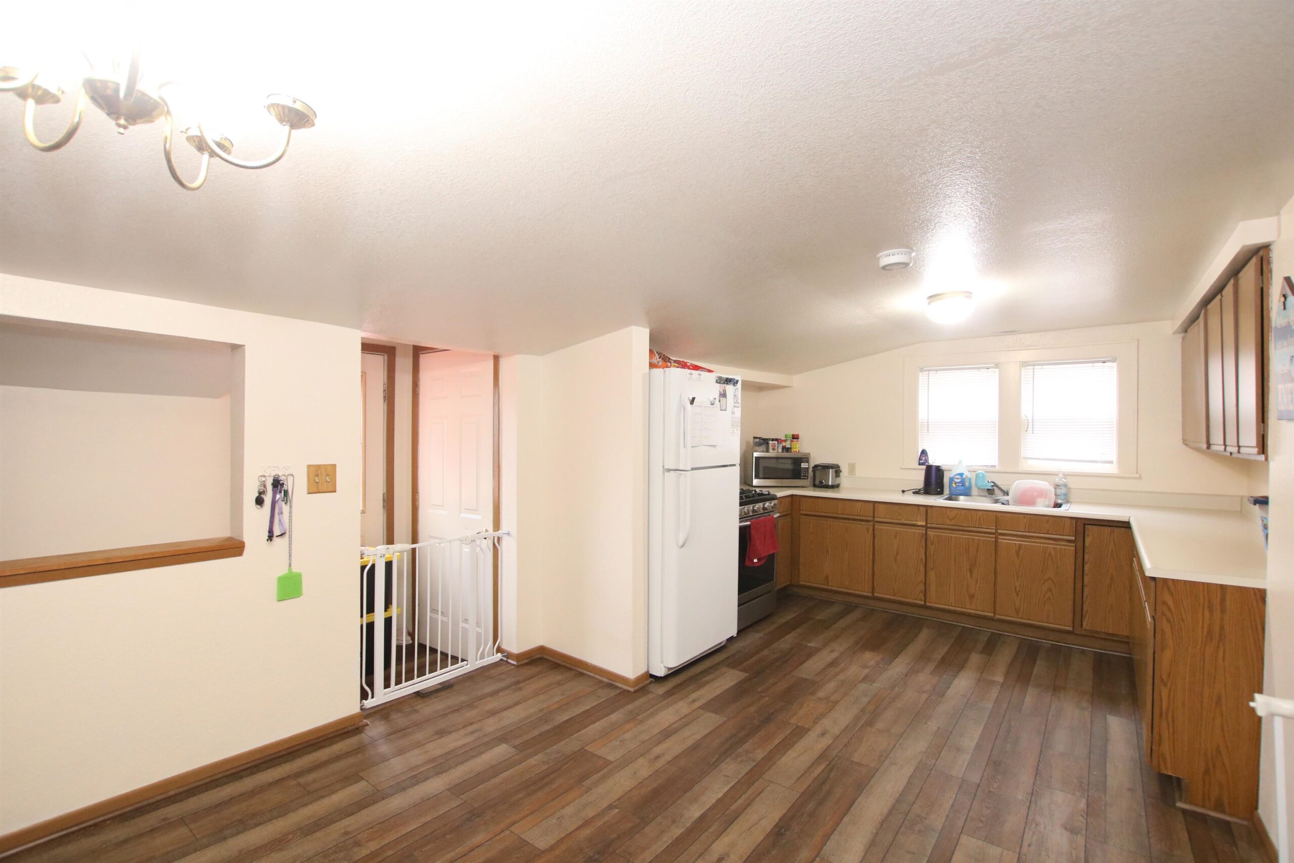 gas stove, refrigerator, microwave, 3 window a/c units, water softener (never been used), garbage & recycle bins, window treatments, GDO w/remote