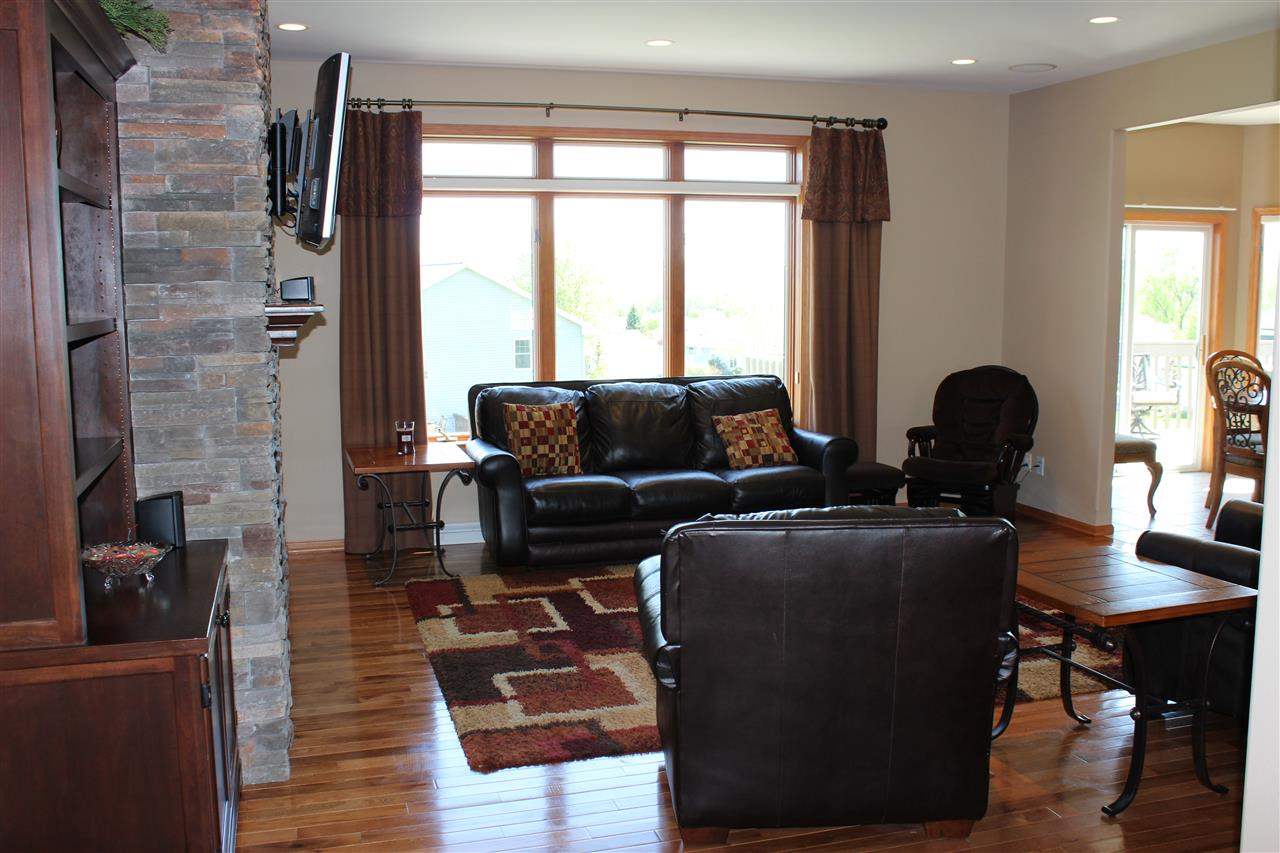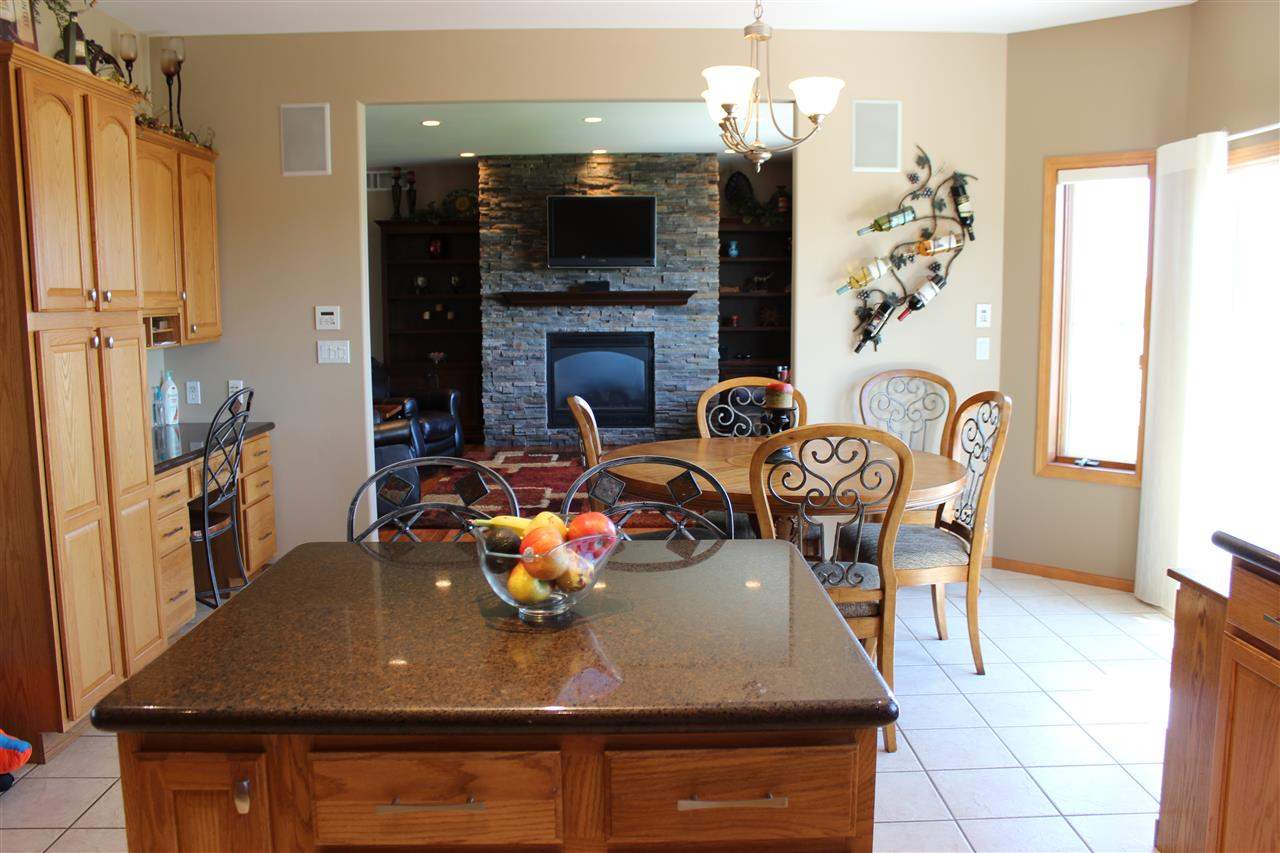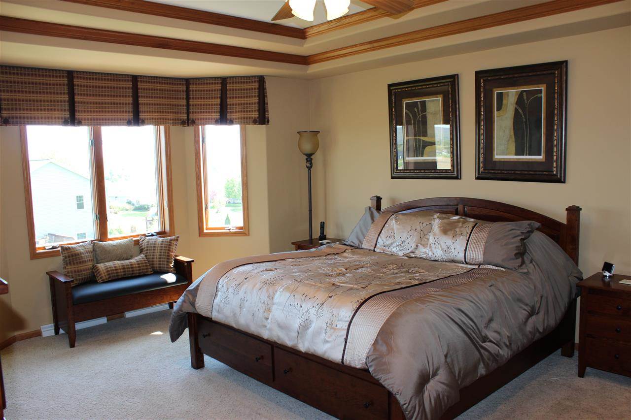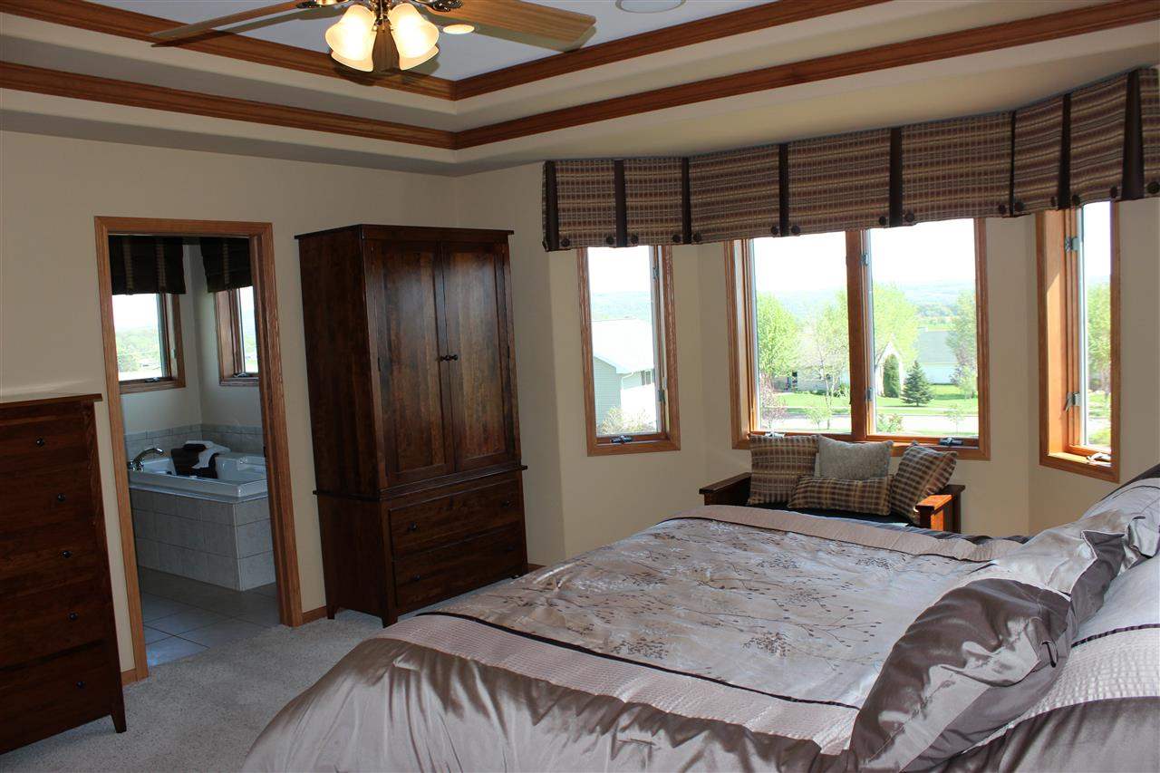 Spectacular view of the Baraboo Bluffs. Open concept w/ views from living room, kitchen, & Master bedroom suite. Formal dining, plus eat-in kitchen w/ island, quartz counter tops, & stainless steel appliances. Finished walkout lower level boasts 4th & 5th bedrooms, a huge family room, & den. Great yard w/ deck, patio, & extensive landscaping. Integrated whole house audio system (ask for details!), 9’ ceilings, hardwood & ceramic floors, zoned heat,3 car garage. New water heater & A/C. UHP Home Warranty!