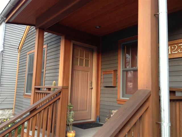 Great Craftsman Bungalow on the Isthmus! New cedar siding/trim work. Great yard w/many perennials, newly constructed matching shed & 3 parking spots. Open floor plan w/custom cabinetry/features throughout. Custom bathroom has vaulted ceiling, skylight, Kohler fixtures & more. Master BR has hardwood built-in queen bed w/hidden drawer, oak shelving & headboards. Basement newly remodeled w/office, family room, laundry area, built in cabinets/storage. Front porch has Douglas fir ceiling, large cedar railings.