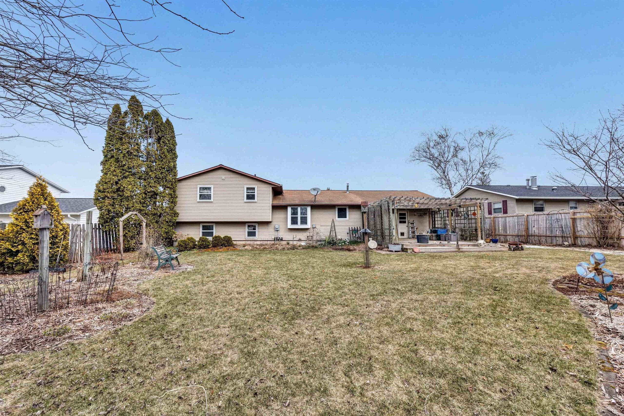 SWEET SPOT ALERT! Discover this one owner, custom built home located minutes from iconic Lambeau Field in Ashwaubenon! 4 bedrooms / 2 full baths, all well maintained and loaded with extra features any owner will love & enjoy. Multi-level living spaces include living room on main lvl, family room w/gas fireplace in LL, and den in basement along w/workshop as well as updated kitchen that has appliances, roll out shelving in pantry and hide away coffee bar. Outside you will fall in love with the fenced yard surrounded by stunning, mature perennials that create a relaxing atmosphere even the birds love! (small sitting / birding area) Covered front porch, large deck w/pergola in the back, storage shed and extra parking. Ask for list of Fabulous Features & Updates. HOME WARRANTY INCLUDED