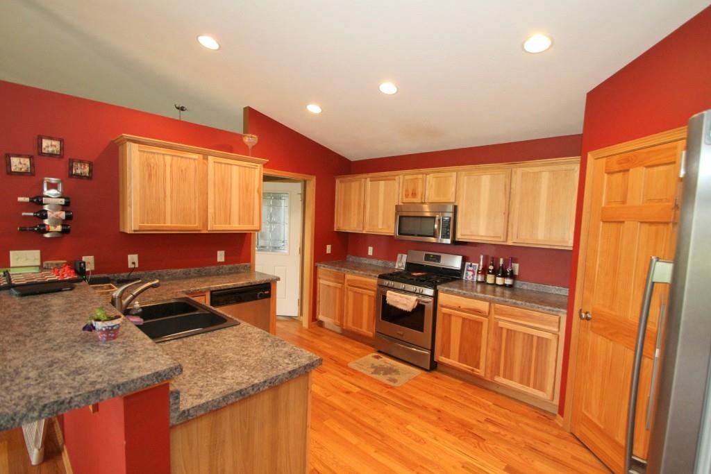 Spacious ranch home on Janesville north eastside. Split bedroom floor plan. Master suite with WIC and jetted tub. Kitchen has hickory cabinets walk in pantry, and oak hardwood floors. Great room with cathedral ceilings gas fireplace with window surround. Two additional bedrooms on the main floor. The walk out lower level features a family room theater or game room, 3rd bath, and 4th bedroom. The deck and patio overlook the greenbelt. The 3 car garage complete the package.