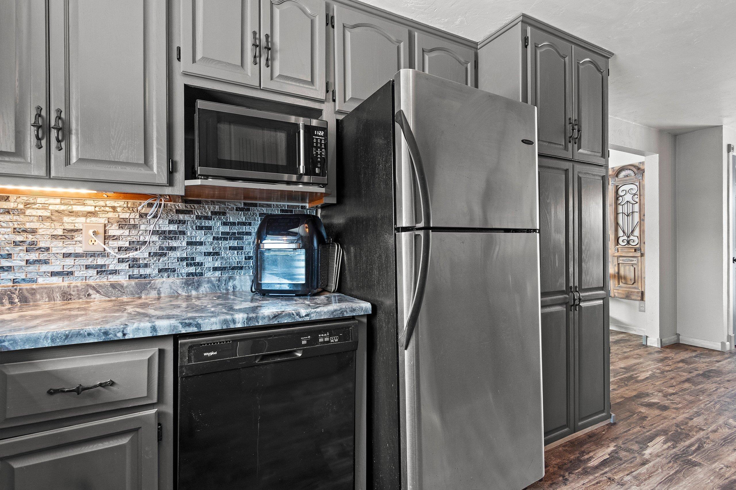 stove, refrigerator, microwave, dishwasher