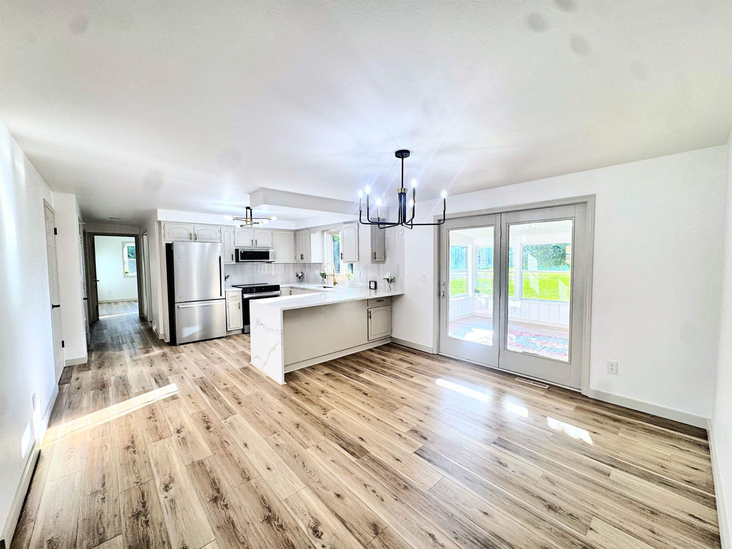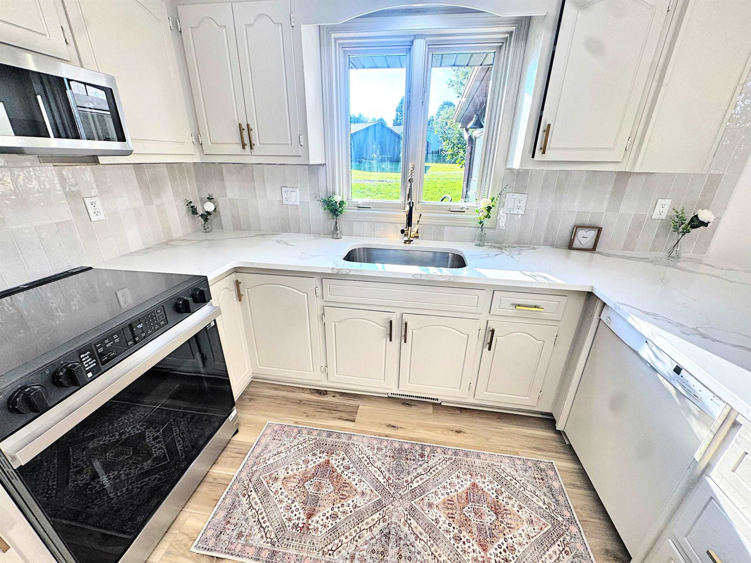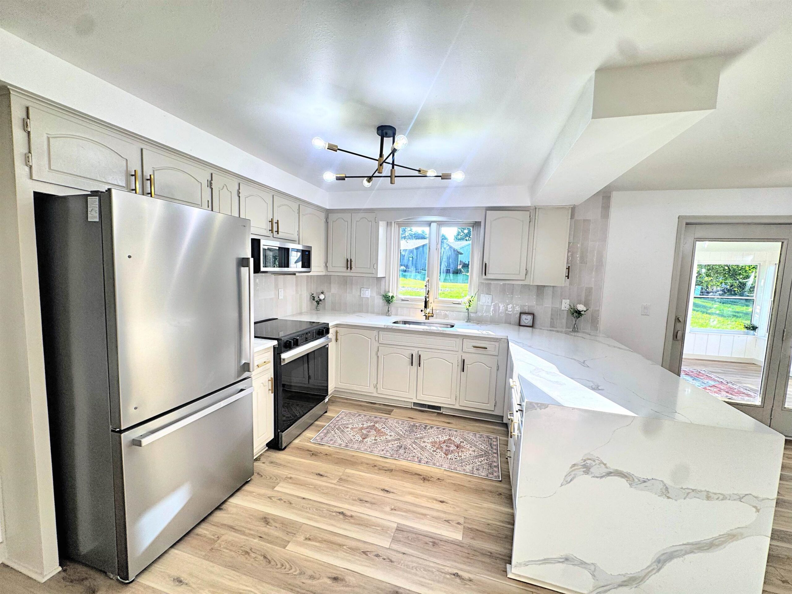 Completely updated sprawling 3 bedroom 2 full bath split level ranch with high end updates throughout. Kitchen features refinished cabinets, quartz countertops, eat in waterfall peninsula, tiled backsplash and stainless steel appliance package. Thermal energy efficient windows and commercial grade flooring throughout. 3 season fully enclosed sun room that over looks backyard. Newer furnace and tuned up central air conditioning. Main level laundry with lots of built in storage. Every detail has been updated. This is the one you have been waiting for to call home!