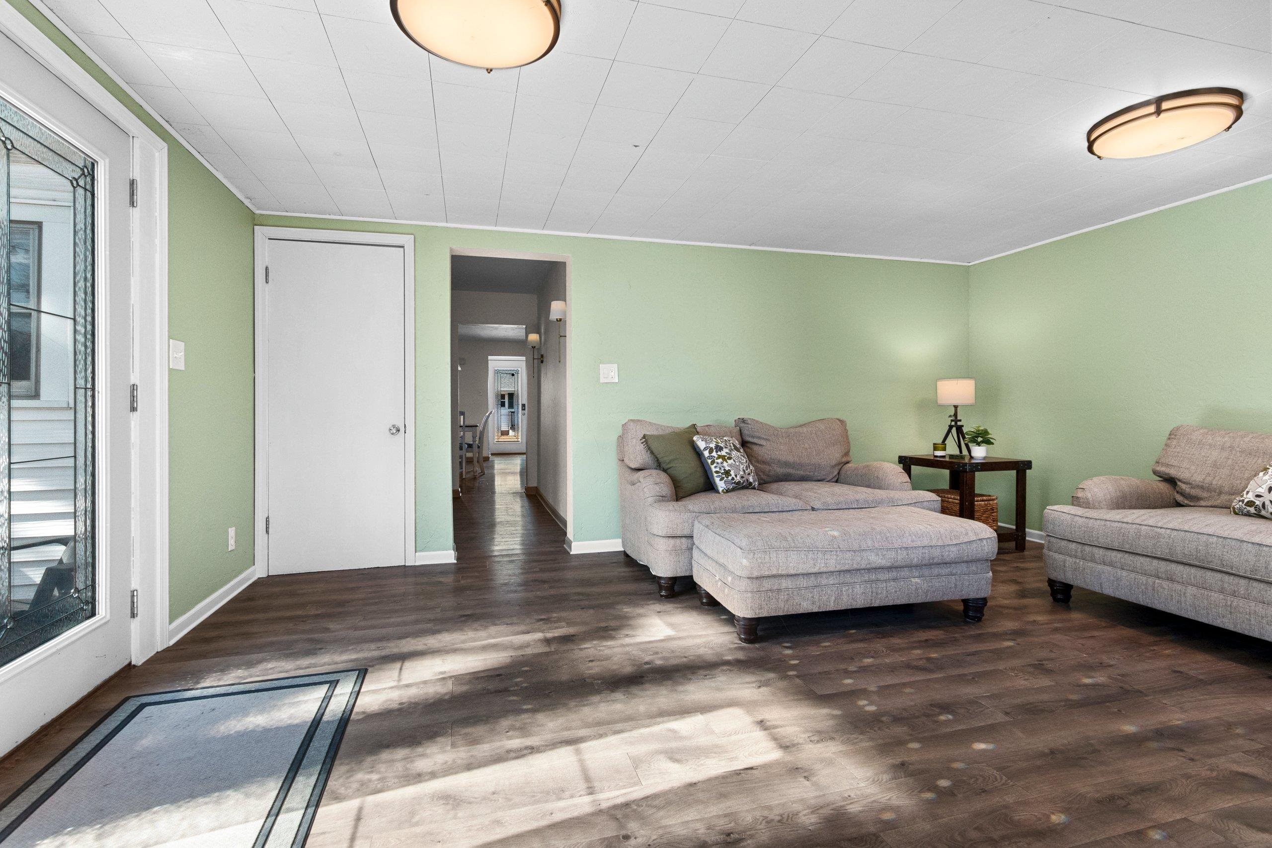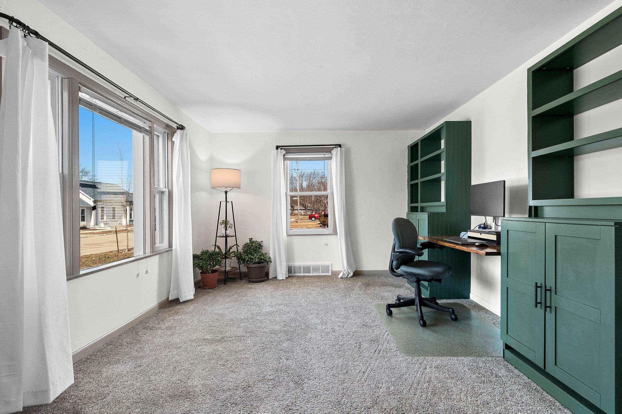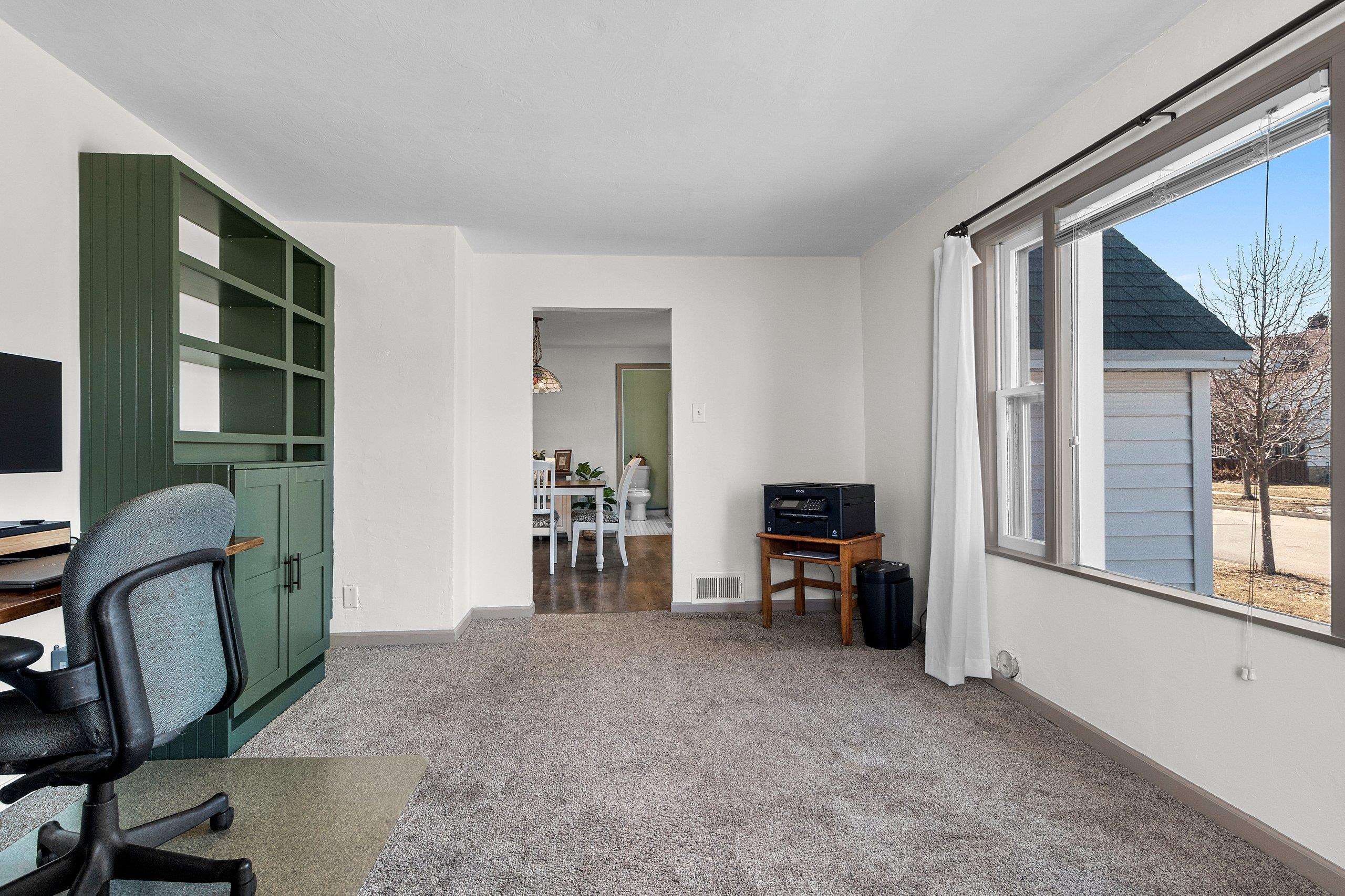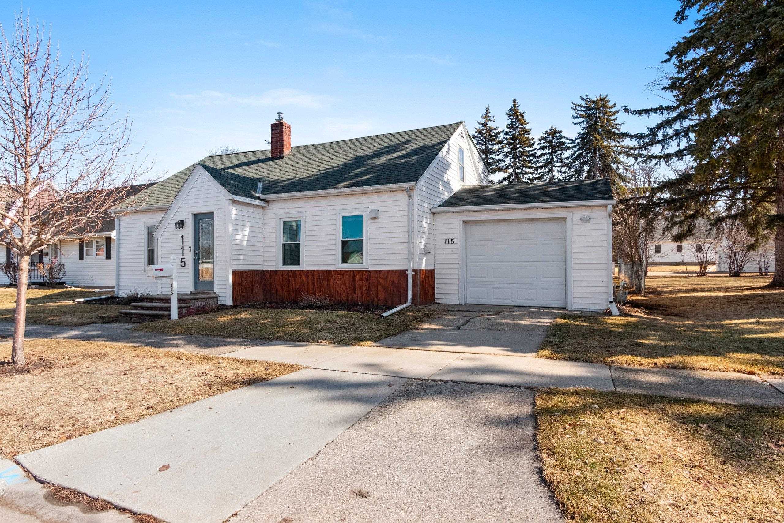 Welcome to this spacious Cape Cod on Washington Street close to Legion park. A sunny dining room greets you as you enter, with the kitchen just off the attached garage for easy everyday living. Flexible 4+ bedroom layout with a main floor bedroom featuring a walk-in closet and an additional flex room for an office, den, or bedroom. Recent updates include a fully remodeled bathroom with heated floor, a refreshed kitchen with painted cabinets and open shelving, and more. The living room overlooks the backyard with patio access, plus main floor laundry, an unfinished basement, and parking space in back with alley access.