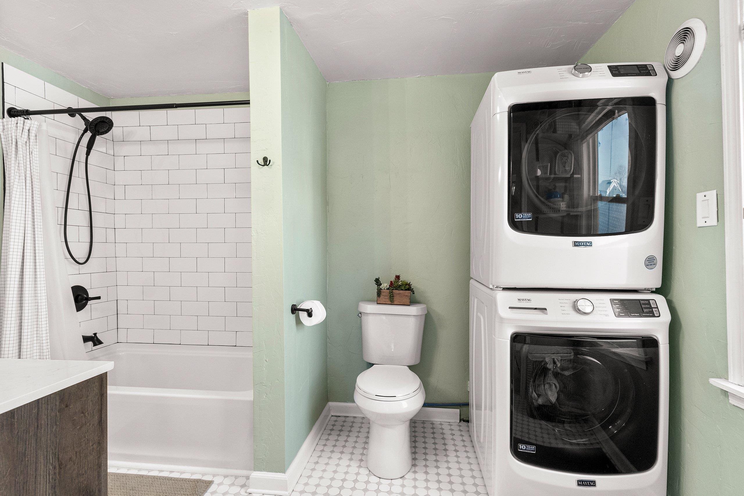 Refrigerator, Stove/Oven, Dishwasher, Washer, Dryer, Microwave in unfinished attic, 2 Window AC Units