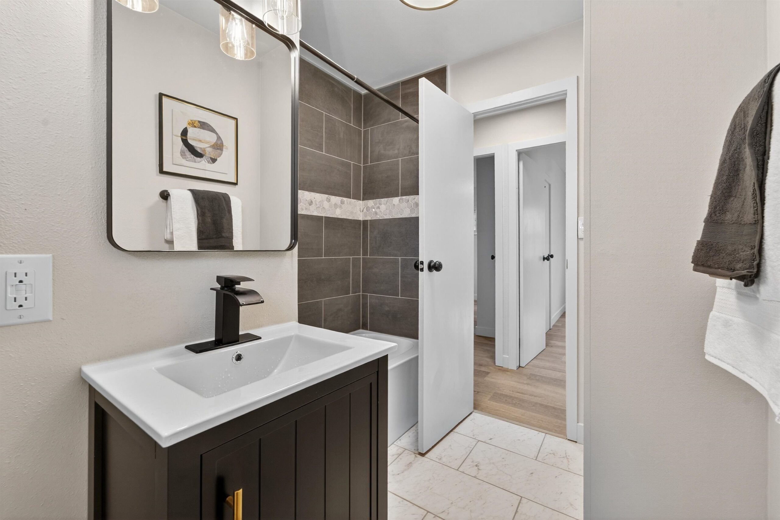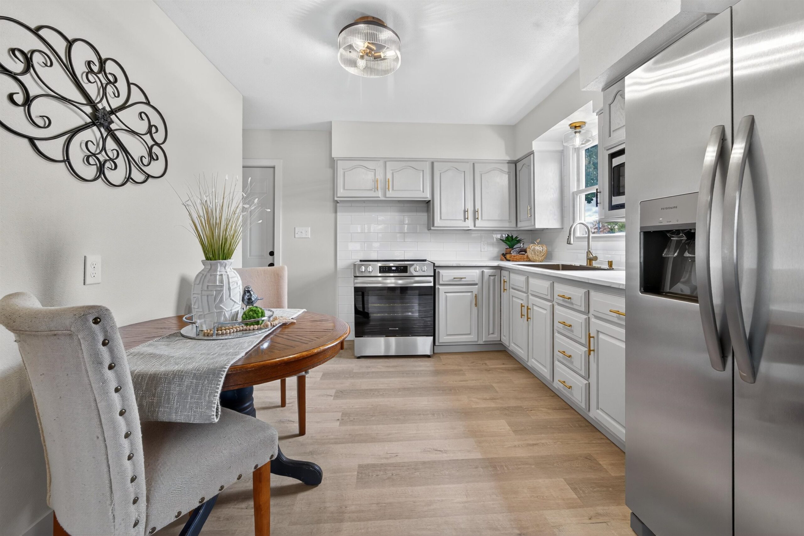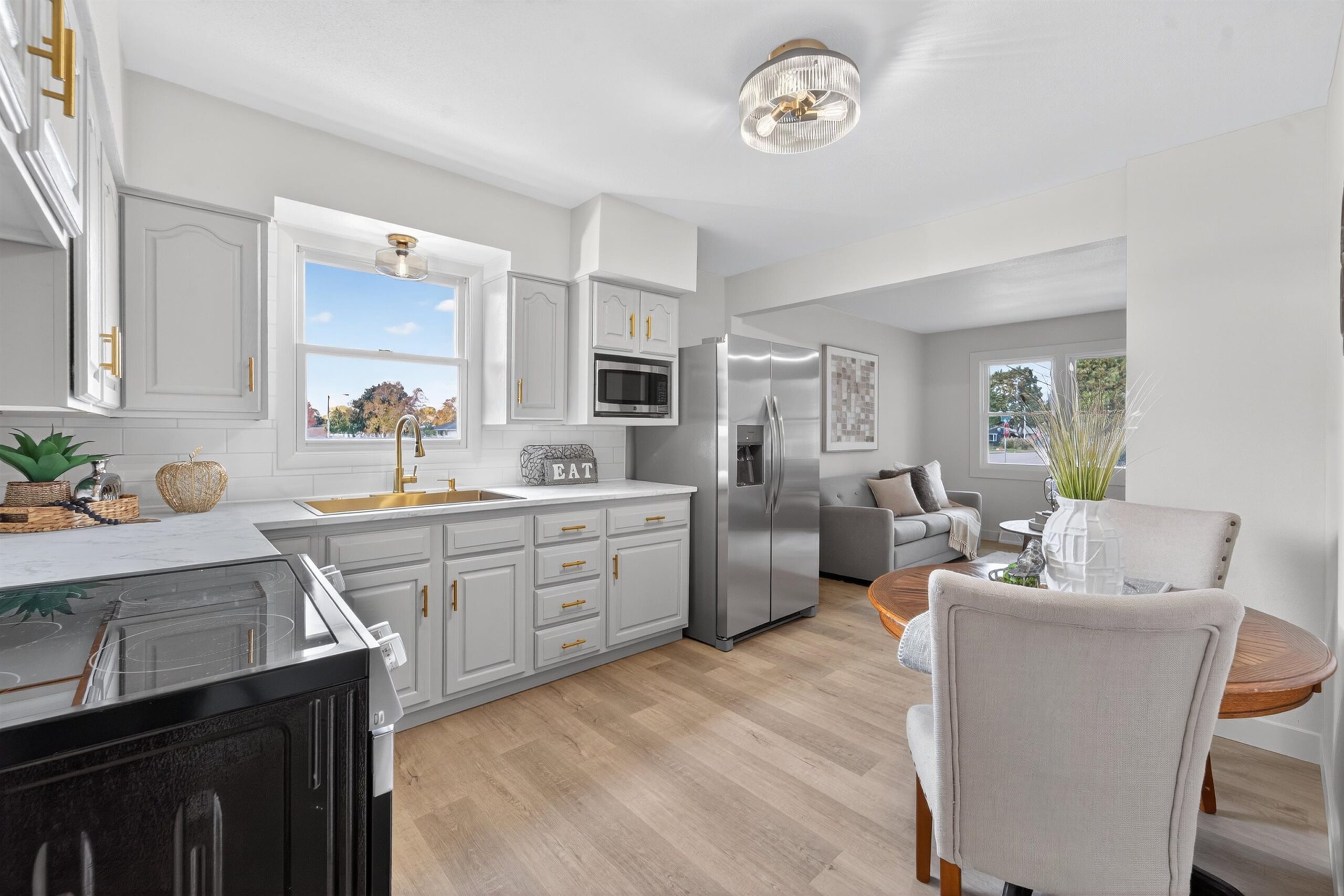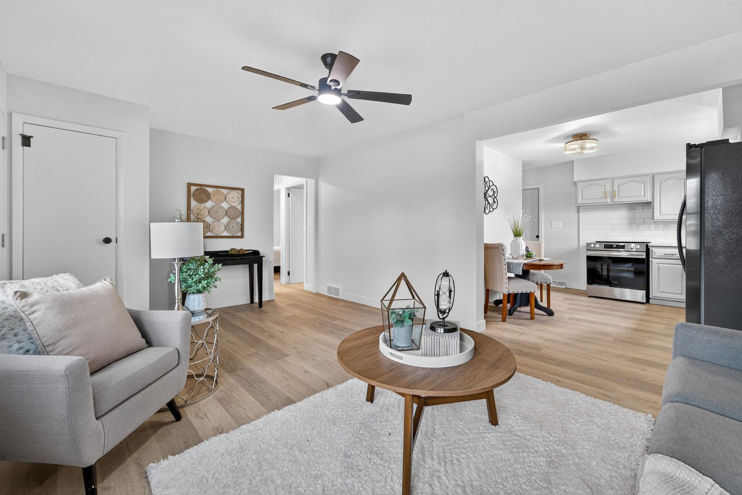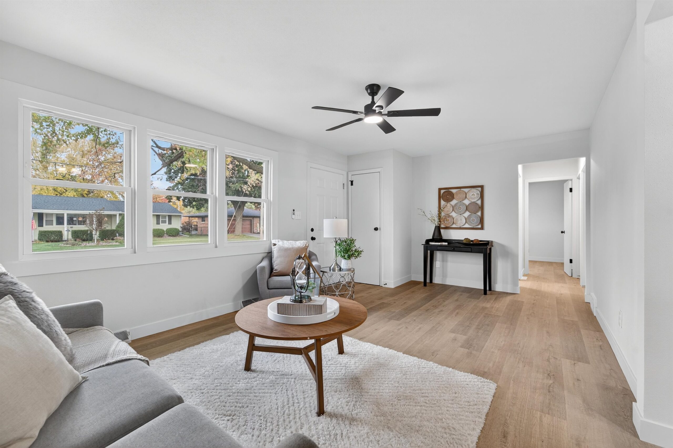Remodeled ranch home with a finished basement ready for you to move right in! Enjoy LVP flooring throughout the main level, a bright living room with new windows, 3 spacious bedrooms, and a stylish full bath with tiled shower. The kitchen offers freshly painted cabinets, new tile backsplash, stainless steel appliance package, and updated counters. A breezeway connects the home to the attached 2-car garage and leads to a new concrete patio, perfect for entertaining. The finished lower level adds great living space with a family room and an additional full bath. Updates include brand new roof, new exterior paint, all new flooring, trim, interior paint, finished LL with full bath and living room, light fixtures, and more!