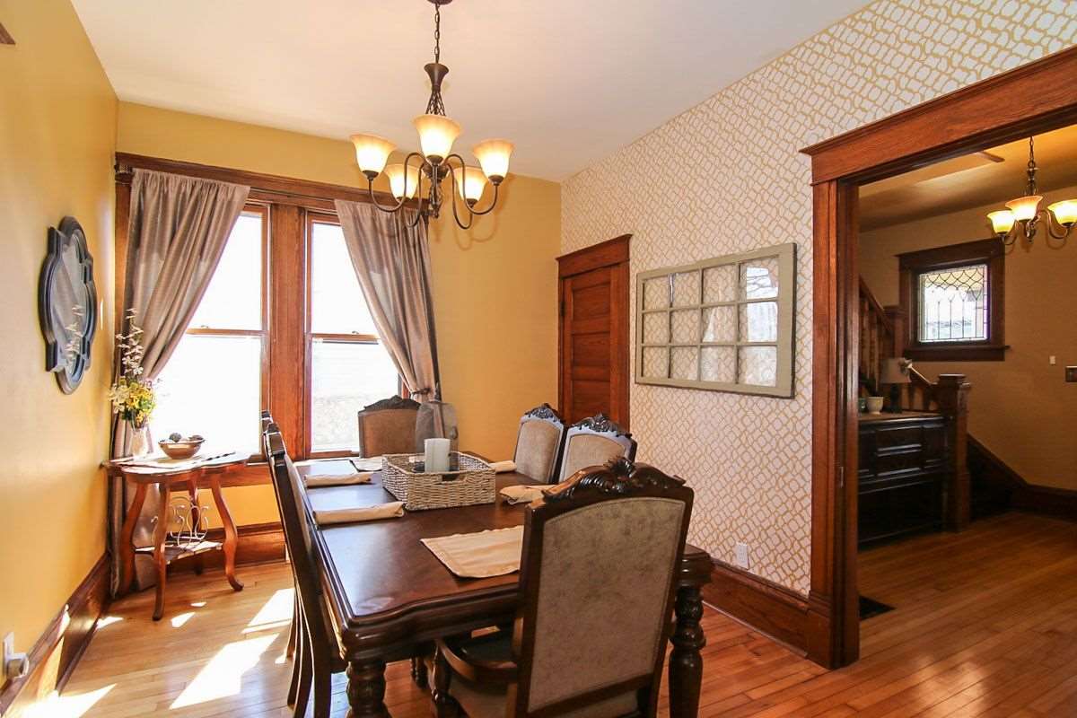 This Gorgeous Victorian is located in Stoughton Historic District. The main level has original woodwork, built- in china cabinet, 2 sets of pocket drs, grand staircase, 10 ft ceilings, maple flrs & leaded windows. Updated kitchen has SS appliances, tiled backsplash & floor. Large bright living rm, formal dining, tiled ¾ bath, office & 3-season porch. A 2nd stair case to UL which has a tiled bath w/plumbing avail. for laundry, walk-up attic & 4 bedrooms. Large 2 car garage, 12x18’ deck & play house.