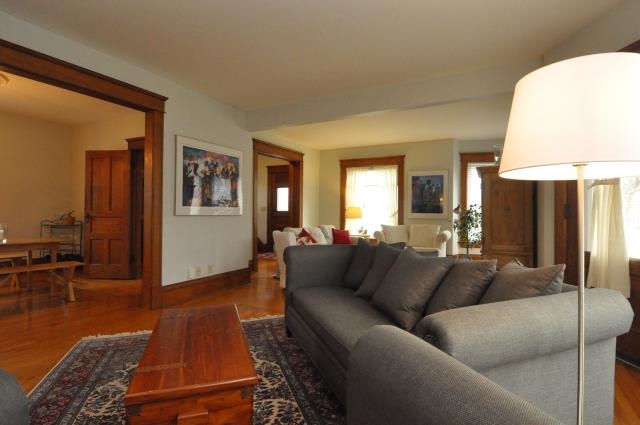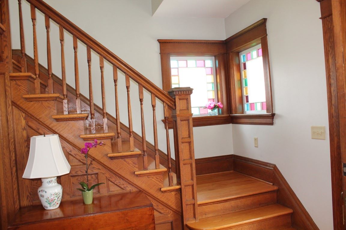 Exquisite Victorian meticulously maintained with a graceful combination of modern amenities and old world charm. Entrance showcases beautiful wood staircase and stained glass windows. Gleaming wood floors add warmth and charm, along with pocket doors and corner fireplace. Large sun room has multiple uses. Newer appliances, furnace and roof; full list of updates available upon request. Perfect location with short walk to downtown, schools & park on double city lot. Finished attic currently used as 4th BR.