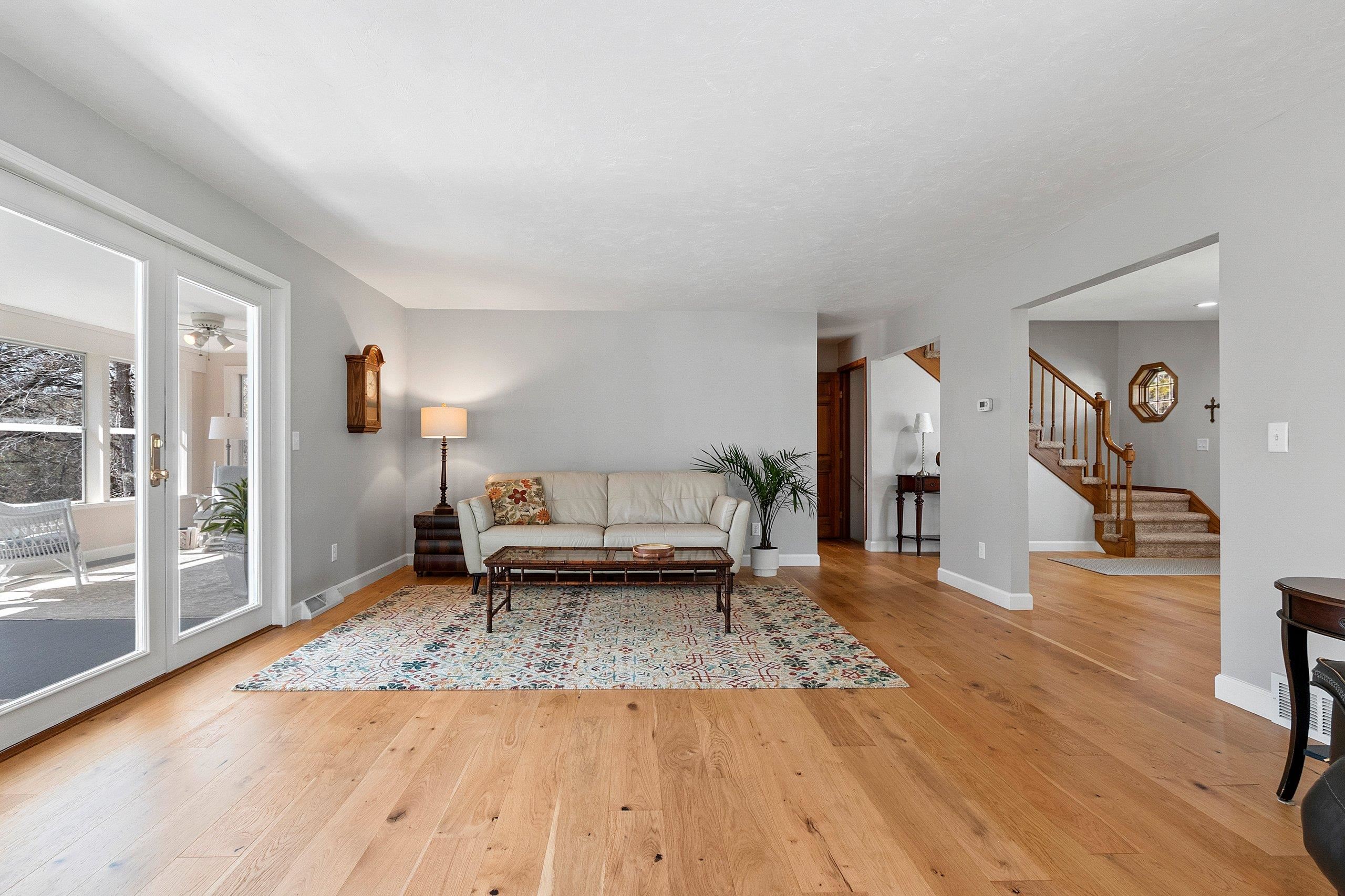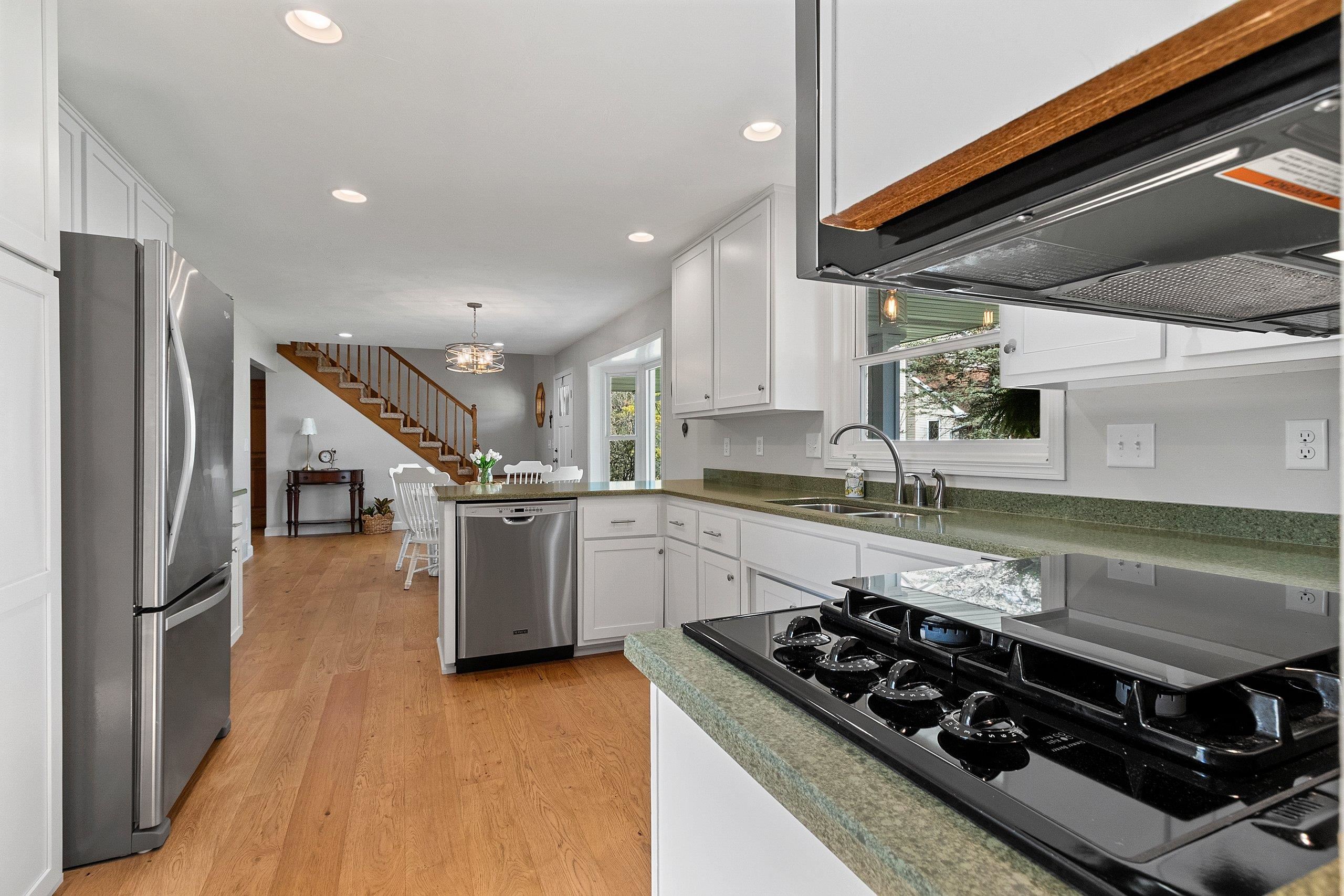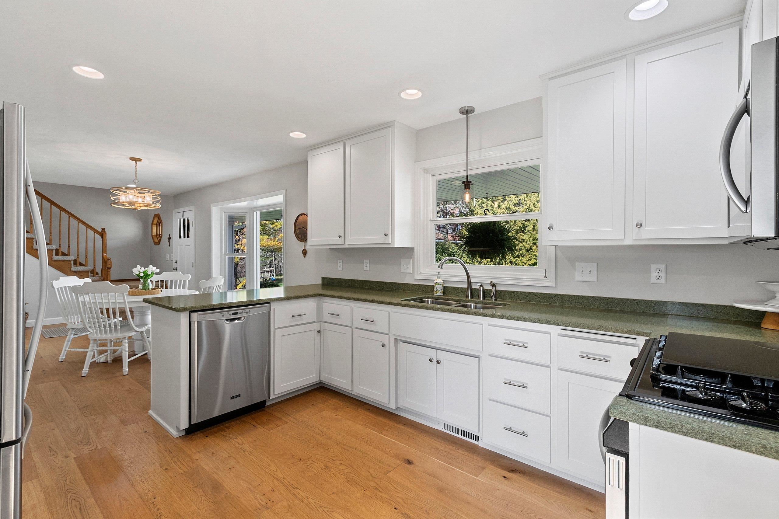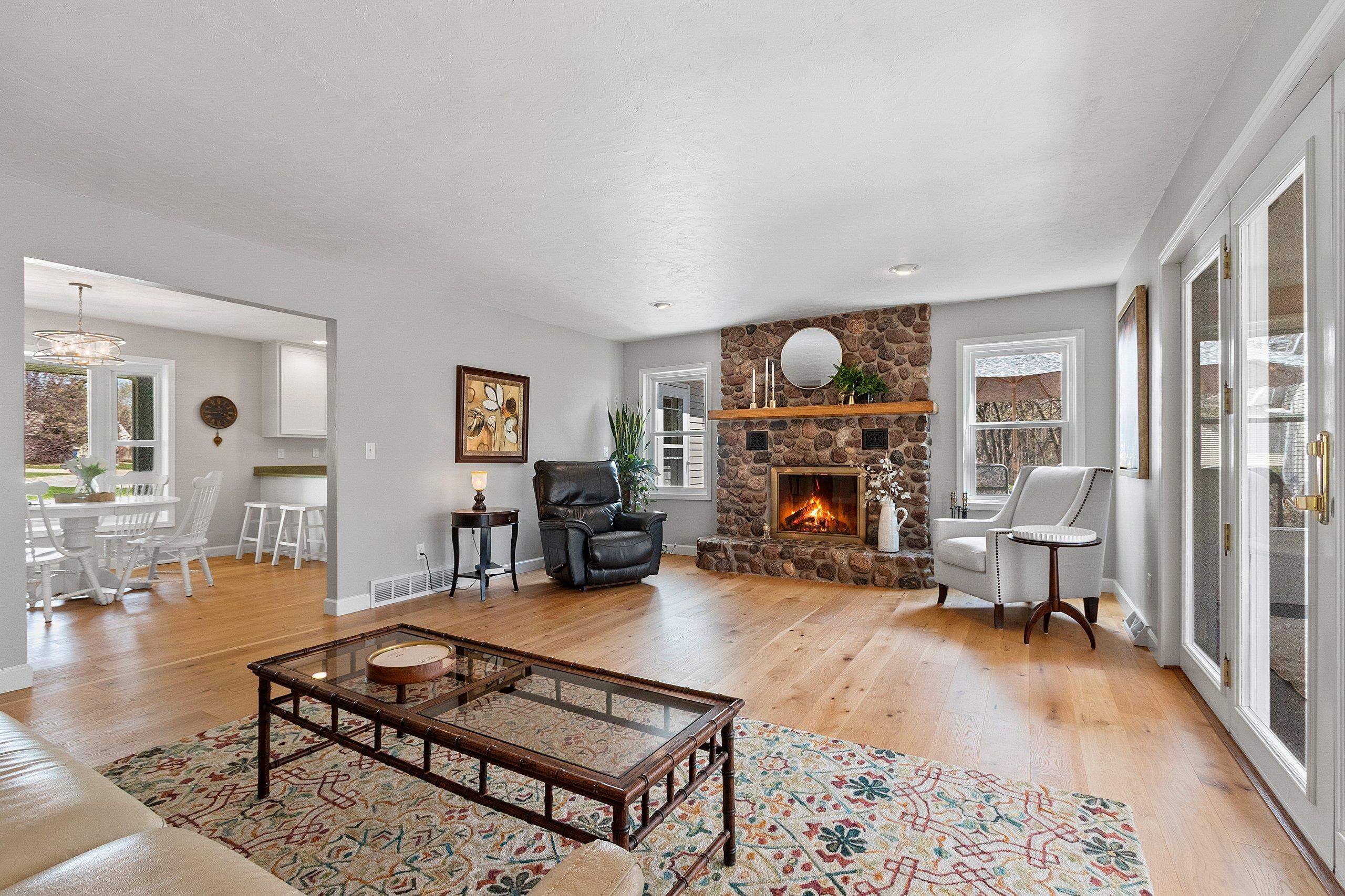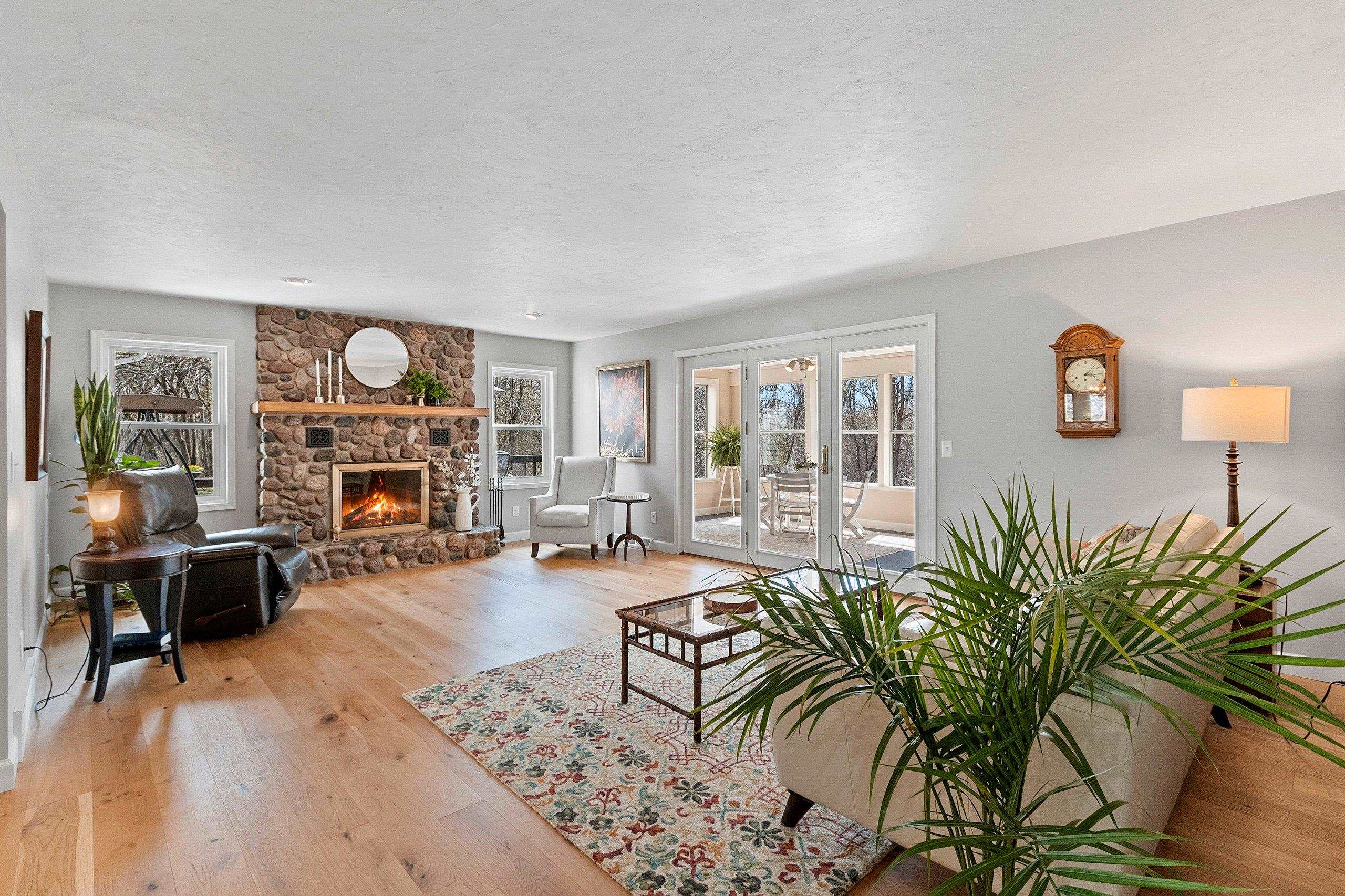 Beautiful Custom 1.5 Story home with over 3,000 Sq. Ft. on a gorgeous and private hard to find wooded 1.63 Acre lot. Features include spacious kitchen/Dinette with new wood flooring, quartz tops and SS Appliances included. Living Room with stone fireplace and new wood floors opens up to a huge sunroom to take in all the nature and beauty of the wooded backyard. The large primary bedroom is on the first floor and includes 2 walk in closets, new wood flooring, and patio doors to your private deck for coffee in the morning. The updated primary bath includes a soaking tub and walk in tile shower with new tile flooring. The upstairs includes a full bathroom w walk in shower and 2 large bedrooms both with walk in closets. The lower level walkout includes a finished Rec Room and full bathroom.