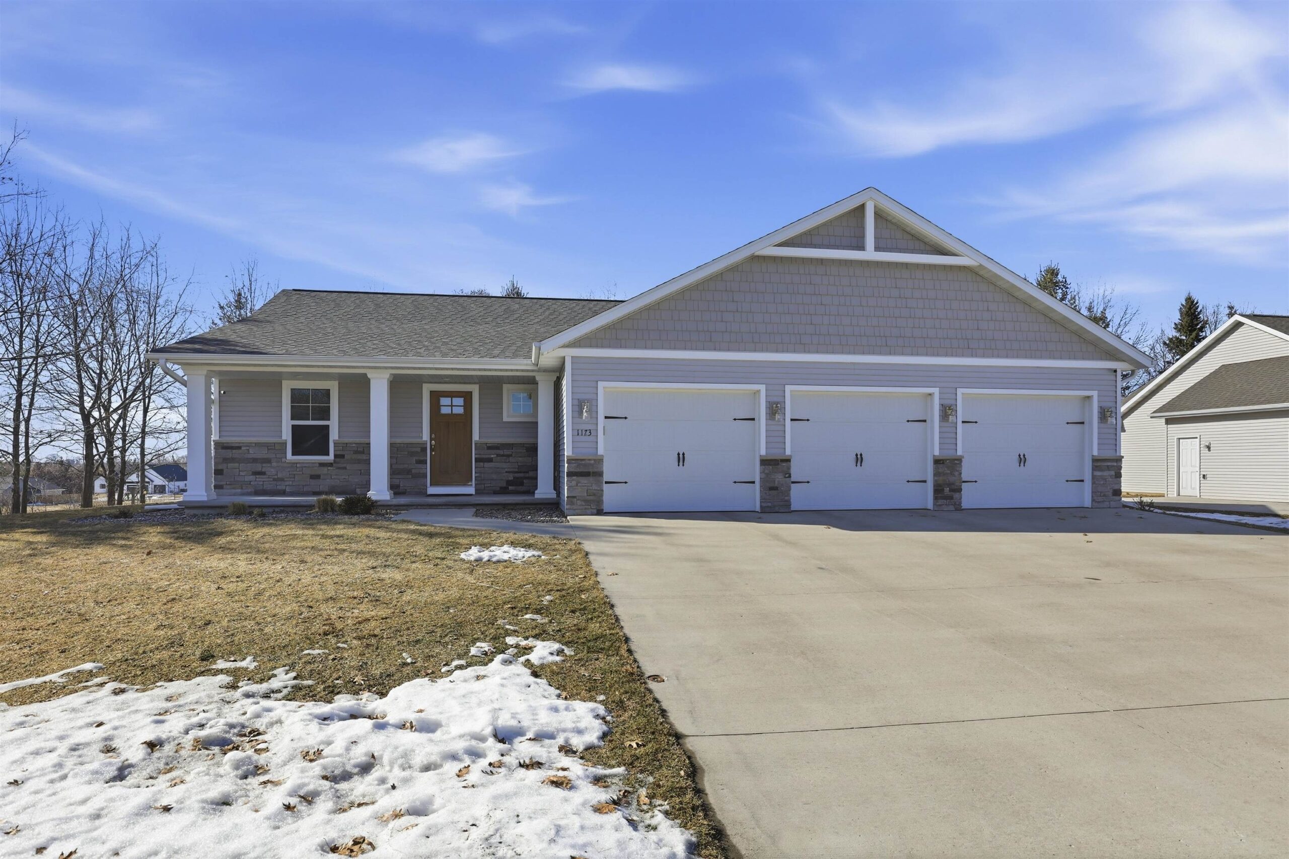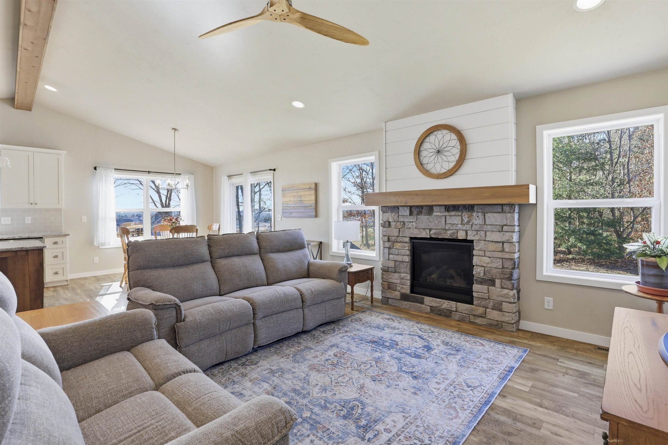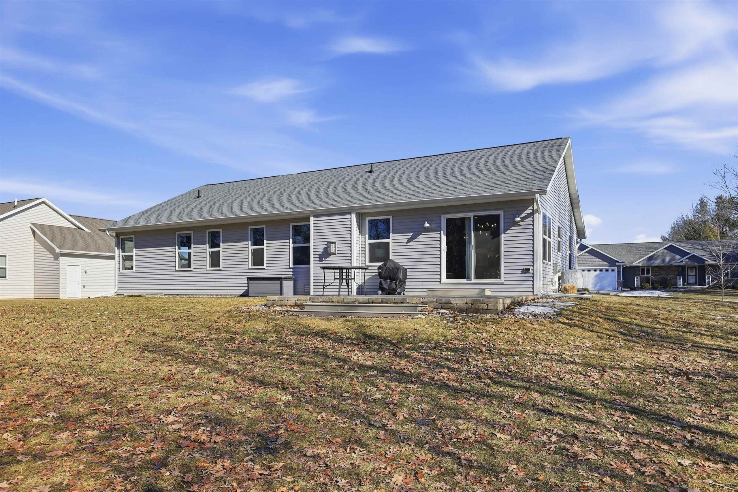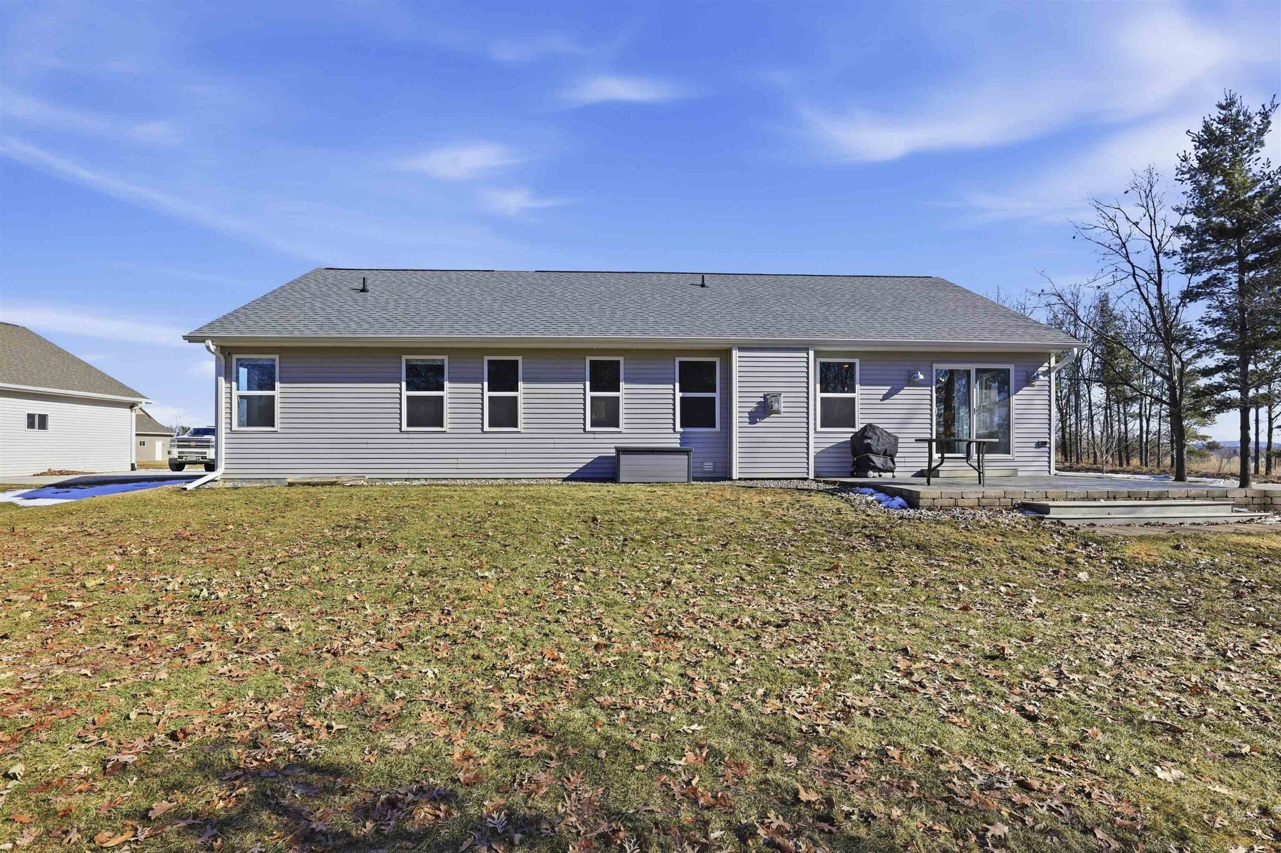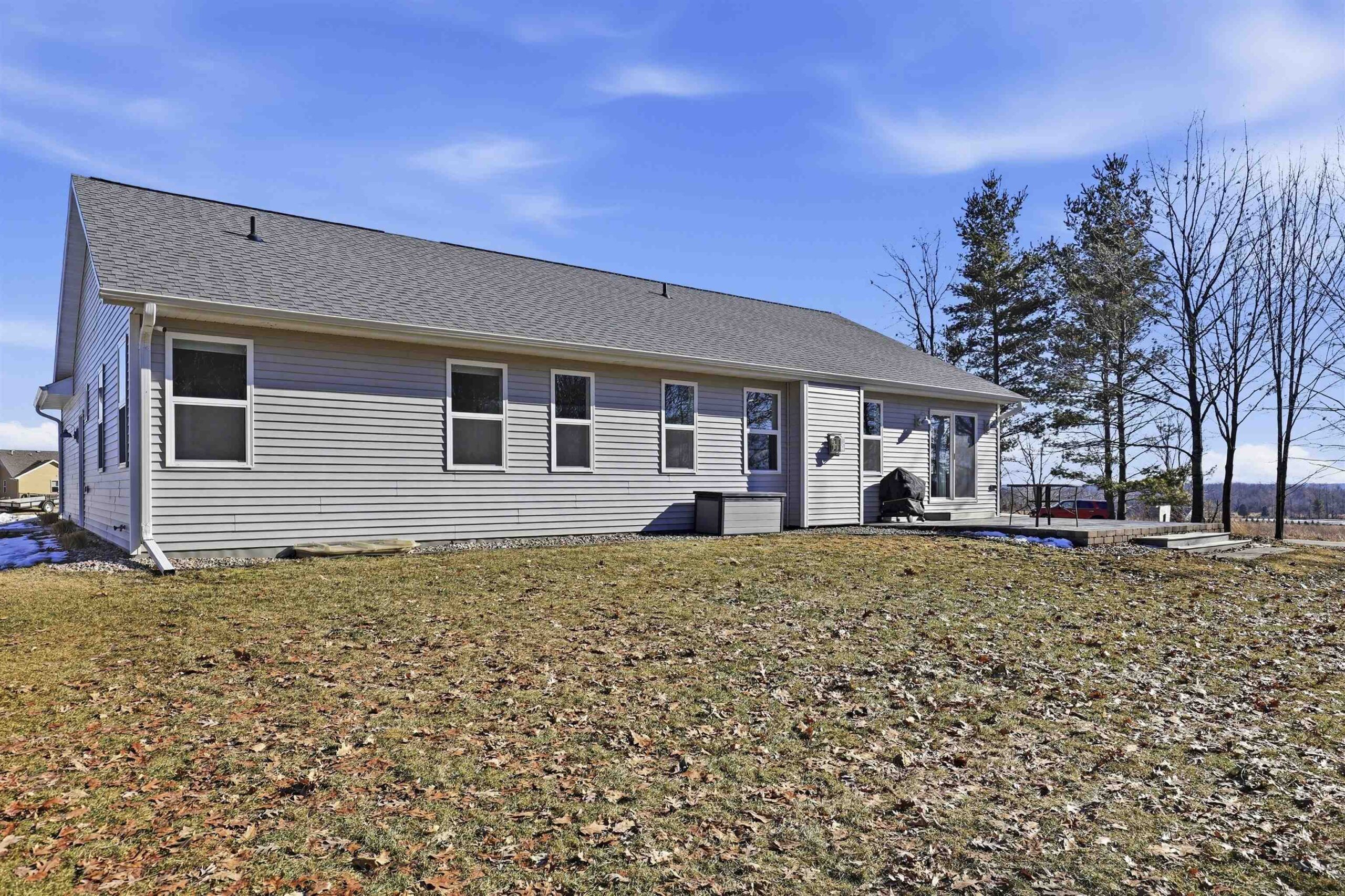 Well-designed Ranch-style home featuring cathedral ceilings and an open-concept layout filled with natural light, making everyday living and entertaining easy. The primary suite includes ample space, a walk-in shower and dual vanity. The lower level offers an egress window and is stubbed for a future bathroom, providing additional finishing potential. Enjoy a spacious yard and open surroundings that create a peaceful, country-style setting while still connected to municipal water and sewer. Seller prefers 48 hour binding acceptance.