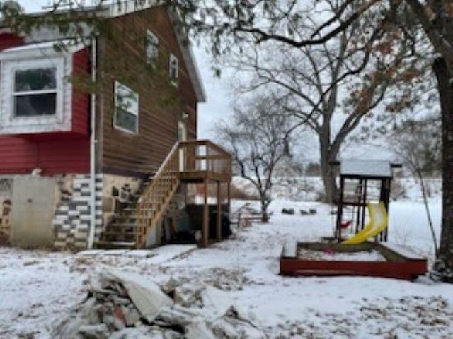 Great home located just North of the Neshkoro Mill Pond! Wonderfully sized lot excellent for all sorts of entertainment. Four bedrooms and two full baths, grand floor to ceiling wood fireplace, formal dining room, spacious bedrooms upper level bath so you don't have to navigate the stairs in the middle of the night! Wood accented kitchen and ceilings, rustic designed lower level. Deck, detached 3 plus car garage, corner property, forced air furnace, natural gas and metal roof. Home is winterized and no electric. Bring Flashlight! Must see! Ceiling unfinished in dining room. Home is listed as "as is" and "where is" and "with all faults" basis.