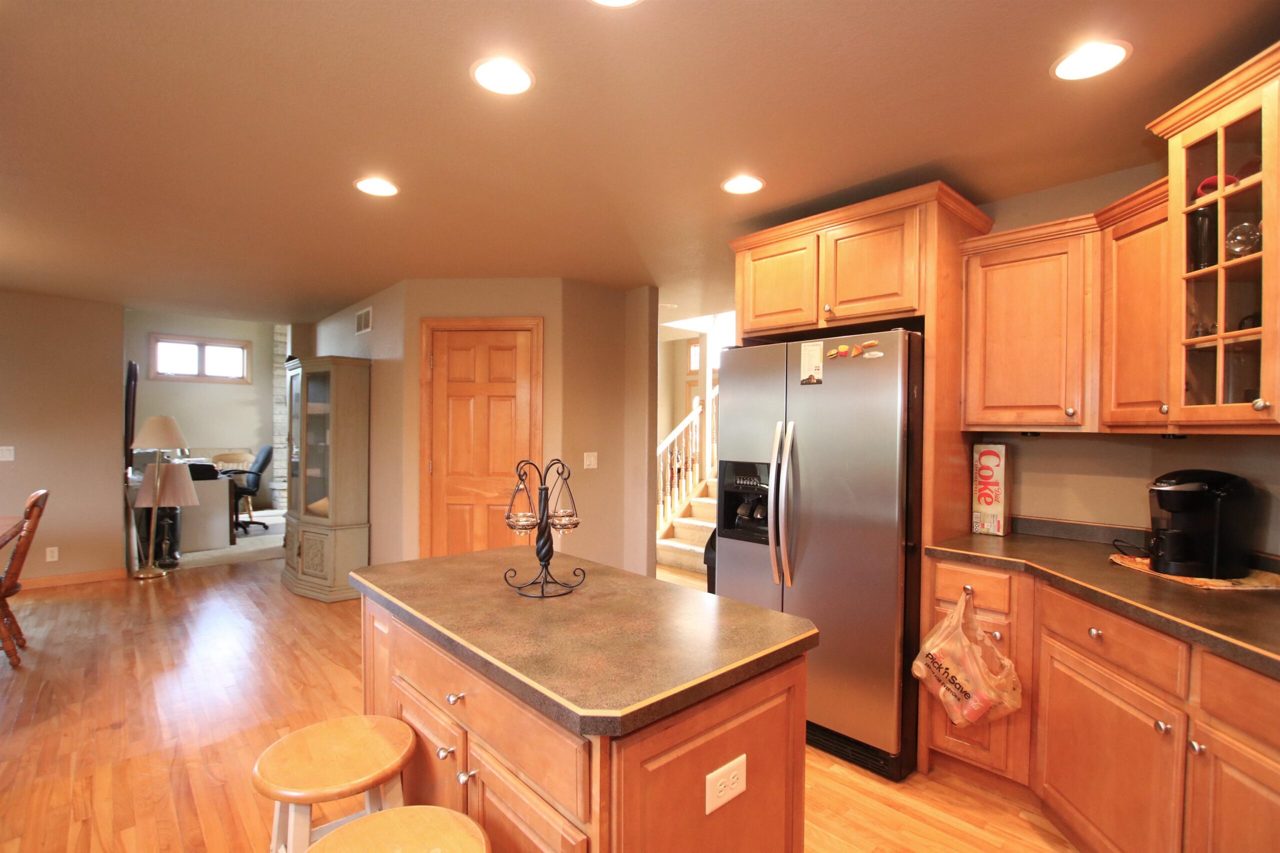 This home brings the views of country living right into the south end of the city. It features a main level master bedroom with on suite, main level laundry and an attached 3.5 car garage. A detached shed is also on the property. The open concept kitchen offers great views of the backyard and flows nicely into a living room with a floor to ceiling fireplace. The basement has an unfinished room with storage shelves, a half bath, stubbed for full bath. Half finished areas in the basement offer potential for even more areas to expand to. Bring your ideas to this home and make it your own!