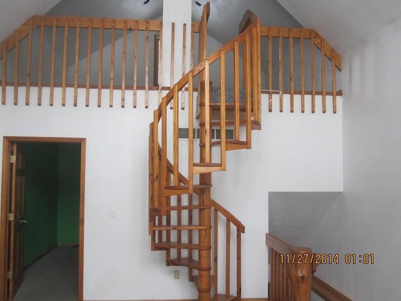 3 bedroom 1 bath home on large corner lot. Home features cedar siding, newer furnace, roof and kitchen. Living room has large windows to the West and a spriral staircase to the loft. Large detached garage has 2 - 10' overhead doors and an extra storage room.