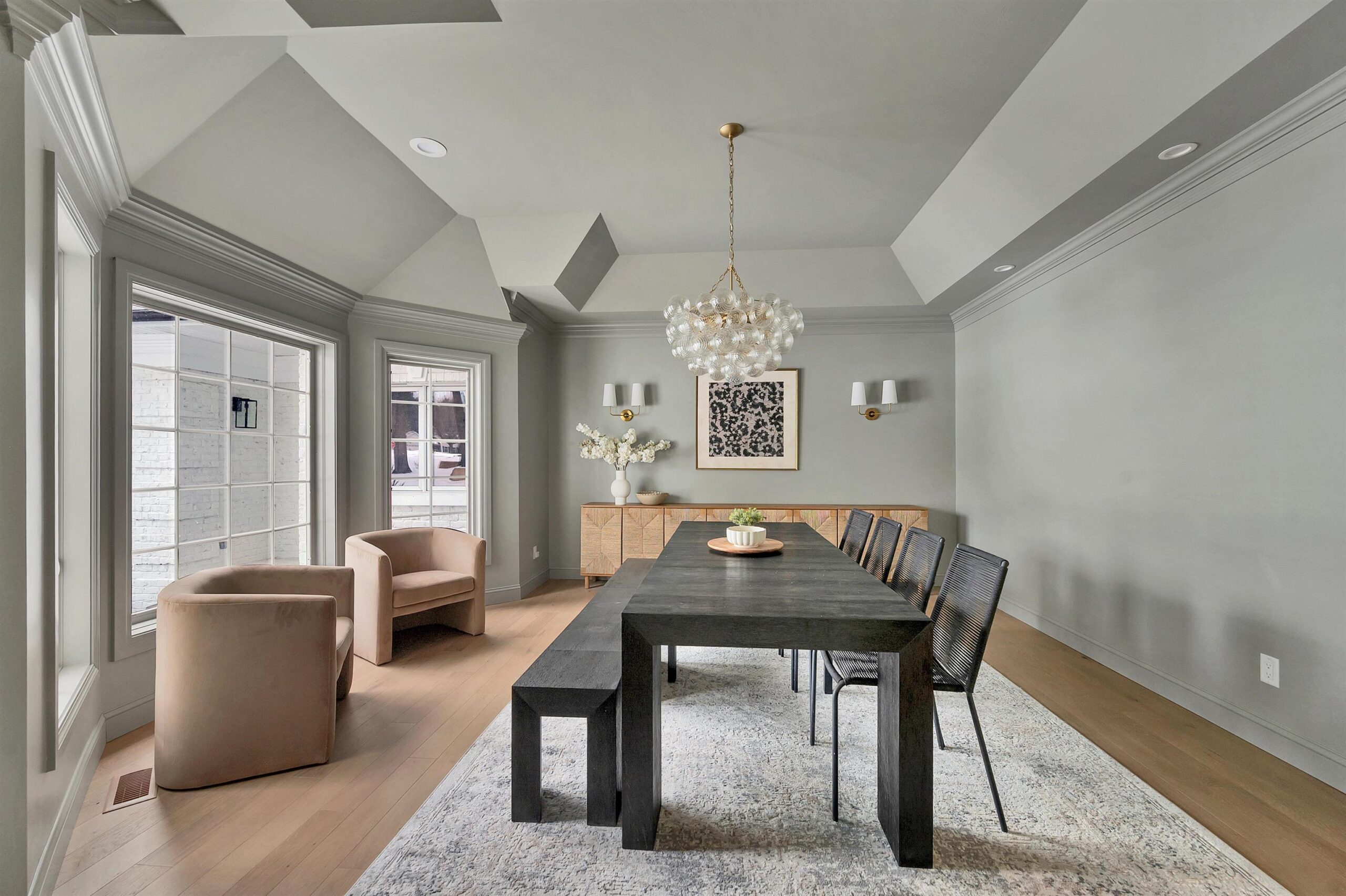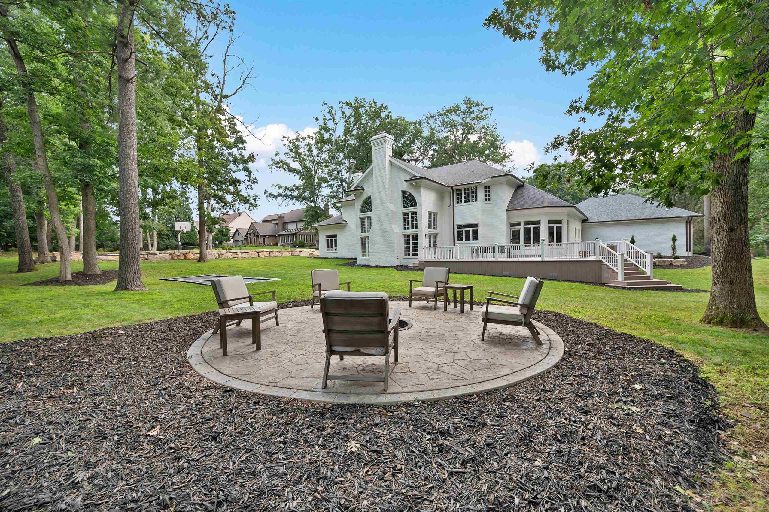 Stunning home with extensive updates that shows better than new, backing up to Oneida Country Club. The beautifully landscaped, private backyard features a spacious deck, sports court, and outdoor fire pit. Inside, the home offers luxury and comfort throughout. The primary suite includes a cozy fireplace, a large walk-in closet, private office space, and a beautifully finished en-suite bathroom. The upper level features four spacious bedrooms and two full bathrooms with high-end finishes. The lower level offers a large rec room with a wet bar, bonus room, and full bathroom, ideal for entertaining. The main level includes two half bathrooms, an additional office, a formal dining area, and large windows that provide abundant natural light.