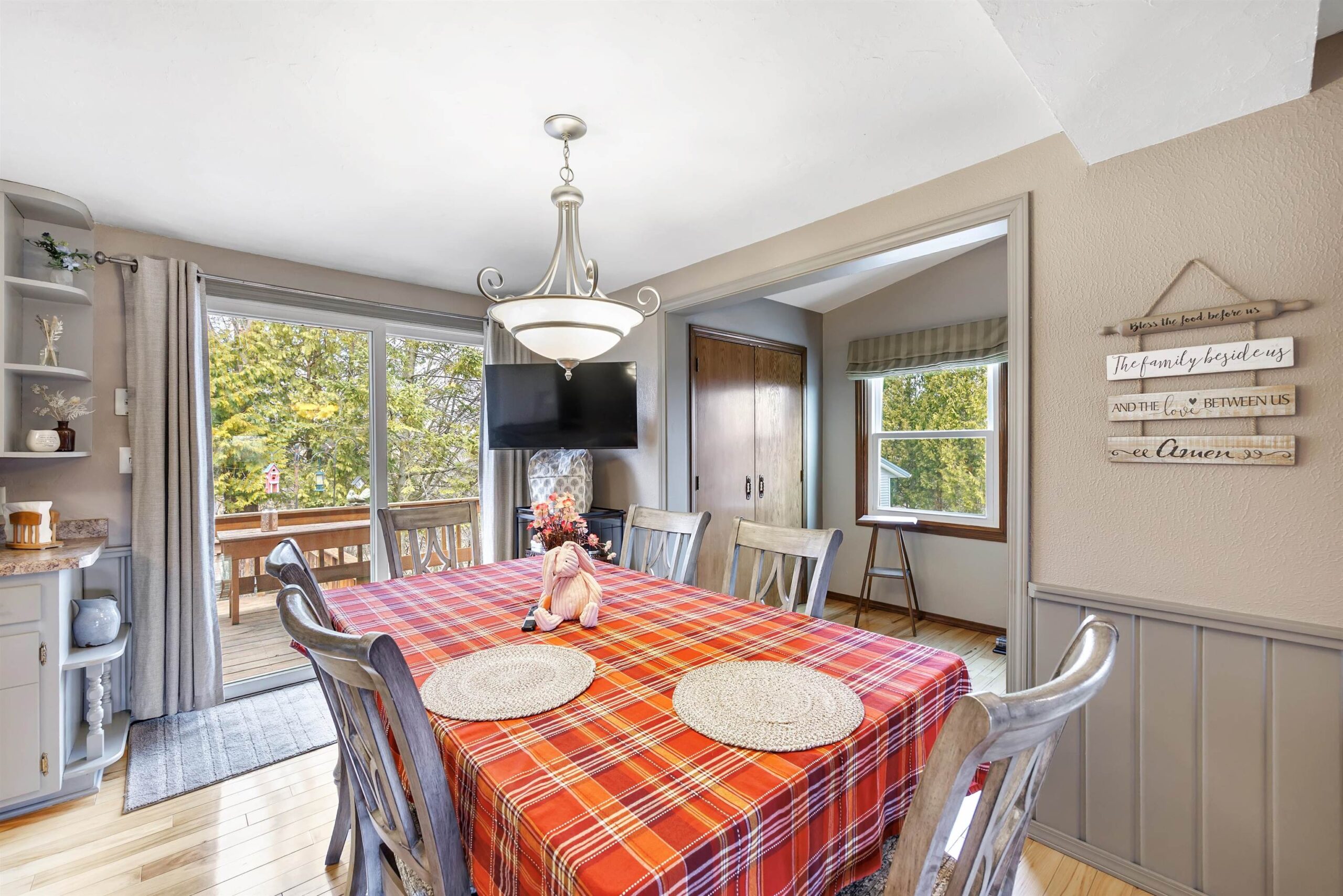 Microwave, Freezer, Dining room TV & bracket.