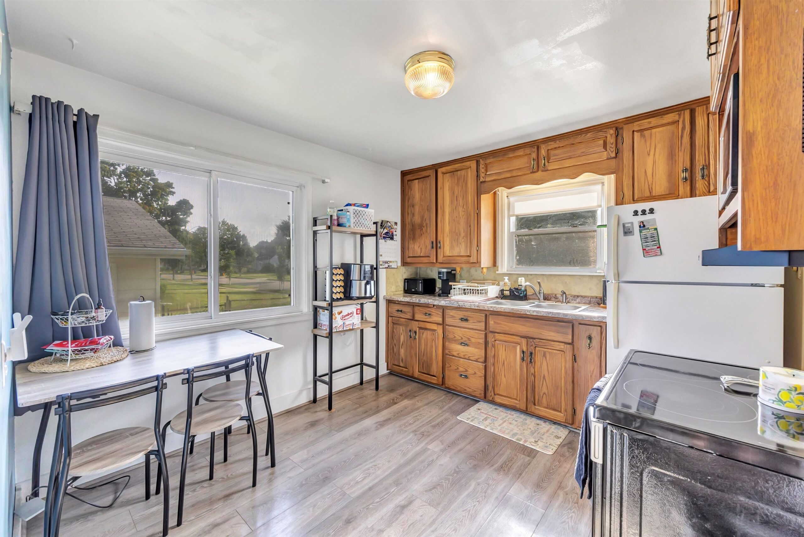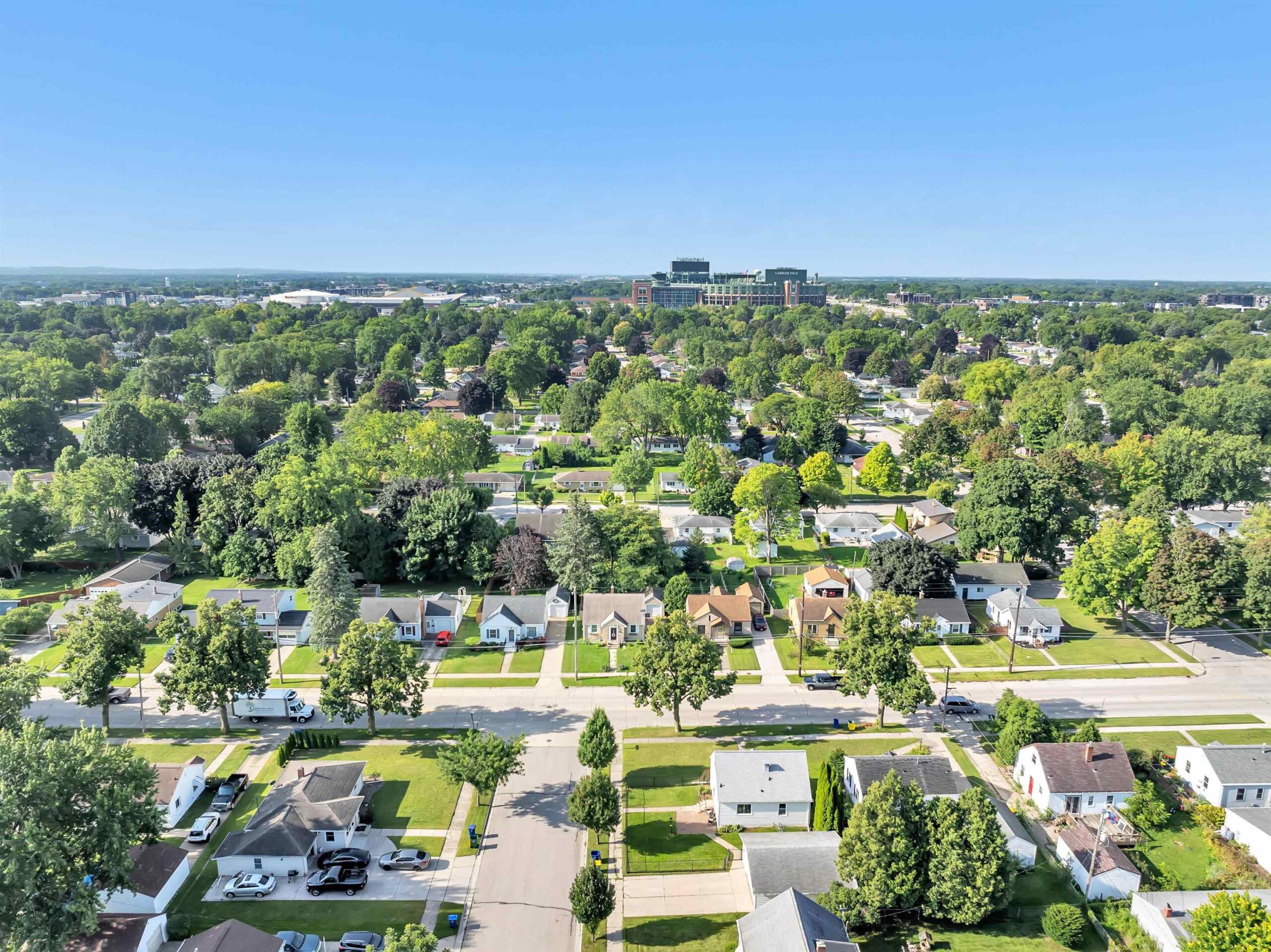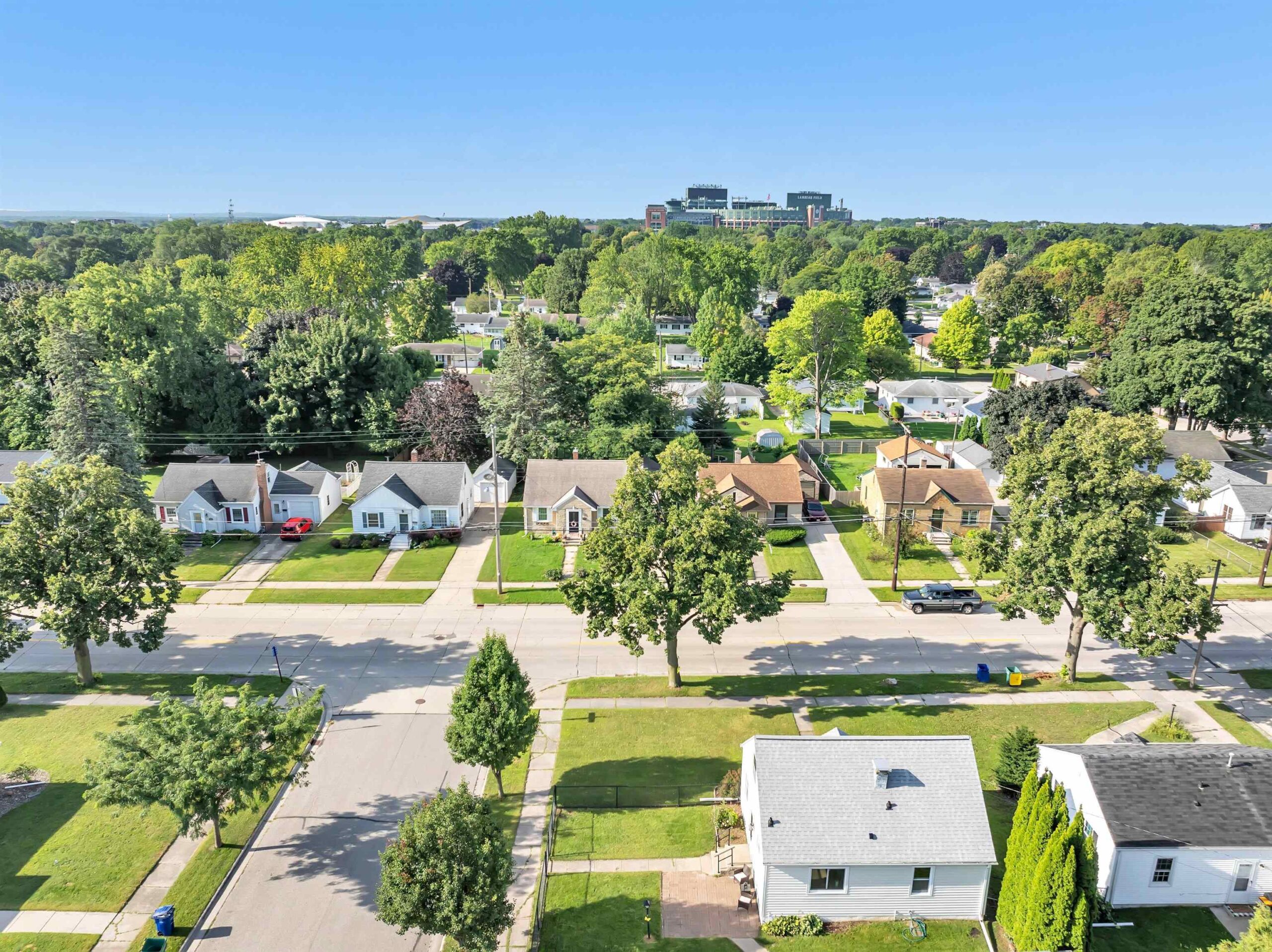 Charming 3 bedroom, 2 bathroom 1.5-story home just minutes from Lambeau Field and the Titletown District. Step inside to a spacious living room with oversized windows that fill the space with natural light. The eat-in kitchen offers plenty of room for everyday meals, while the upstairs landing adds flexibility as a home office or cozy reading nook. Outside, enjoy a fenced yard for outdoor activities, a 2.5-stall garage, and an extended driveway with space for extra parking. Some photos virtually staged. Move-in ready and waiting for new owners — schedule your showing today!