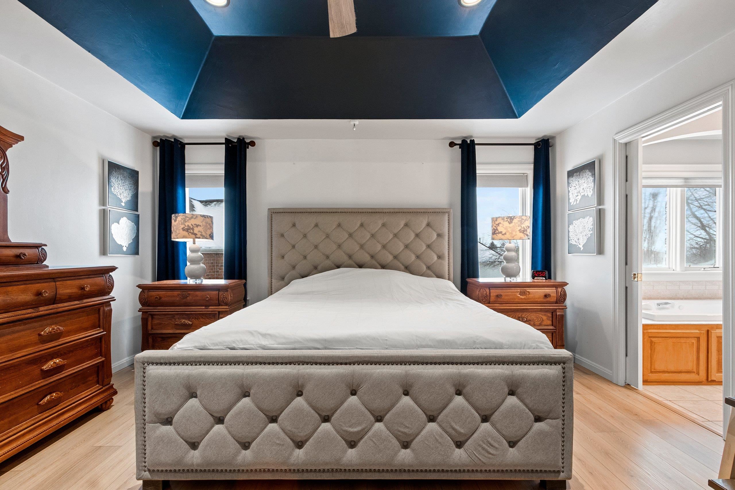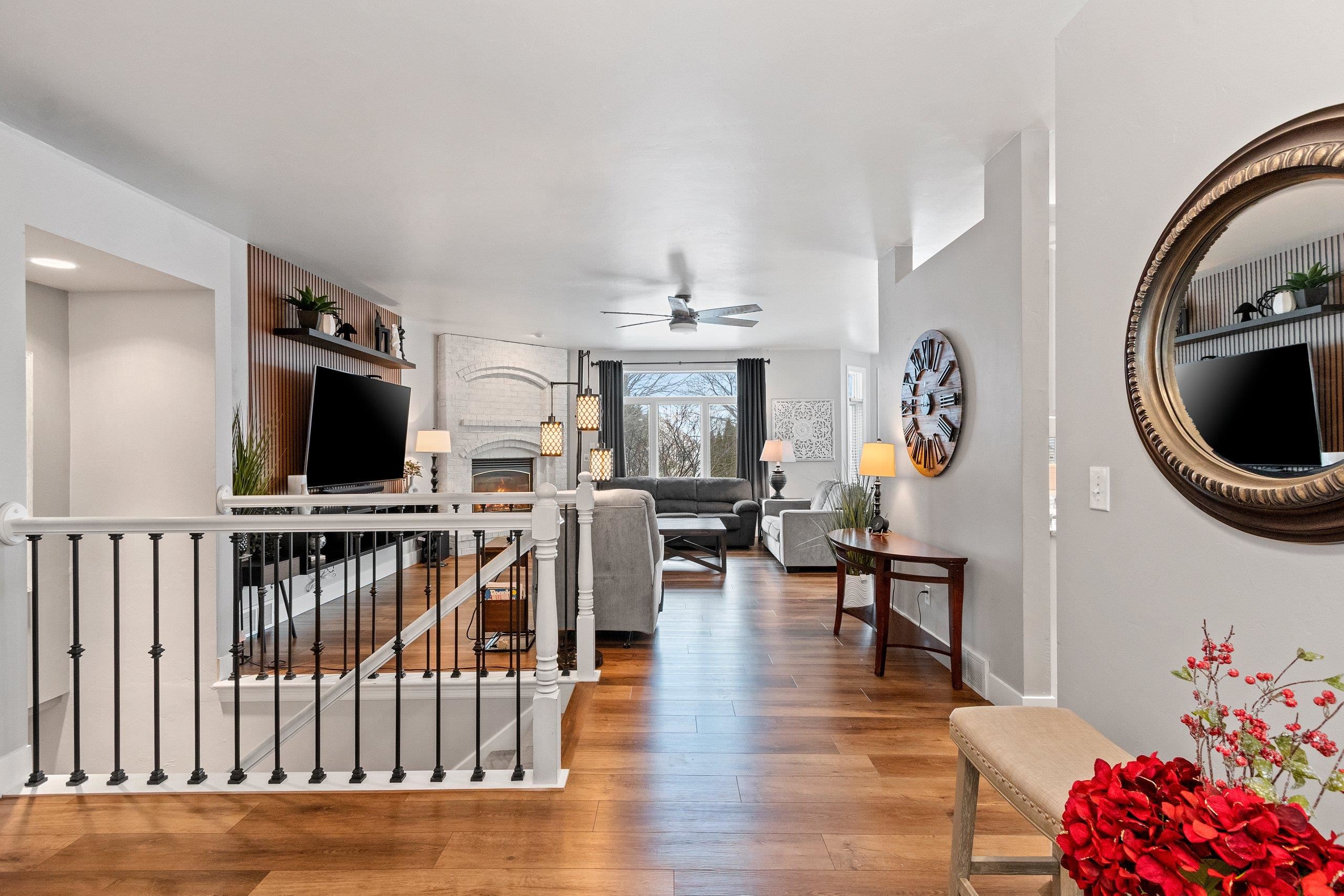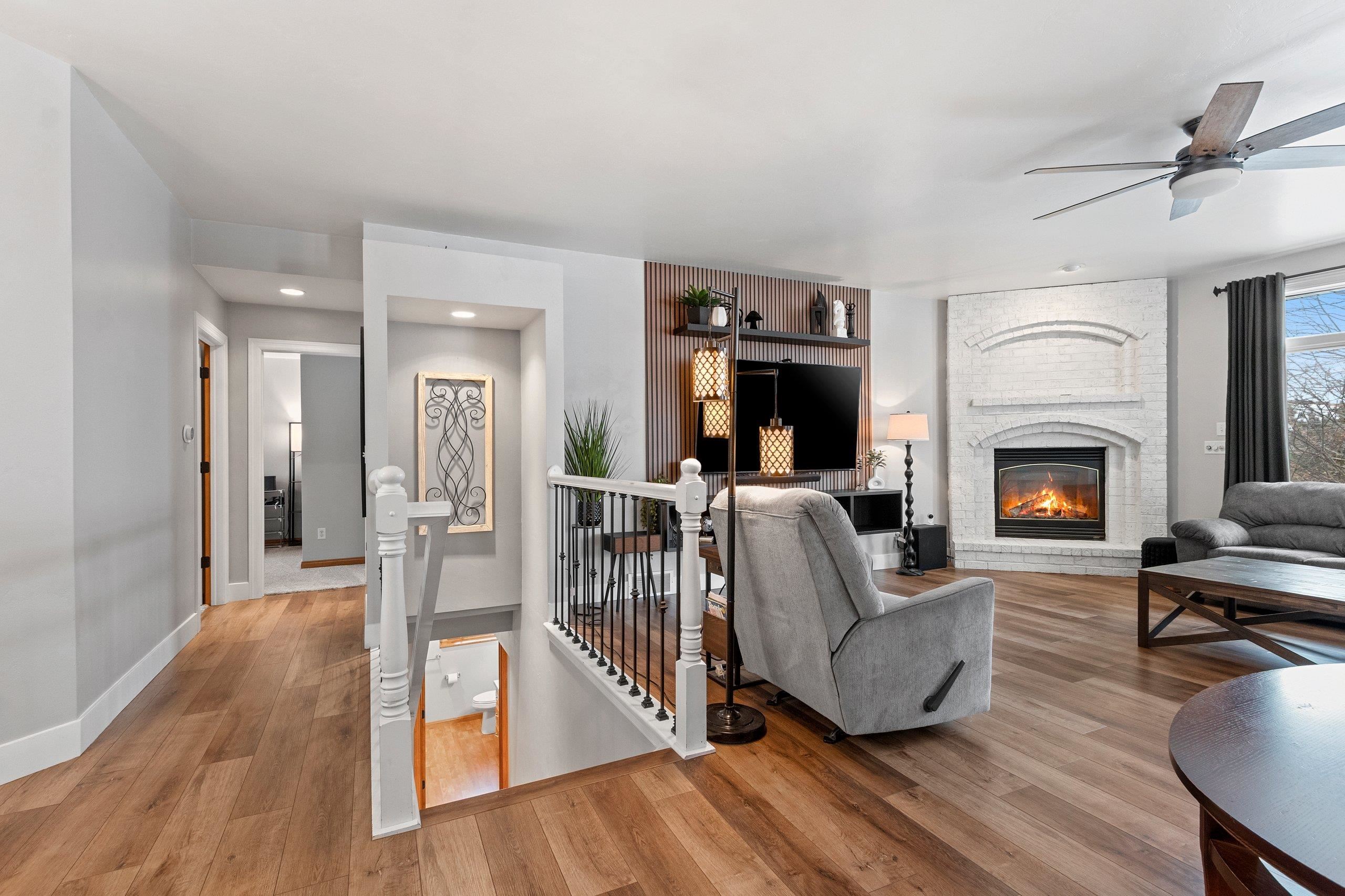 You will fall in love with this beautiful custom-built four-bedroom home with two fireplaces. Walk into the foyer and be impressed by the open-concept living room and kitchen, with fantastic light from the numerous windows/patio door. Updated LVP, lighting, white cabinetry, granite, appliances, paint, carpet, fireplace, etc., will impress you. Pantry, FF laundry, 6-panel doors, base access, egress windows & wet bar in the basement, and 4th bedroom/office leads for one to enjoy the extra space while still having great storage. The Main suite is large with a tray ceiling, a walk-in closet, a shower, and a bath. Large kitchen island and cabinet space. Updated siding, roof, and gutters. Private deck and landscaped yard with a shed. Pride of ownership! Call today for your private showing