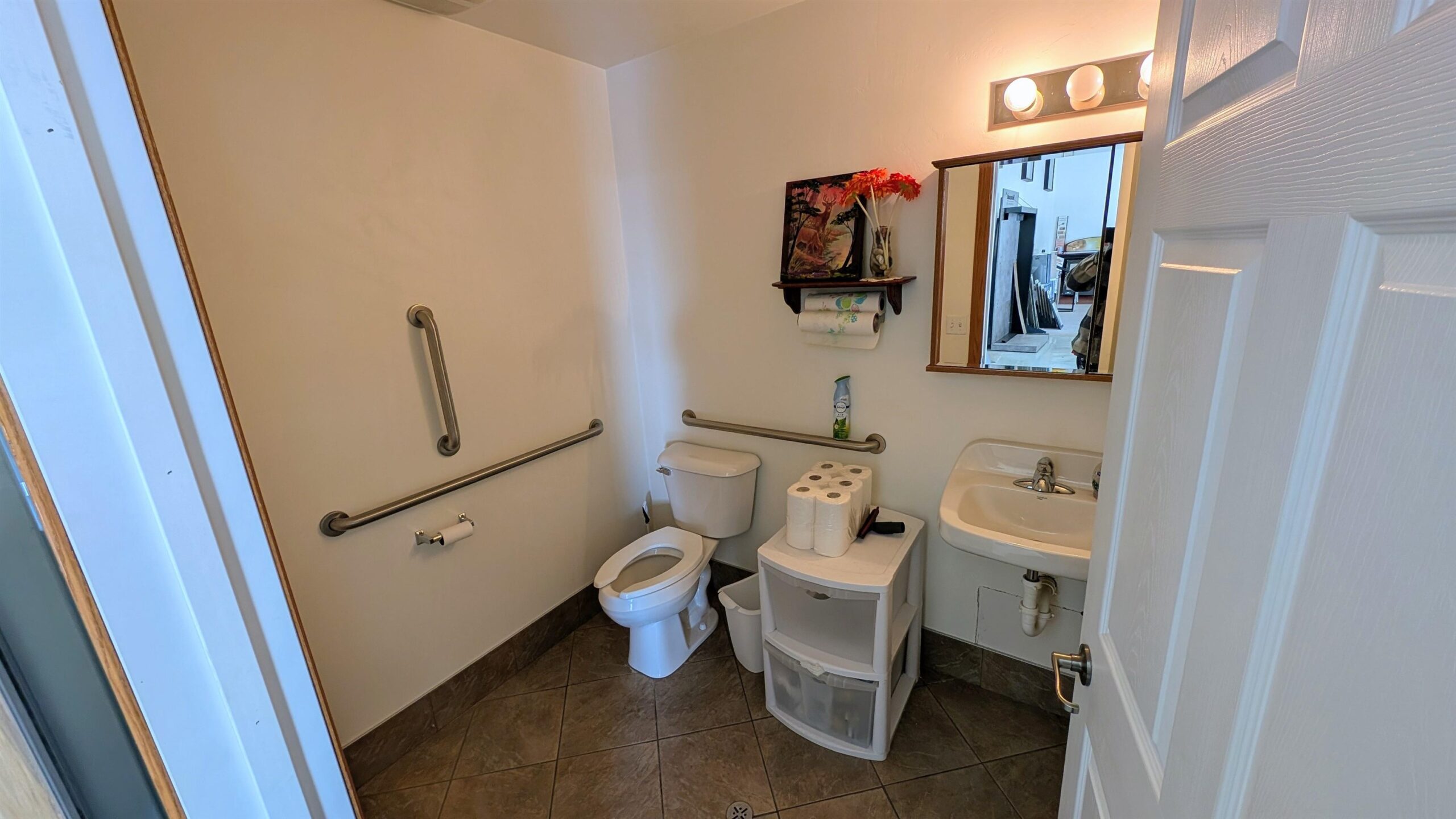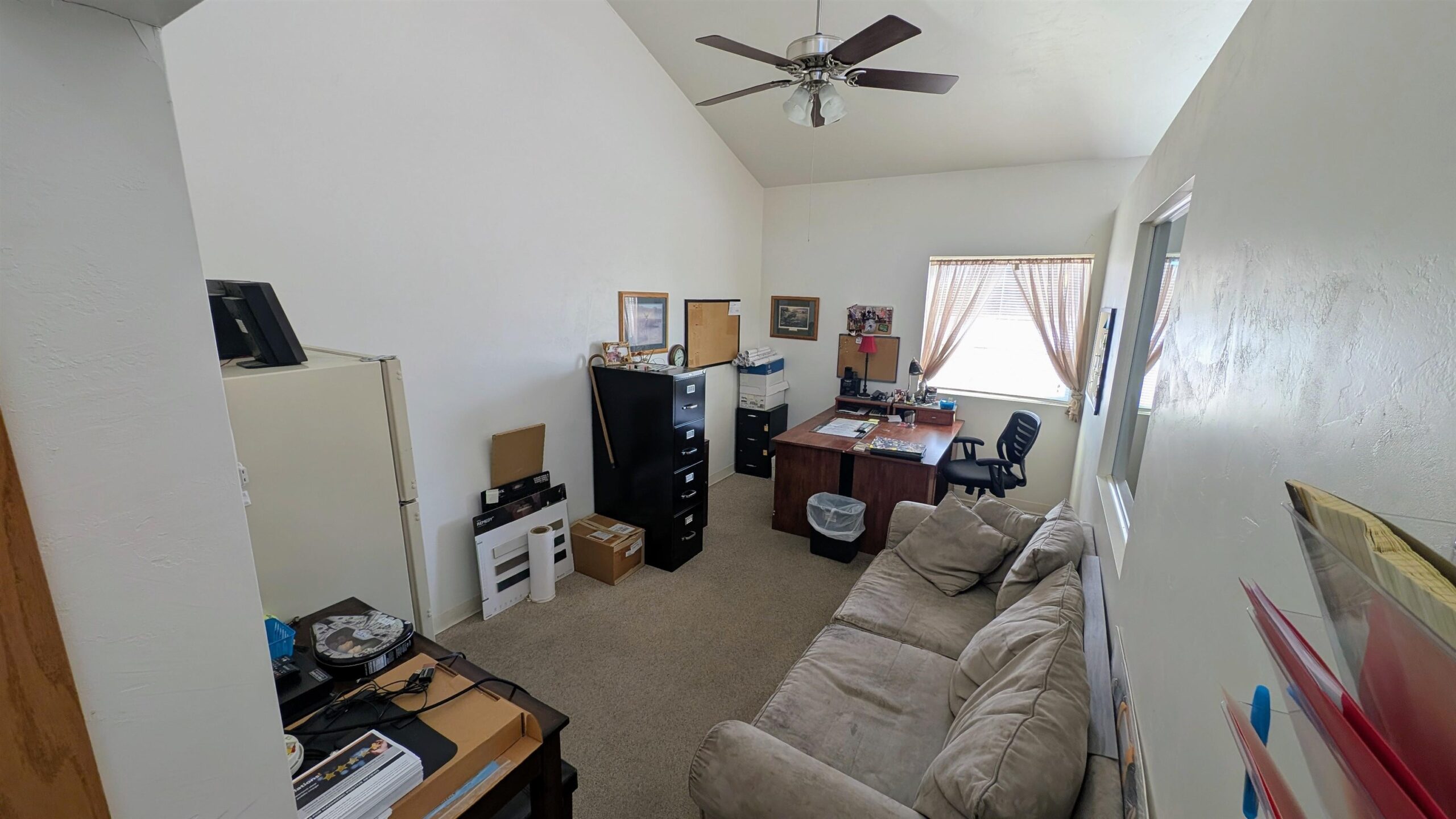 Almost new office building. Large parking lot in back for semi trucks to drop off and pick up. Possibilities are endless.