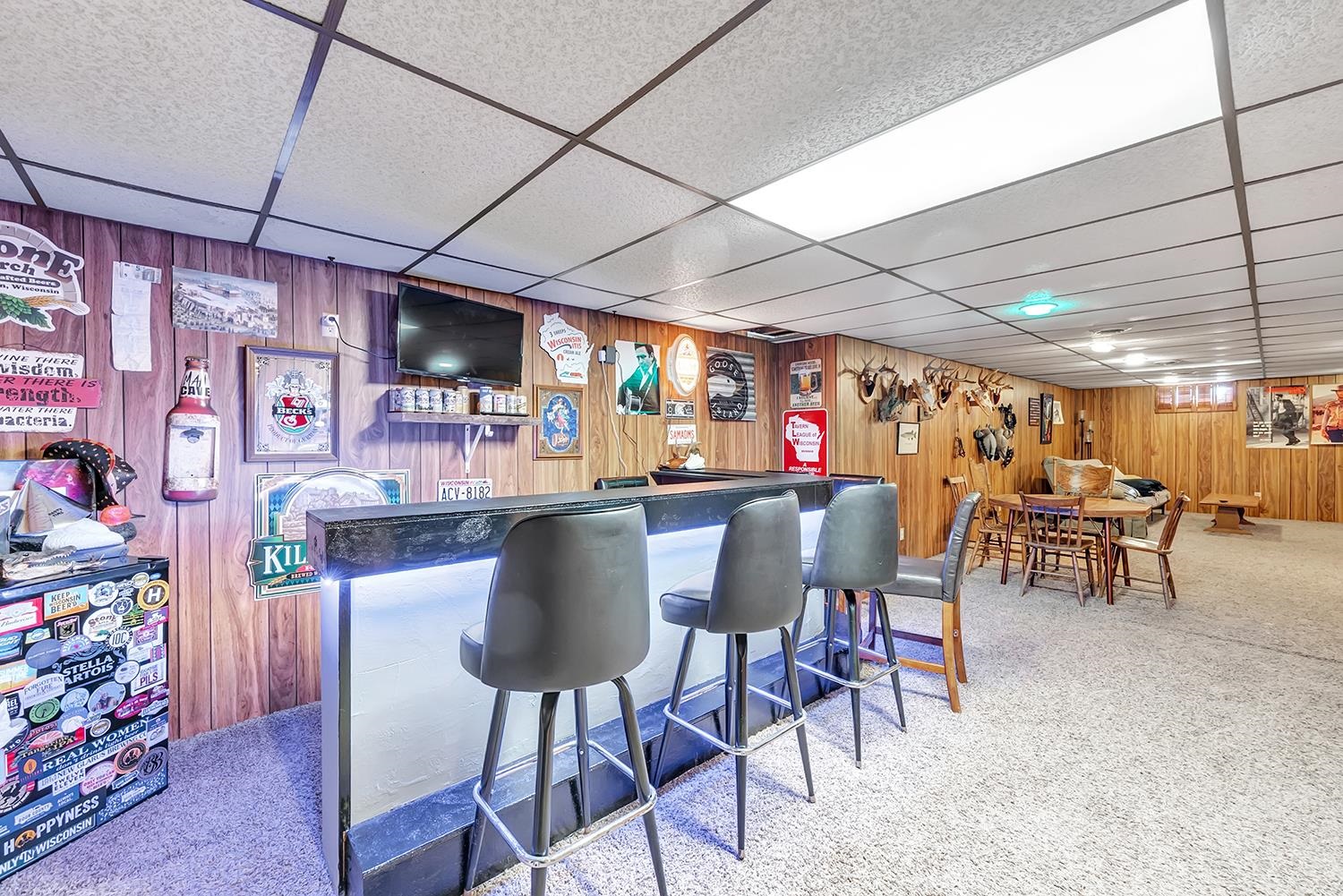 Small Refrigerator by bar and in garage