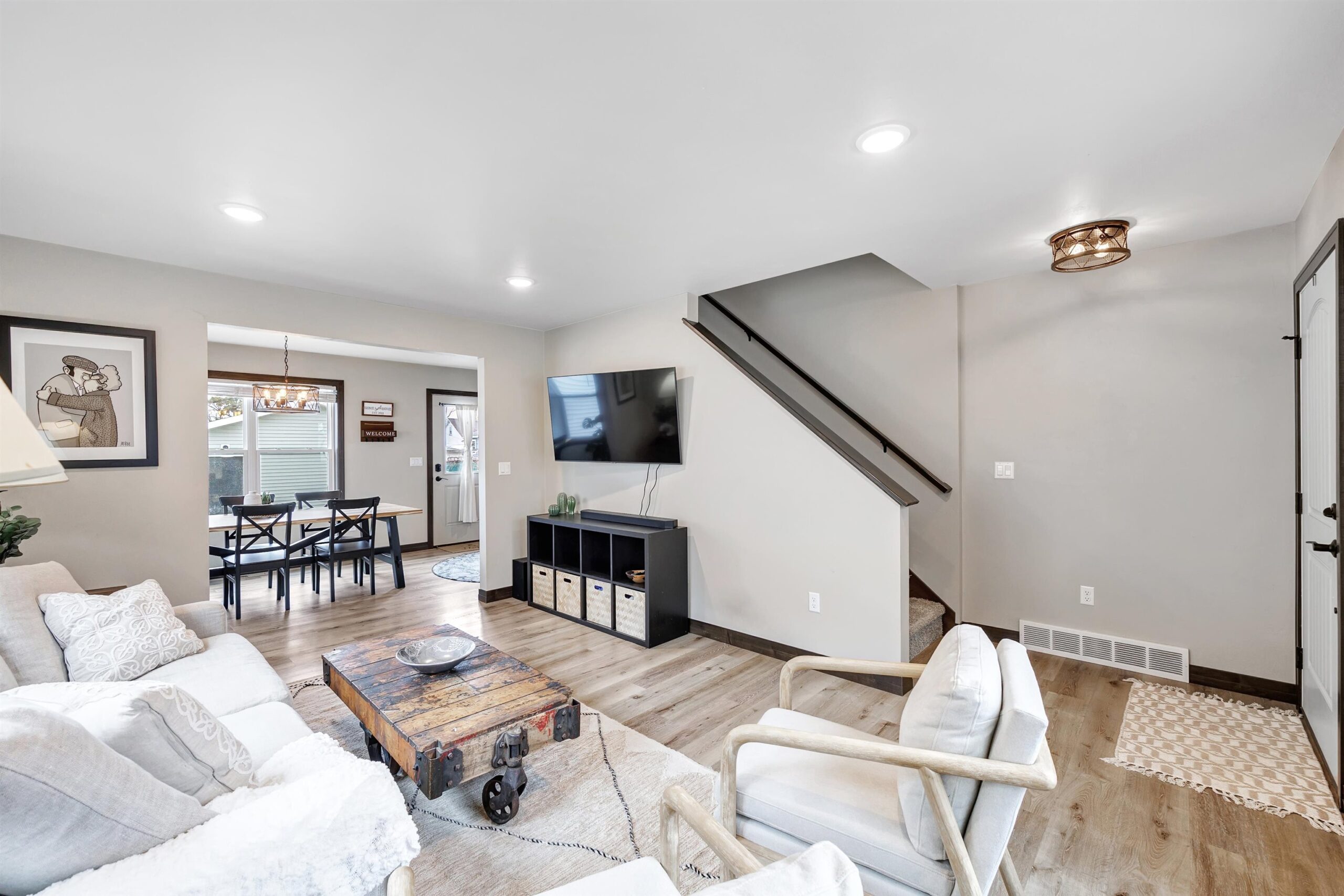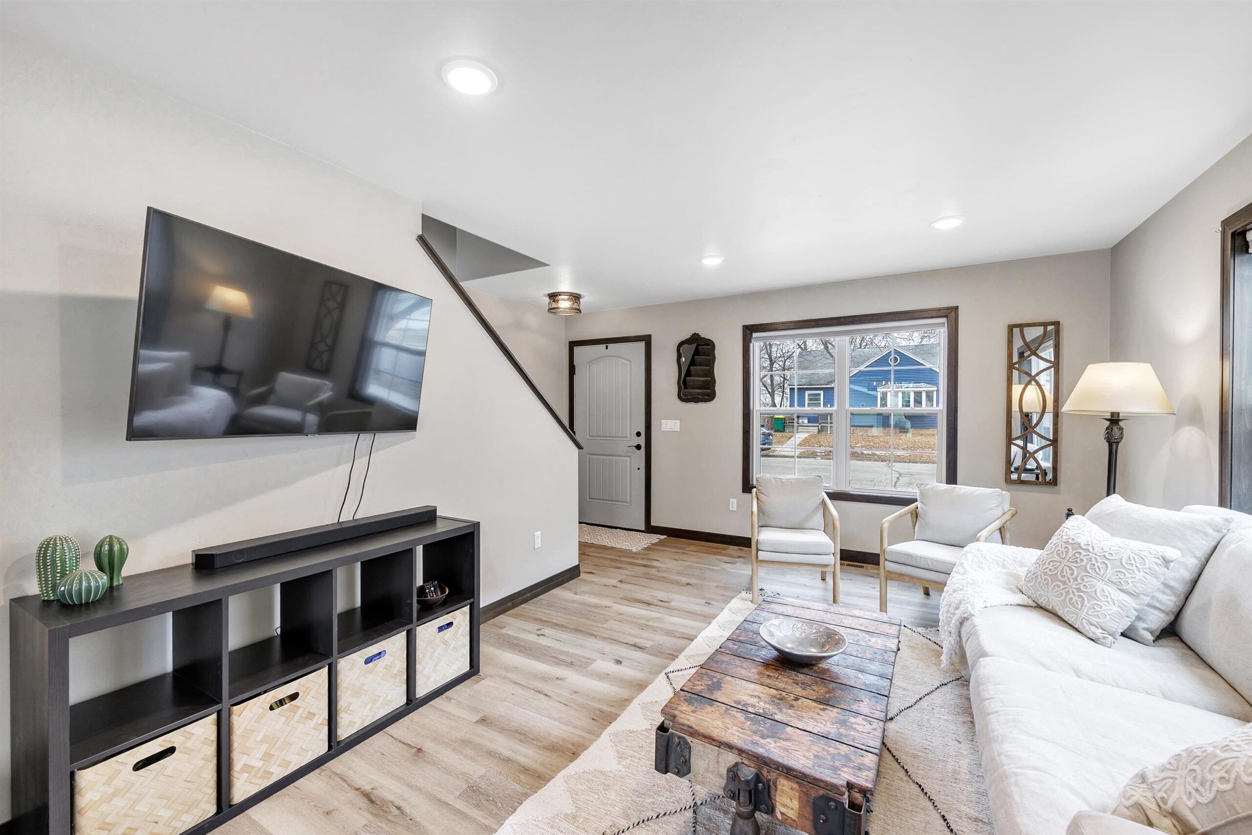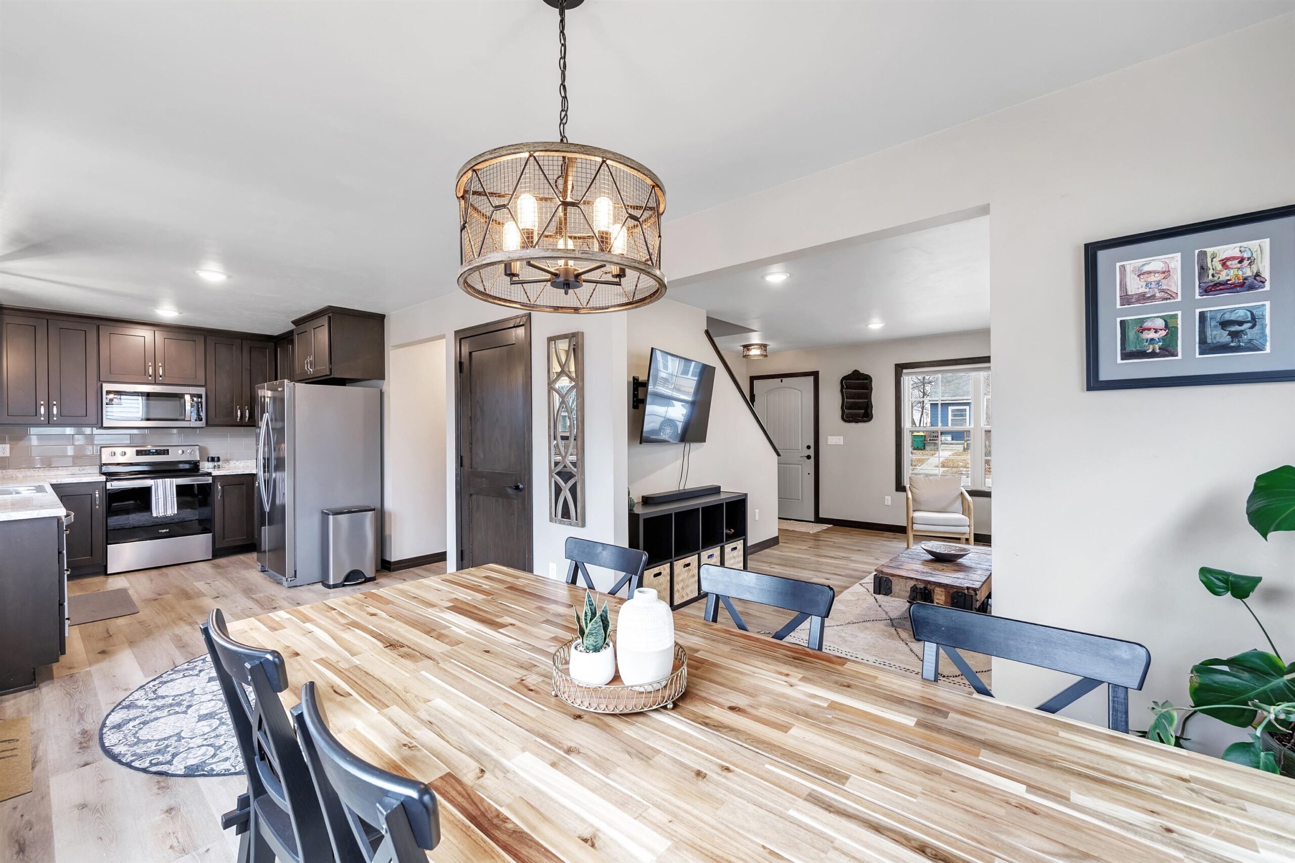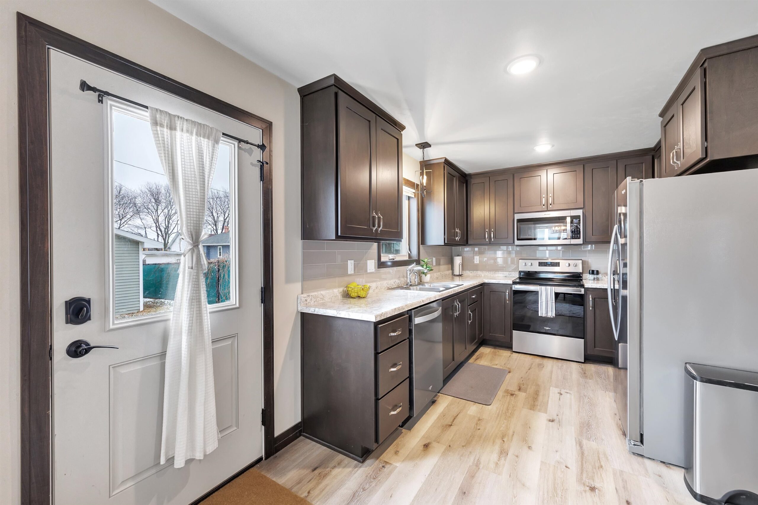 oven/range, refrigerator, microwave, dishwasher, washer, dryer, ring doorbell, tv mount