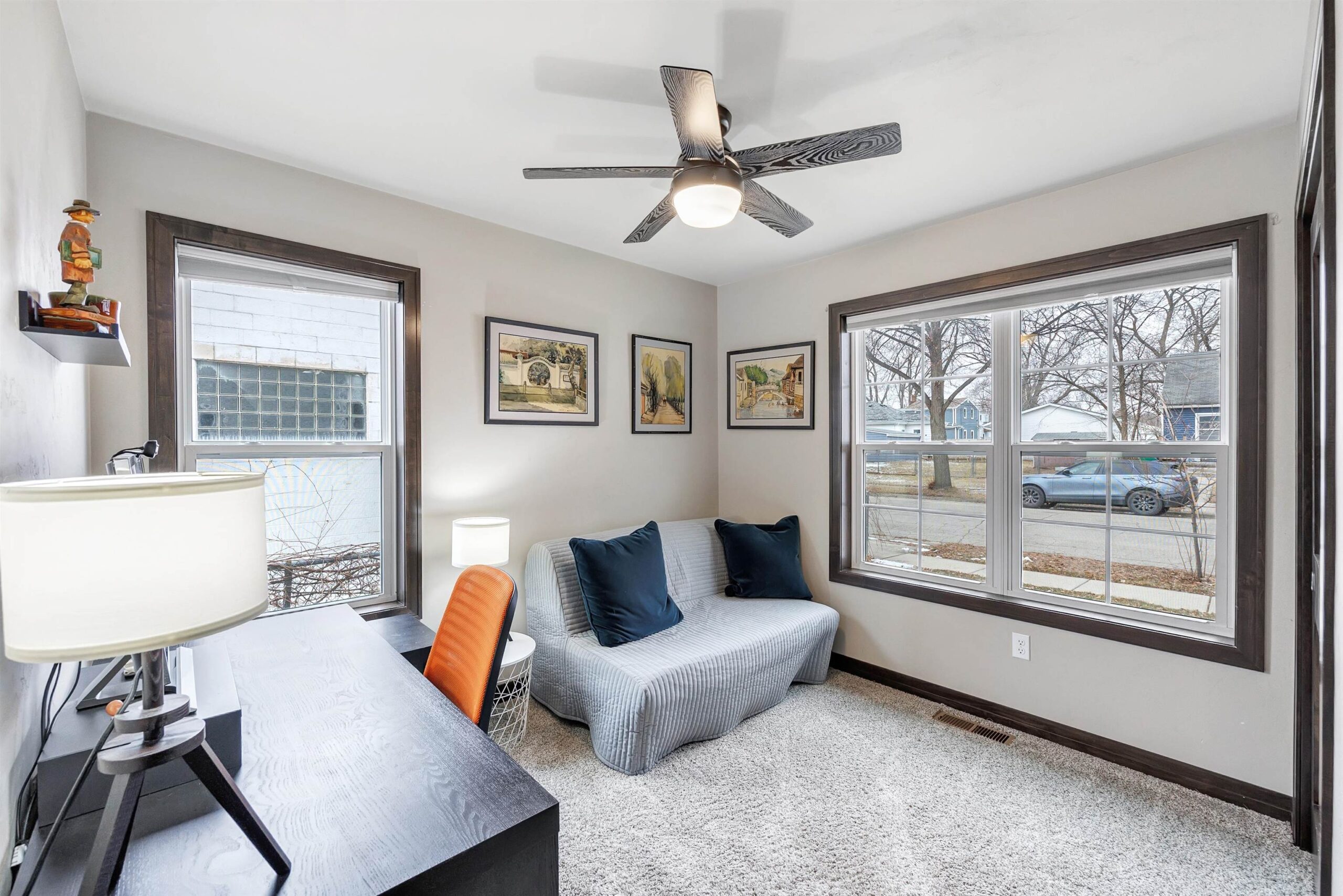 Charming 1.5 story almost new (2020) home in great location just 1.9 miles from Lambeau Field, close to amenities & shopping! First floor features a beautiful kitchen w/ to ceiling dark stained maple cabinets, SS appliances, bright open dining area to LR, full bath + one bedroom. Upstairs you'll find 2 generous bedrooms with w-in closets & 2nd full bath. Newly finished LL adds a bonus rec room w/egress window (potential to use as 4th bedroom) + versatile space for an office or flex space. Still plenty of storage w/unfinished back area in basement that includes washer & dryer to stay. Entertain outside with the fully fenced yard & detached 2 stall garage. This is the perfect move in ready home that's sure to please! Offers to be reviewed Sunday evening 3/1. Don't wait! Showings begin 2/26