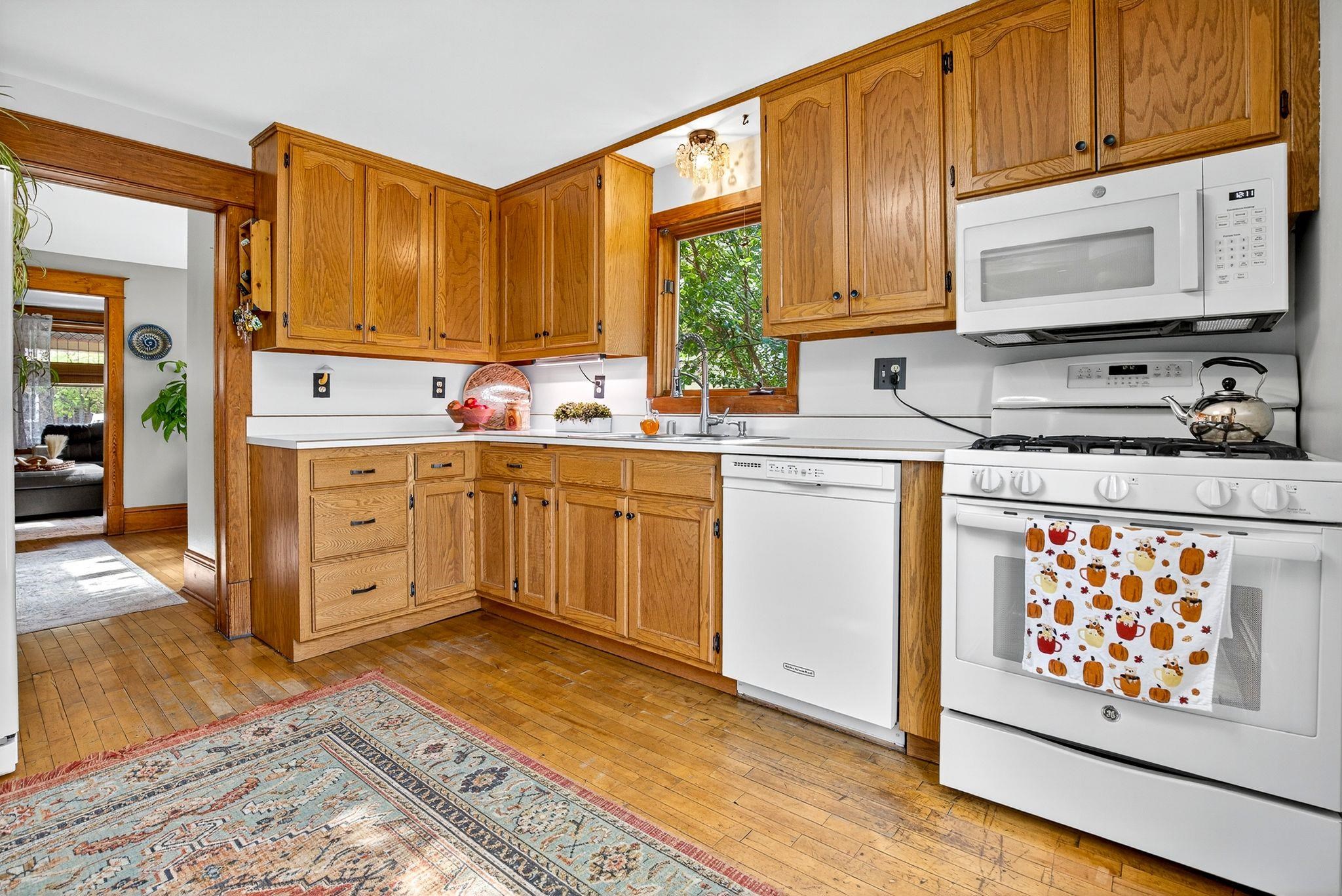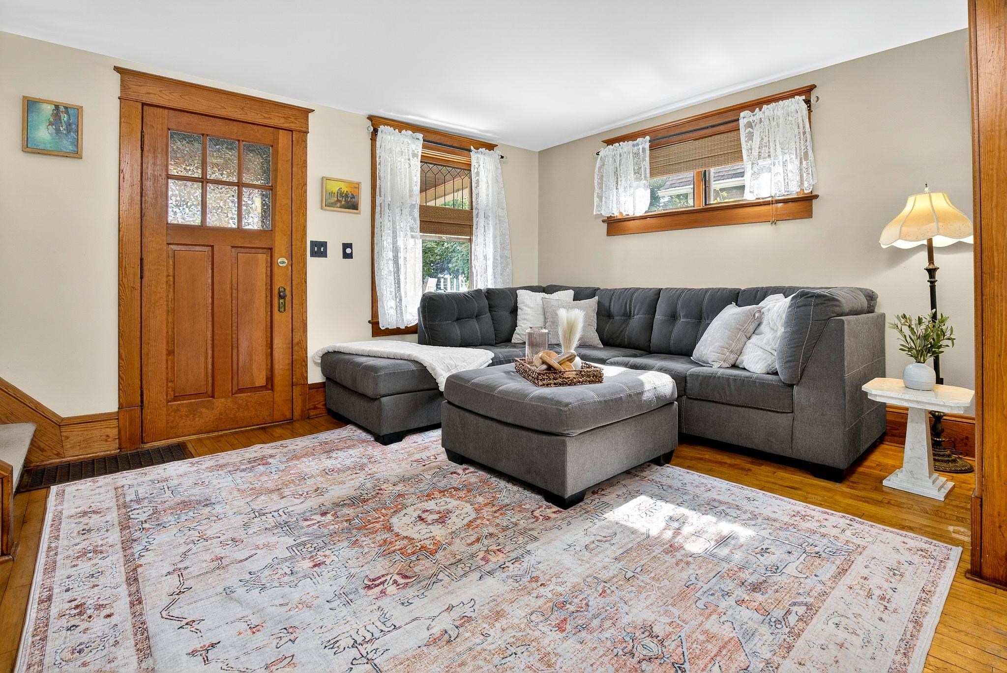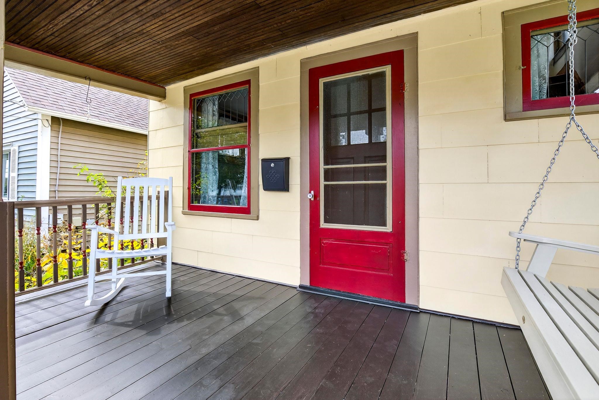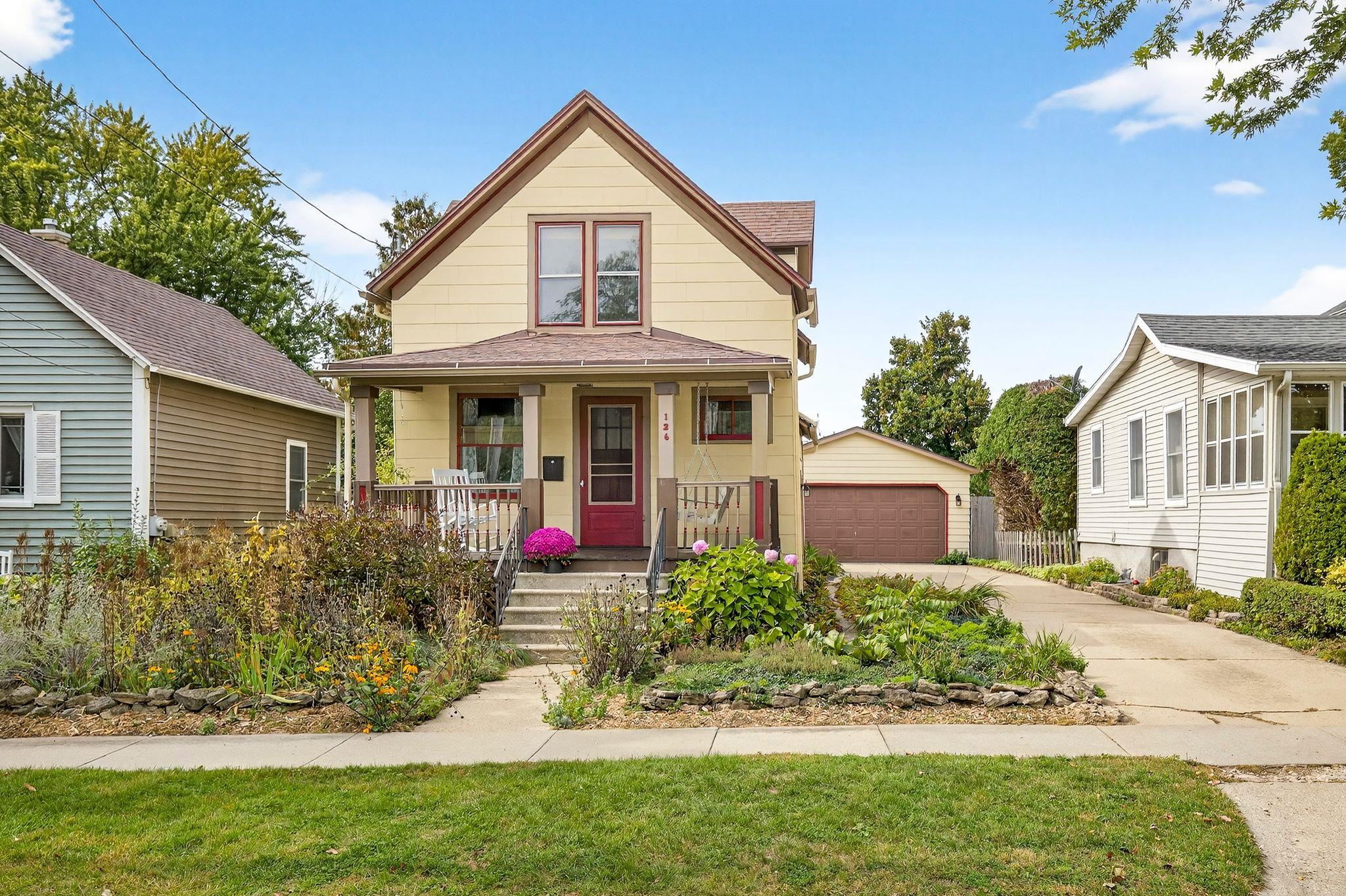 Charming 1.5-Story on Doty Island! Fall in love with this inviting home just steps from Doty Park, Whiting Boat House, and downtown Neenah. A spacious front porch sets the tone, welcoming you into a warm and comfortable layout. The main floor offers a bright family room, dining room, kitchen, and full bath. Upstairs you’ll find two bedrooms plus a walk-in closet for added storage. Step outside to enjoy a large private deck with trellis overlooking the fenced backyard—perfect for entertaining or relaxing. The detached garage features an epoxy floor, keeping the space clean and functional. Peace of mind comes with many updates, including roof shingles, sewer lateral, water main, furnace, A/C, and more. Siding is slate. Don't miss your chance with this one!