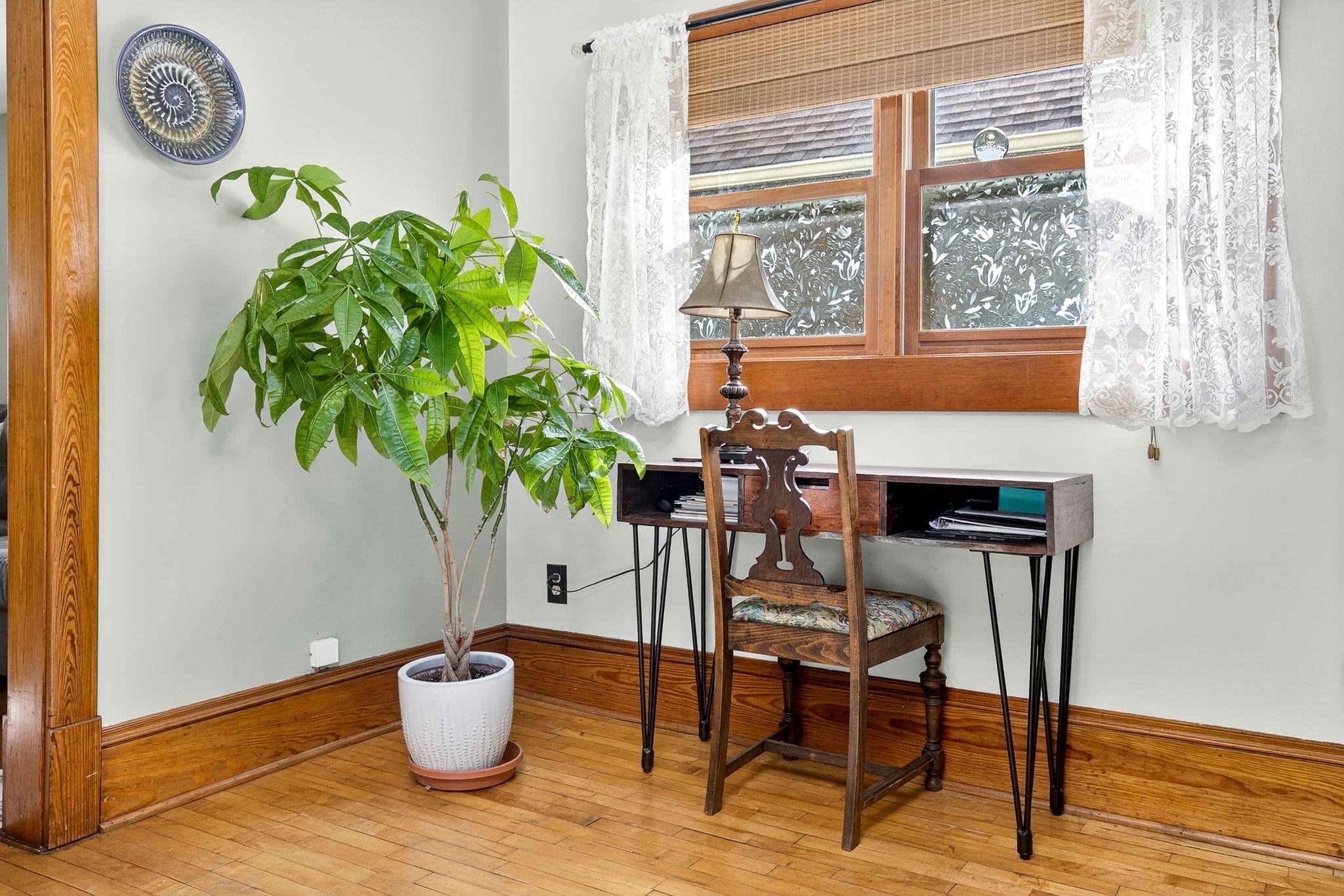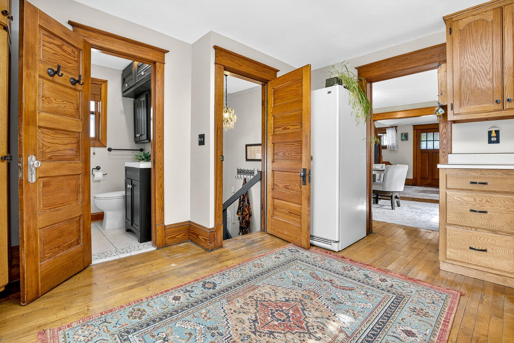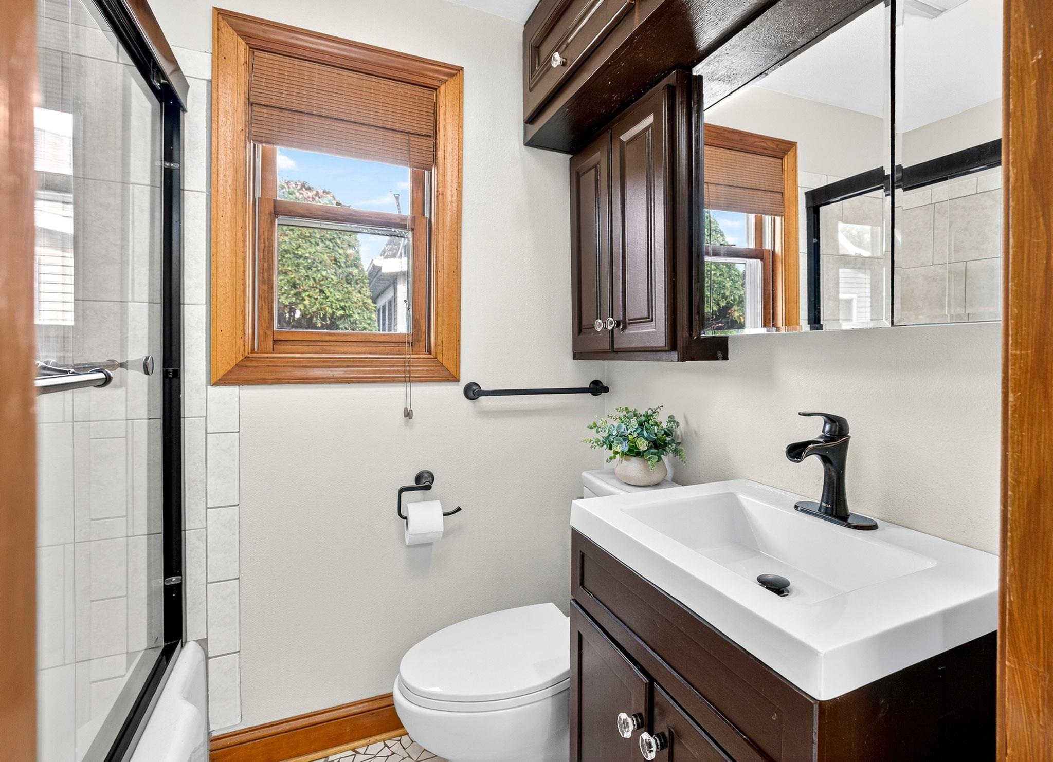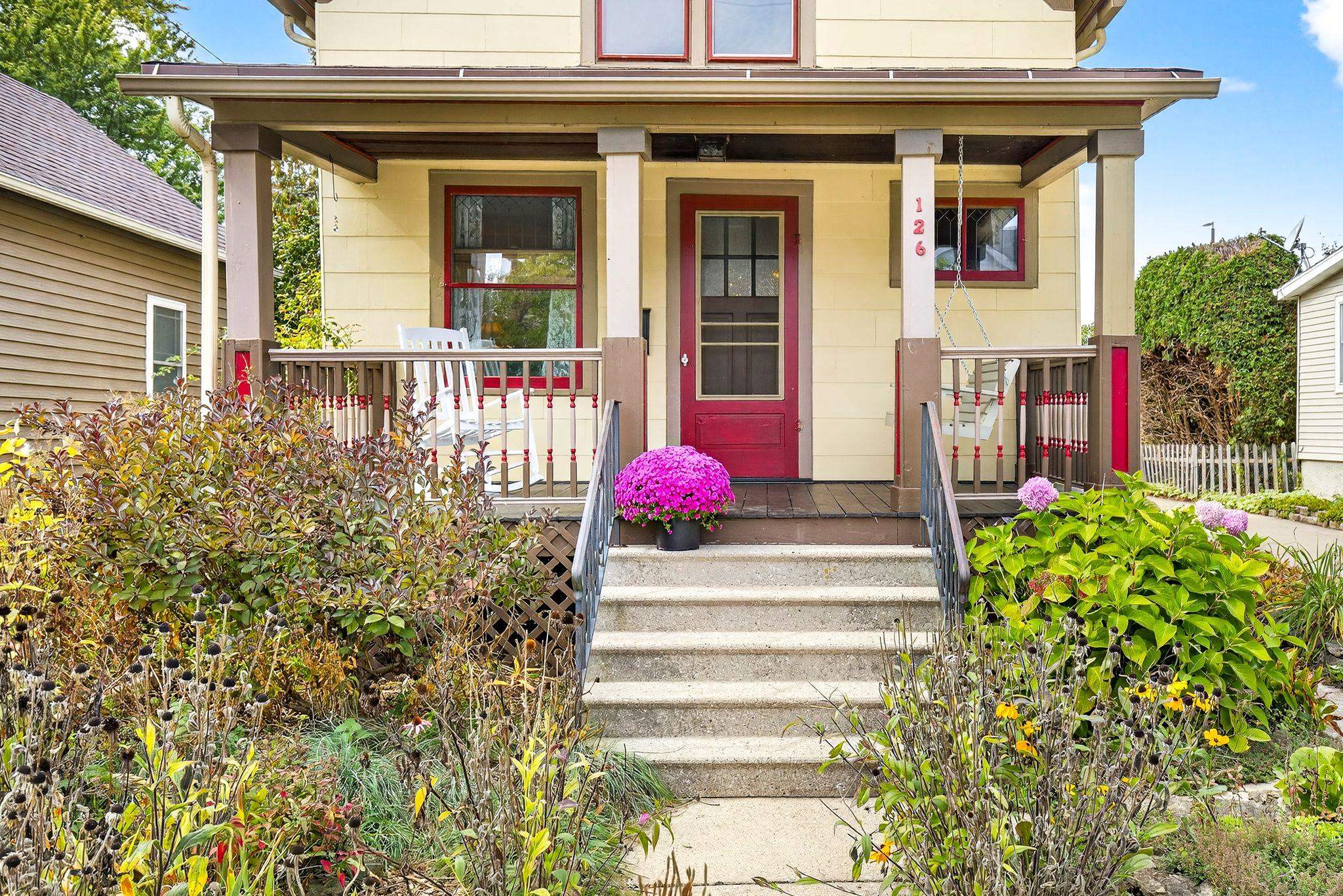 Charming 1.5-Story on Doty Island! Fall in love with this inviting home just steps from Doty Park, Whiting Boat House, and downtown Neenah. A spacious front porch sets the tone, welcoming you into a warm and comfortable layout. The main floor offers a bright family room, dining room, kitchen, and full bath. Upstairs you’ll find two bedrooms plus a walk-in closet for added storage. Step outside to enjoy a large private deck with trellis overlooking the fenced backyard—perfect for entertaining or relaxing. The detached garage features an epoxy floor, keeping the space clean and functional. Peace of mind comes with many updates, including roof shingles, sewer lateral, water main, furnace, A/C, and more. Siding is slate. Don't miss your chance with this one!