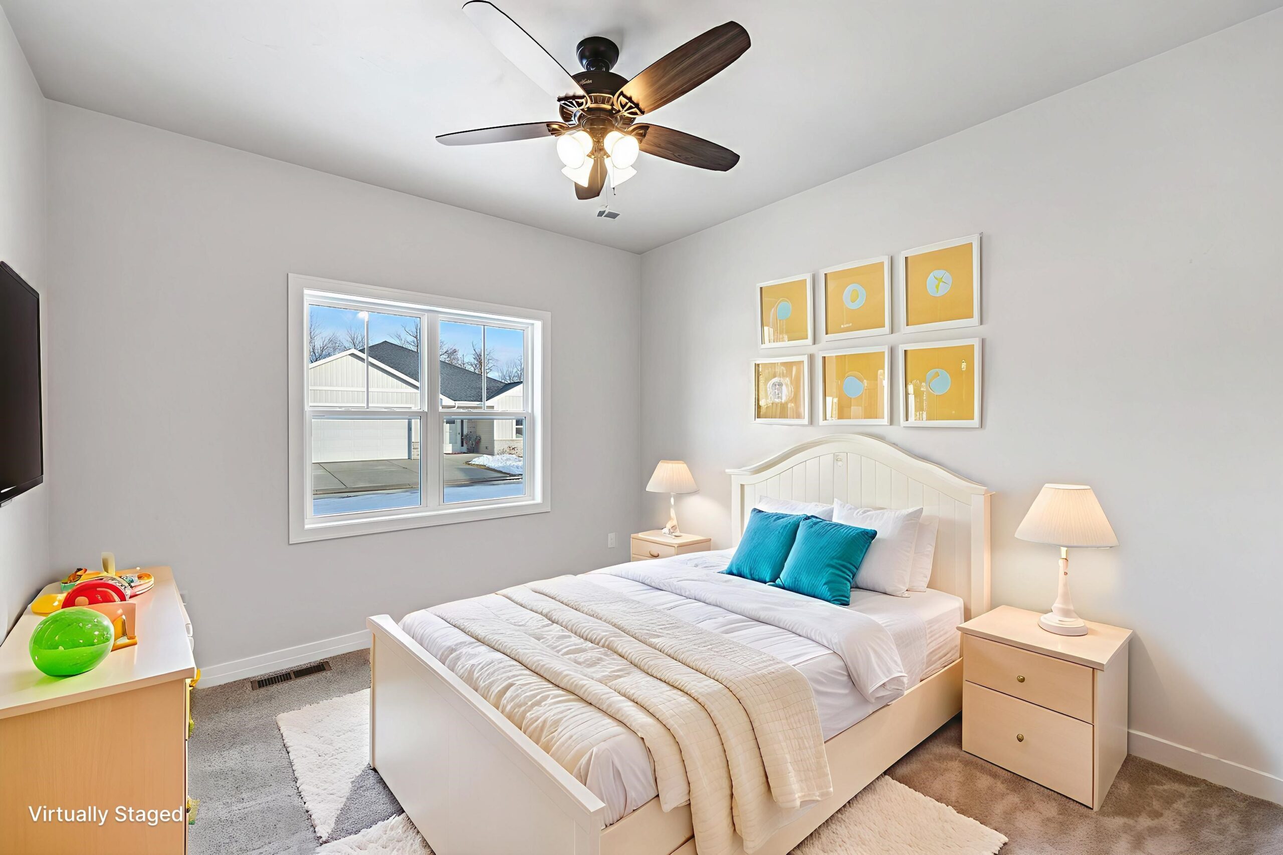 All kitchen appliances: Refrigerator, Dishwasher, Mircrowave, Stove-gas or electric. Lawn seeding, 5 shrubs of front landscaping. cement back patio