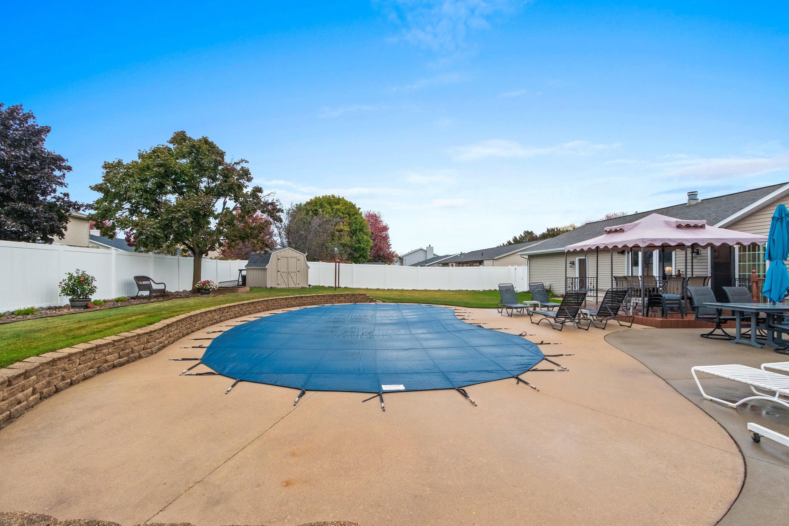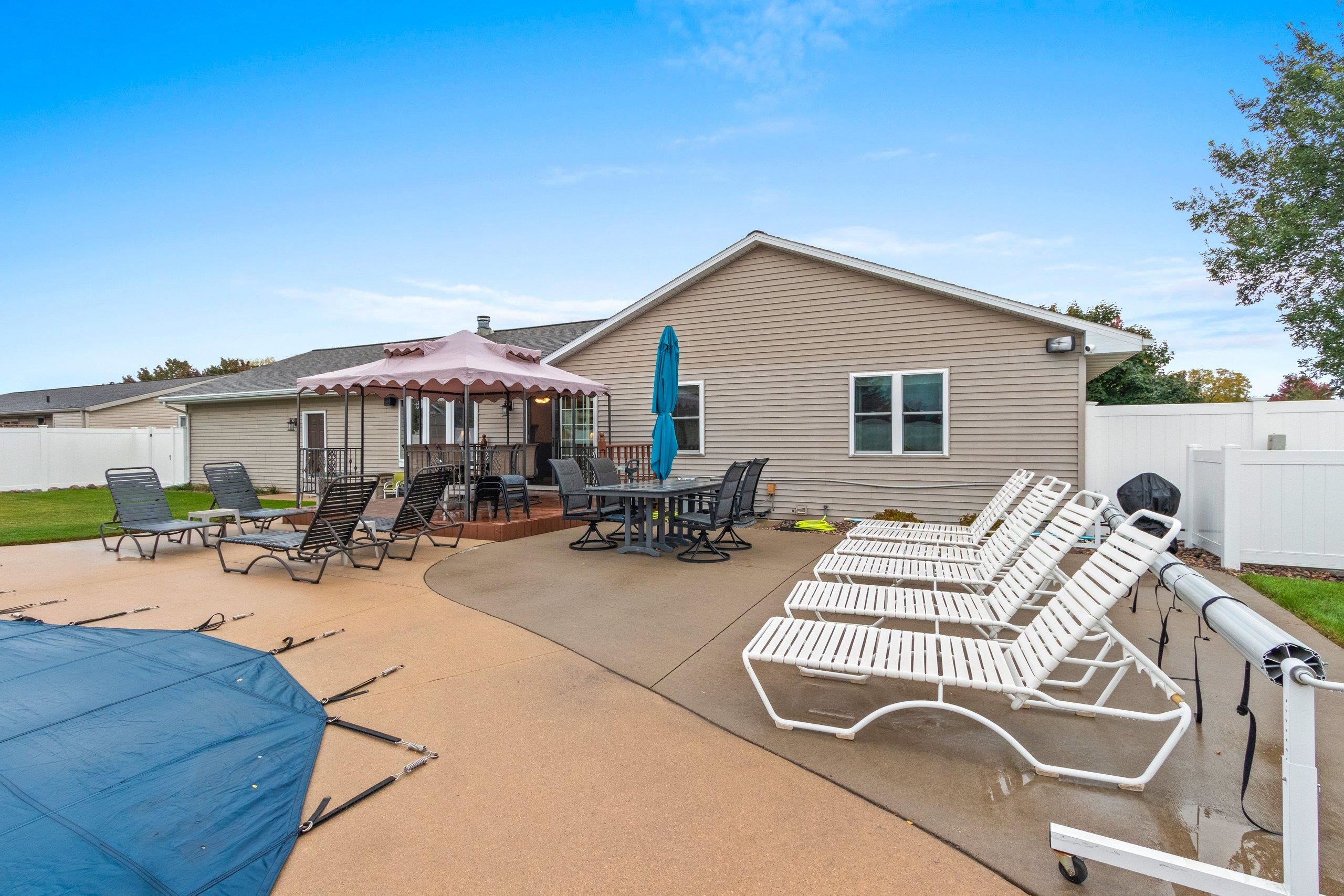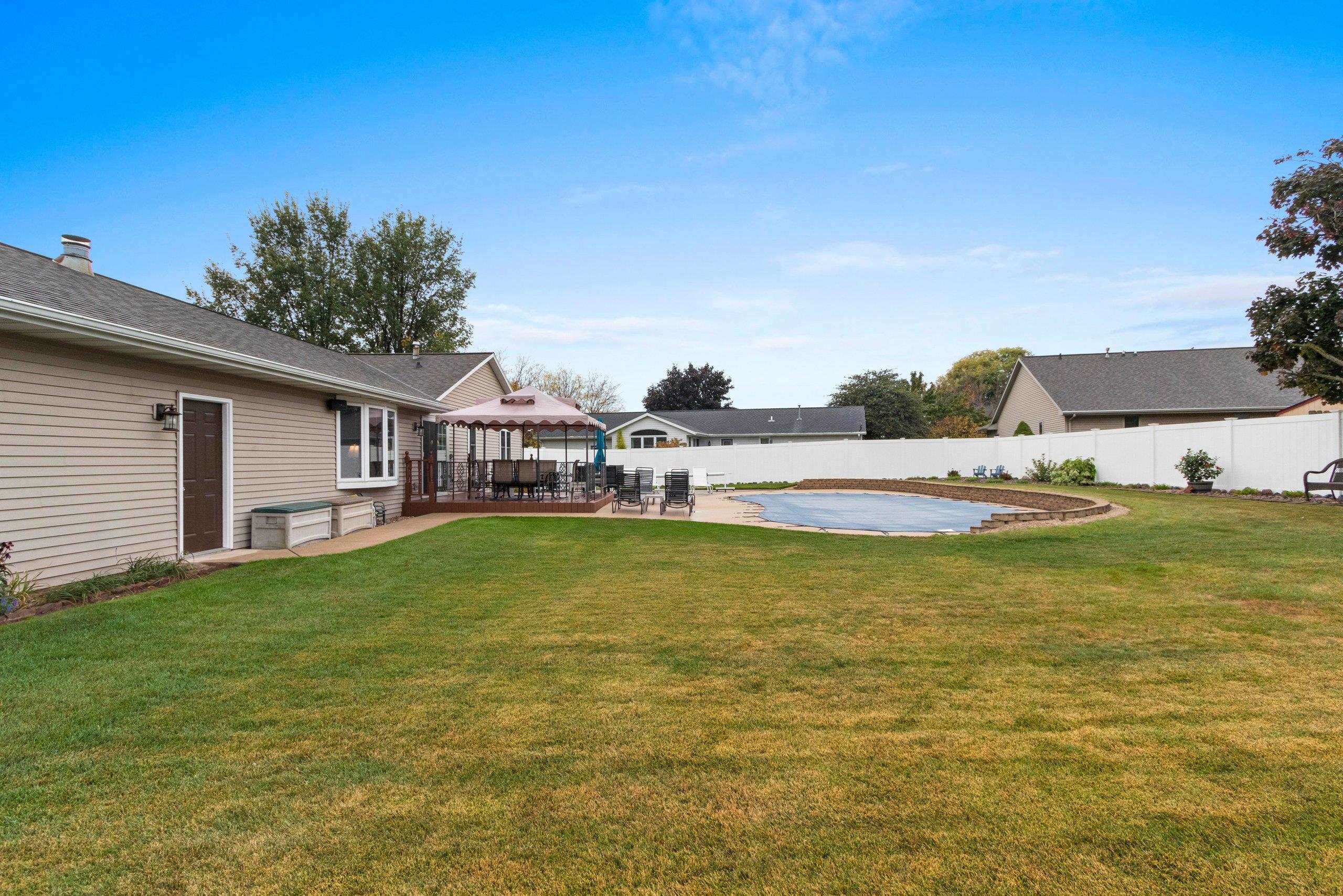 Beautifully maintained one-owner custom-built ranch in the heart of De Pere! This 3-bedroom, 3-bath home features a thoughtful floor plan with the kitchen at the front and the living room at the back overlooking the private yard. Enjoy a cozy dining area, finished lower level with full bath, and garage with epoxy floors plus stairs to attic storage. Step outside to relax on the deck under the pergola or enjoy the in-ground pool surrounded by gorgeous landscaping in a fully fenced yard. Conveniently located minutes from schools, parks, and shopping!